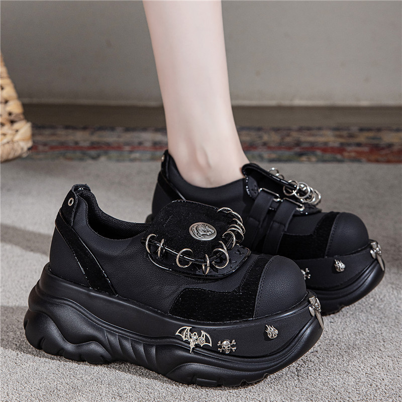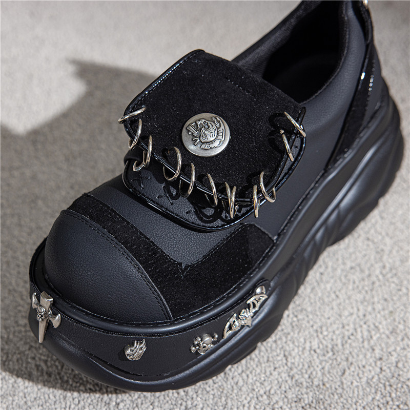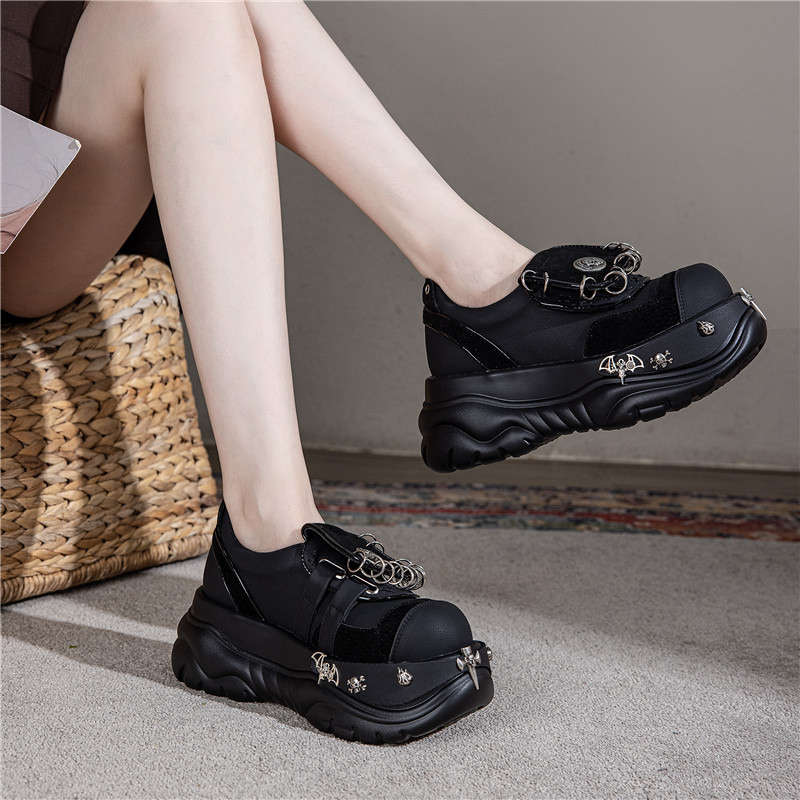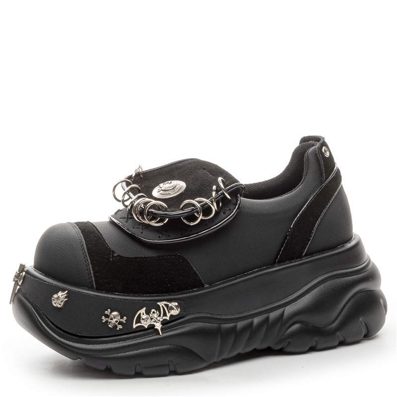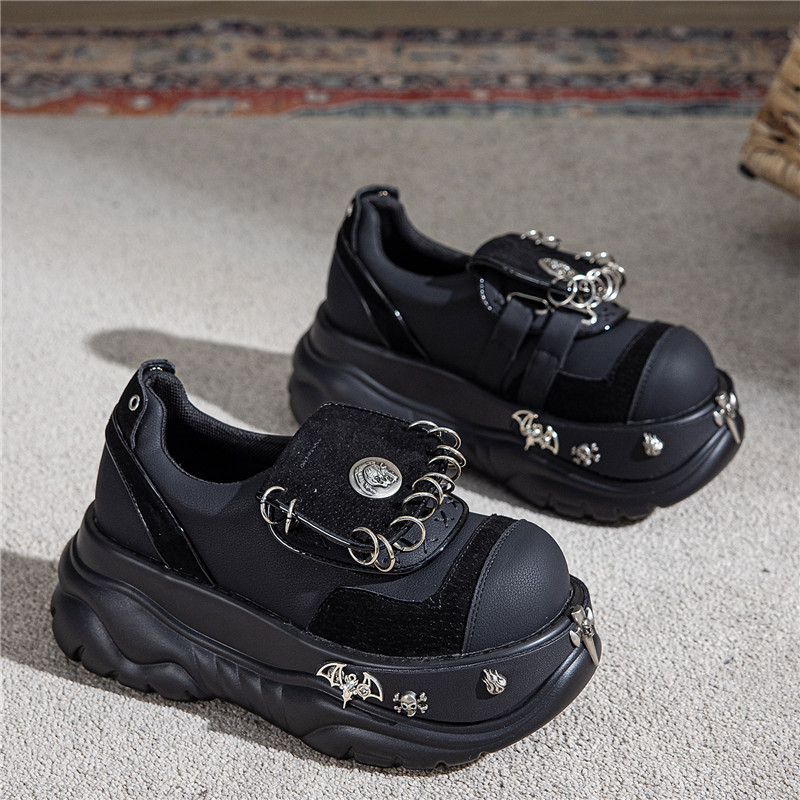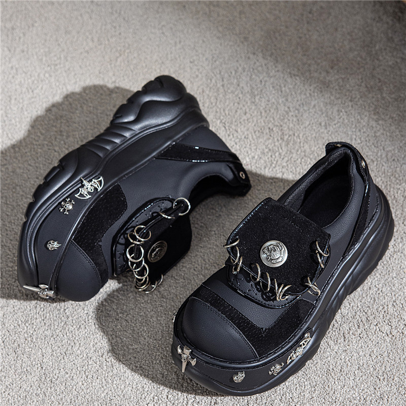 여성용 두꺼운 밑창 플랫폼 슈즈, 펑크 핫걸 메탈 개성 다크 싱글 슈즈, 여성용 틈새 로퍼, 여성용 개성 여성용 슈즈