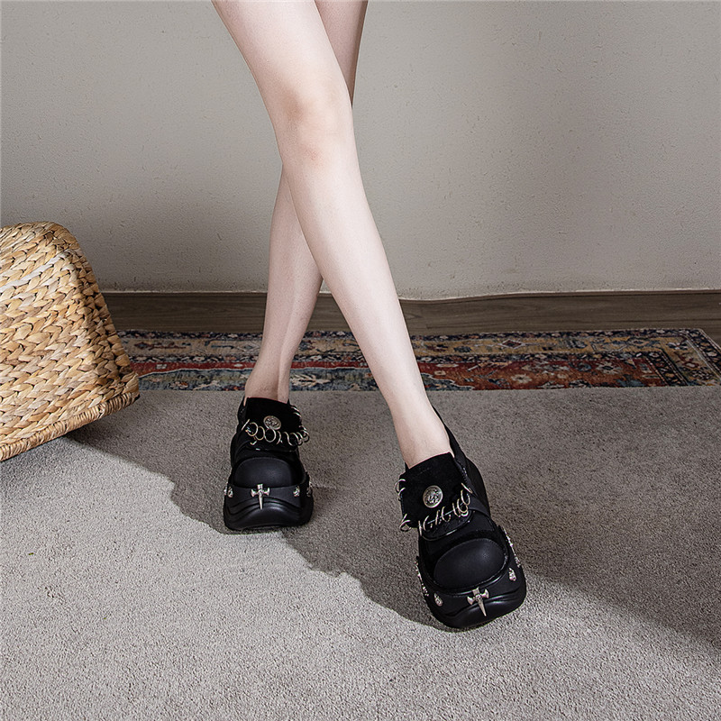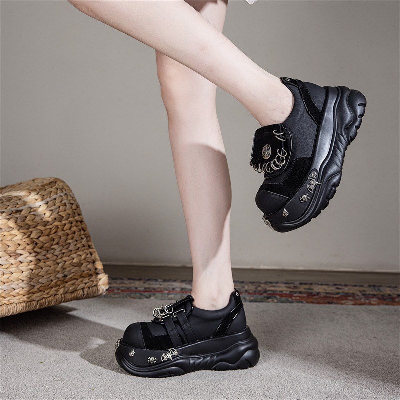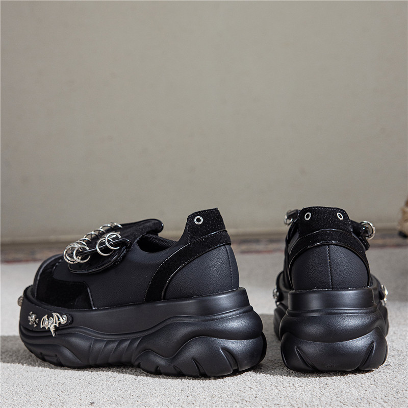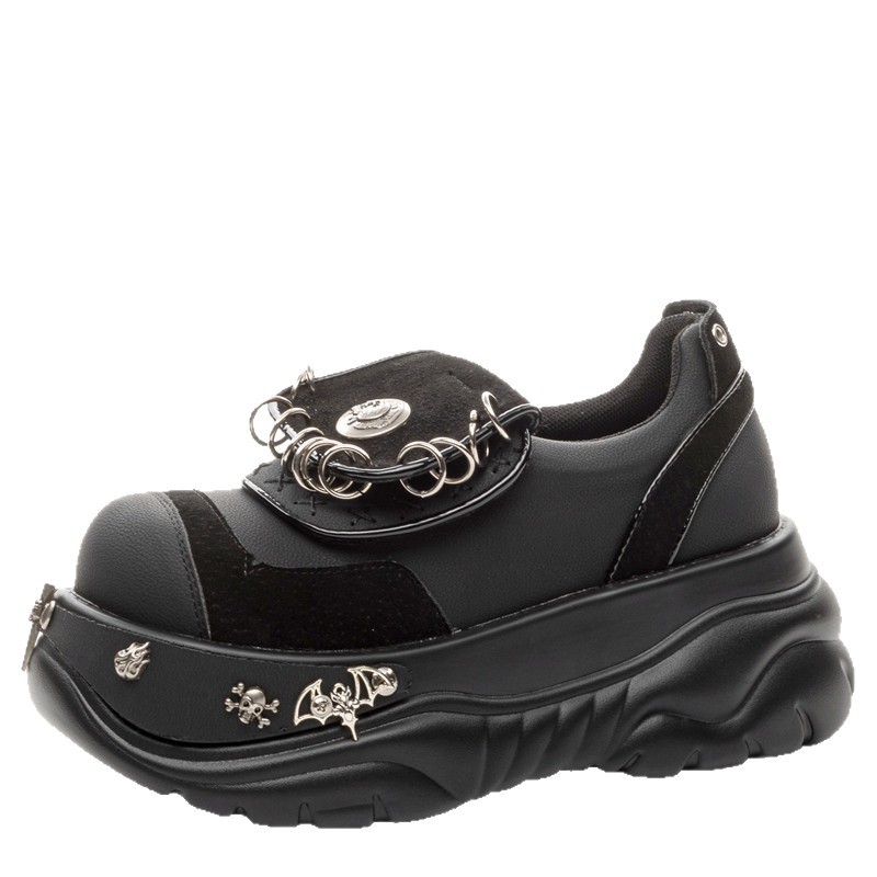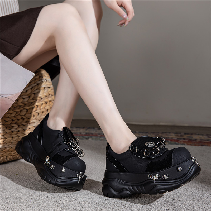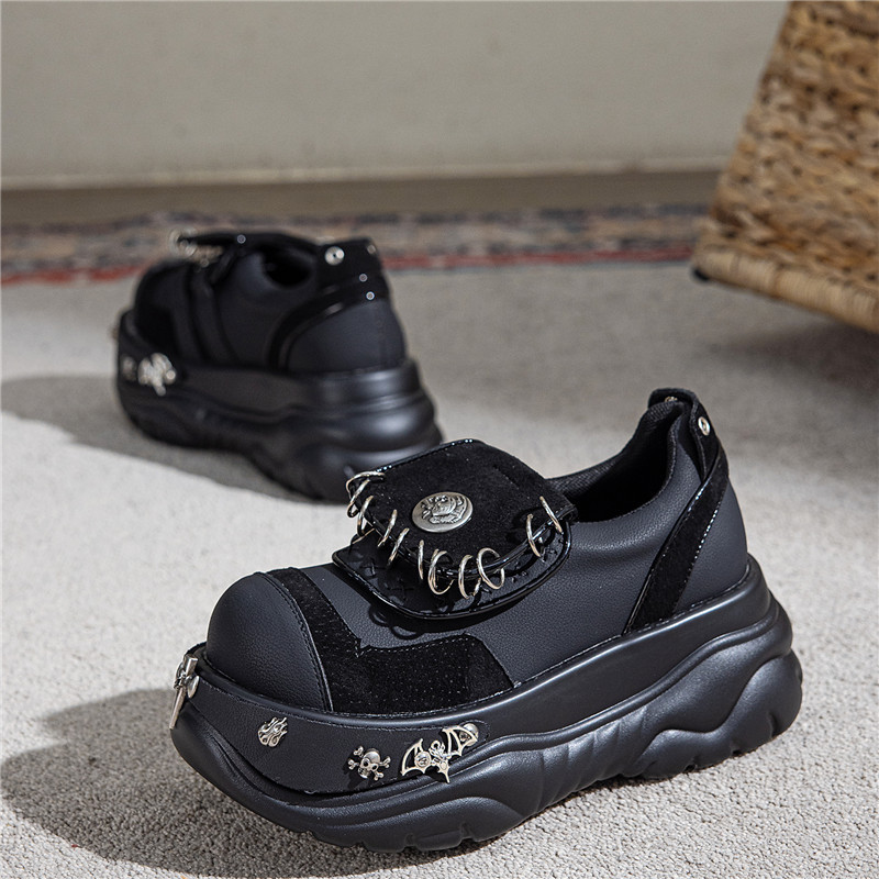 여성용 두꺼운 밑창 플랫폼 슈즈, 펑크 핫걸 메탈 개성 다크 싱글 슈즈, 여성용 틈새 로퍼, 여성용 개성 여성용 슈즈