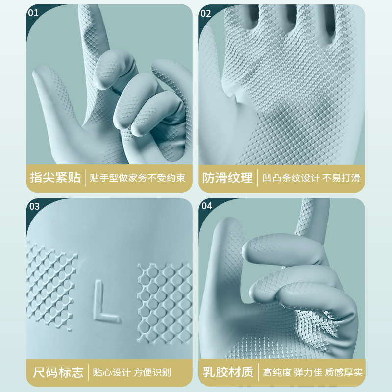 가사 주방 식기 세척 고무 장갑 내구성 소근육 라텍스 두꺼운 방수 장갑 작업 여성 도매