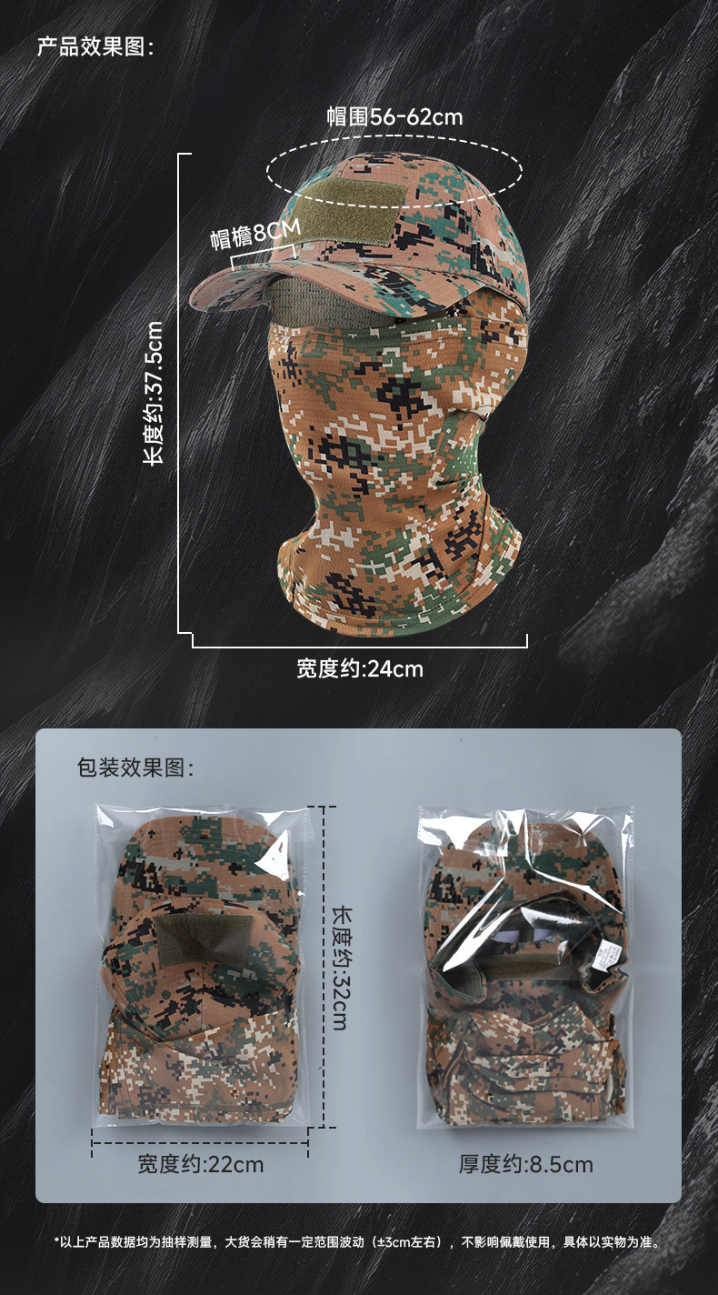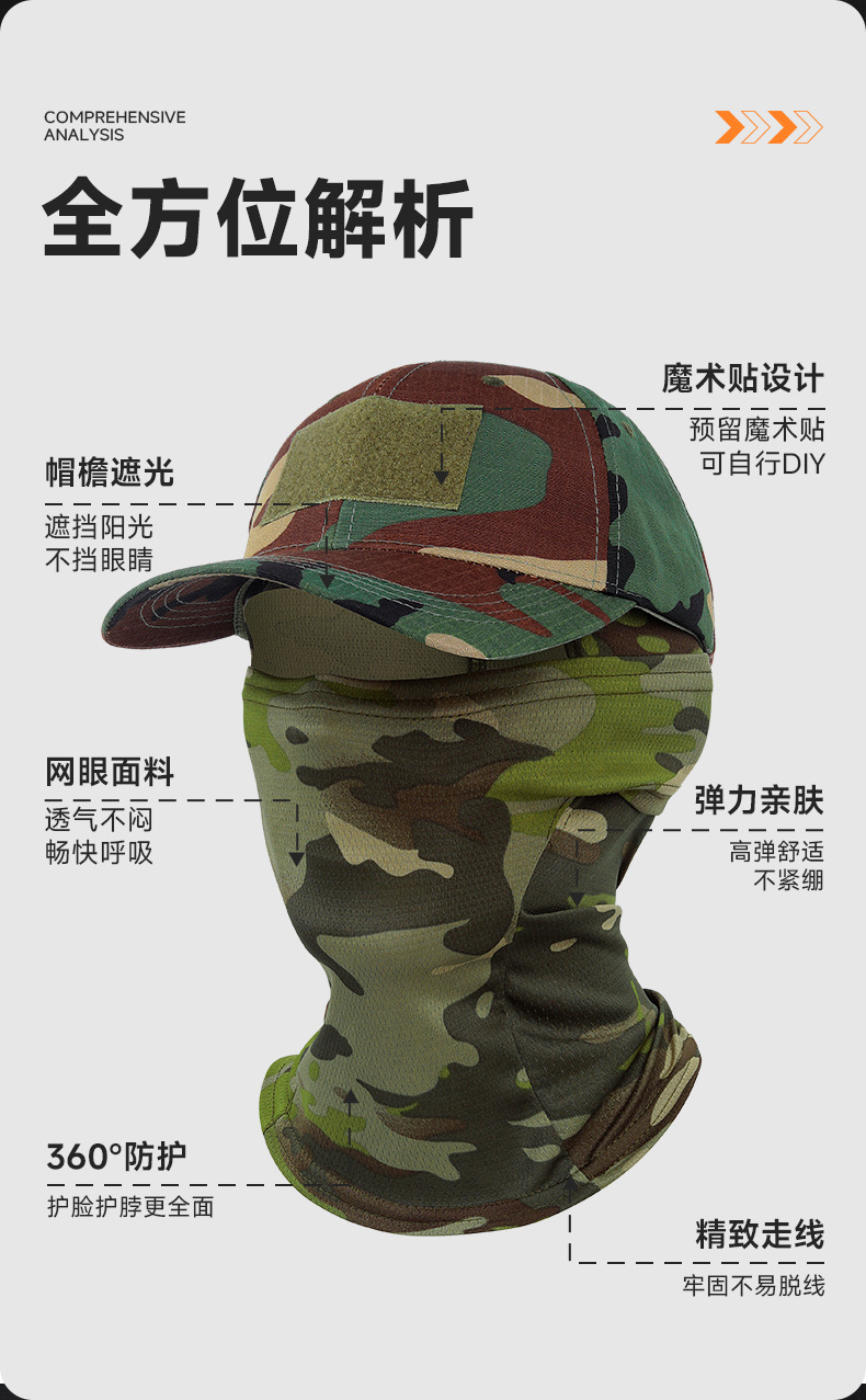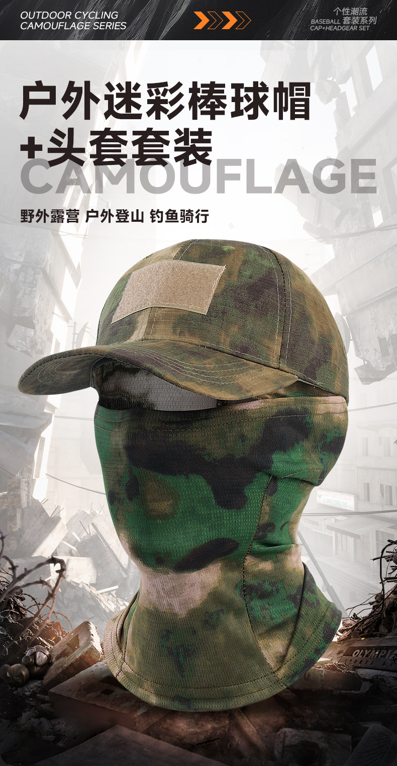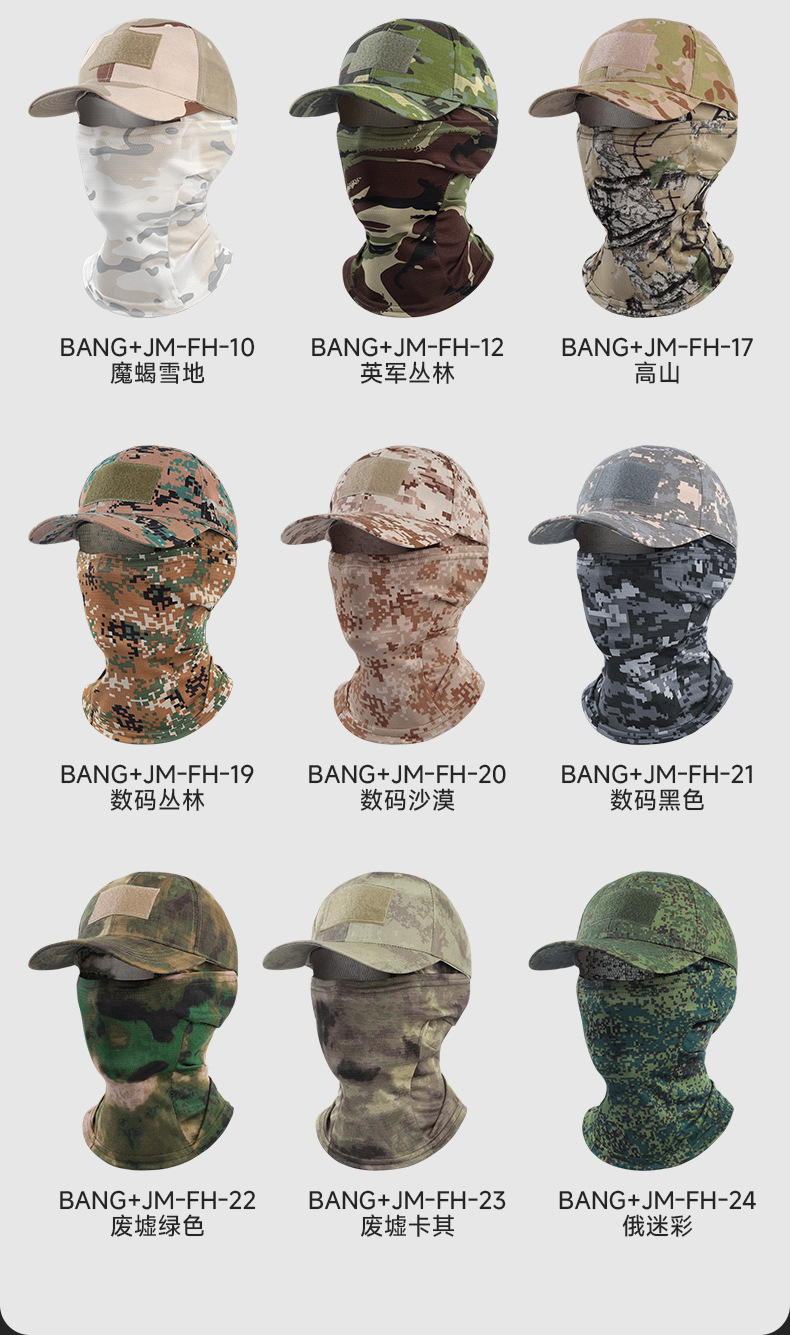 국경 간 전술 위장 야구 모자 야외 등산 낚시 양산 통기성 얼굴 보호 오토바이 타기 마스크 세트