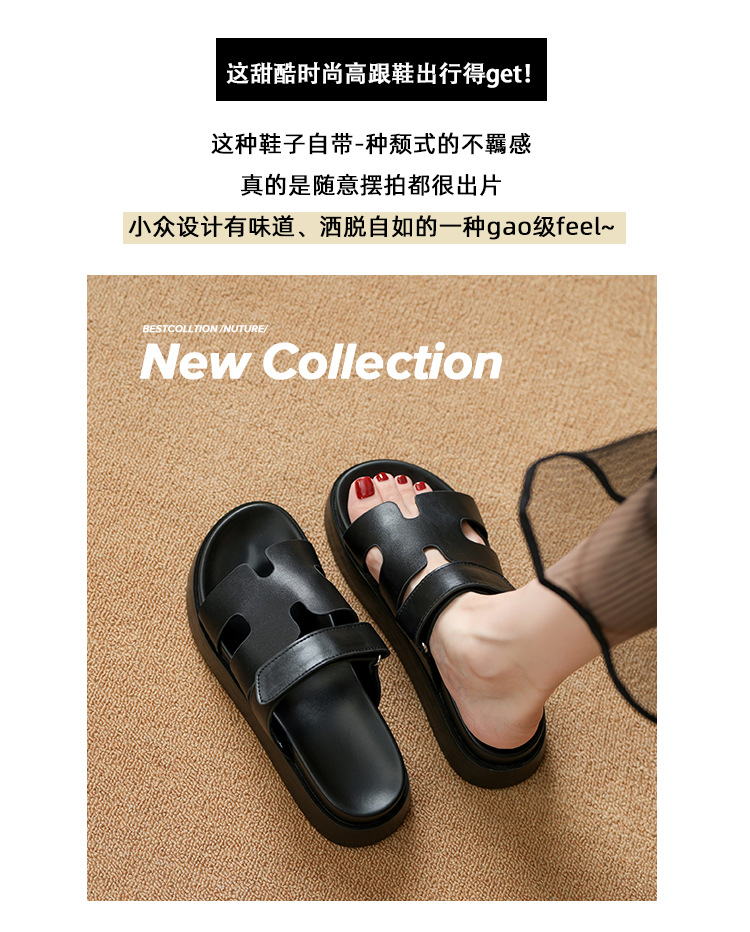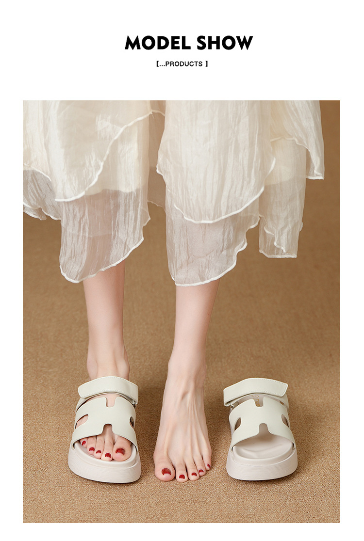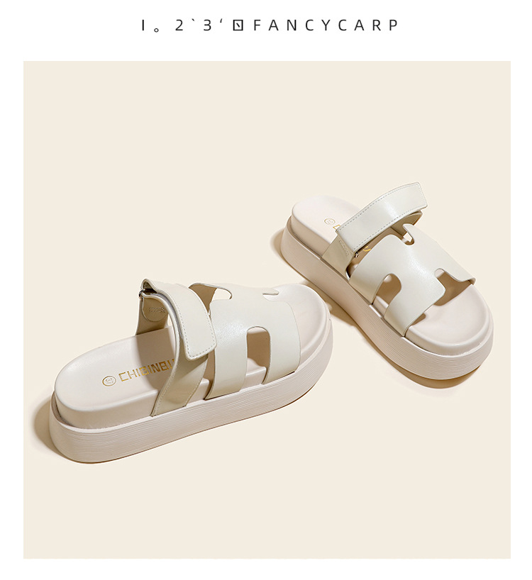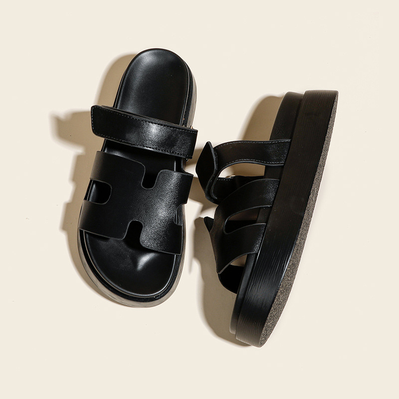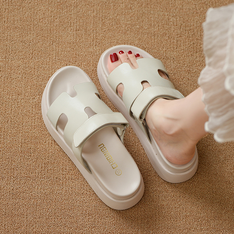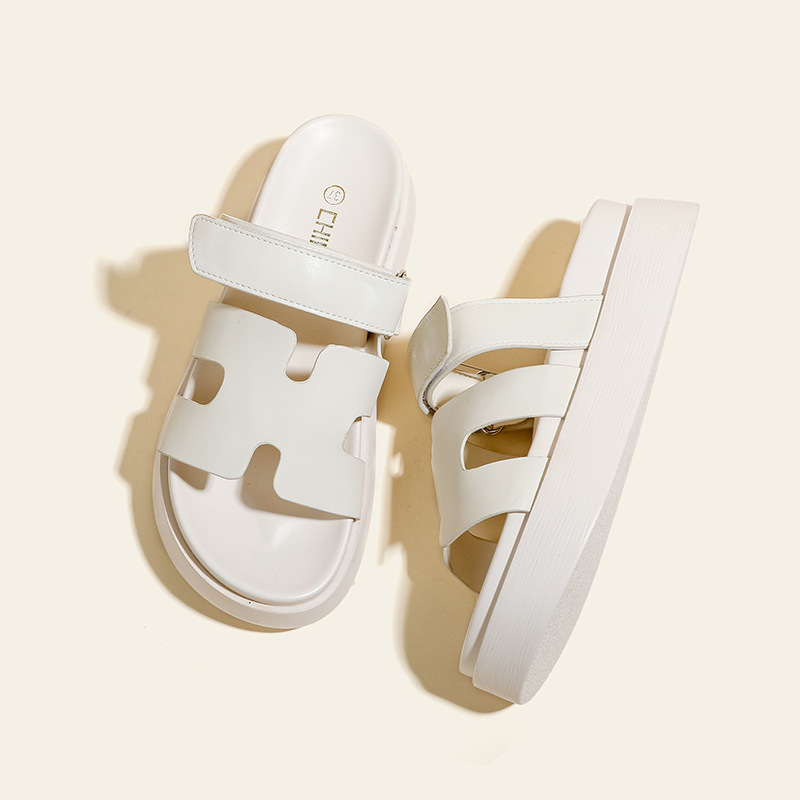 플립 플롭 여성용 새 여름 두꺼운 밑창 외부 착용 미끄럼 방지 벨크로 비치 H 슬리퍼 샌들 소형