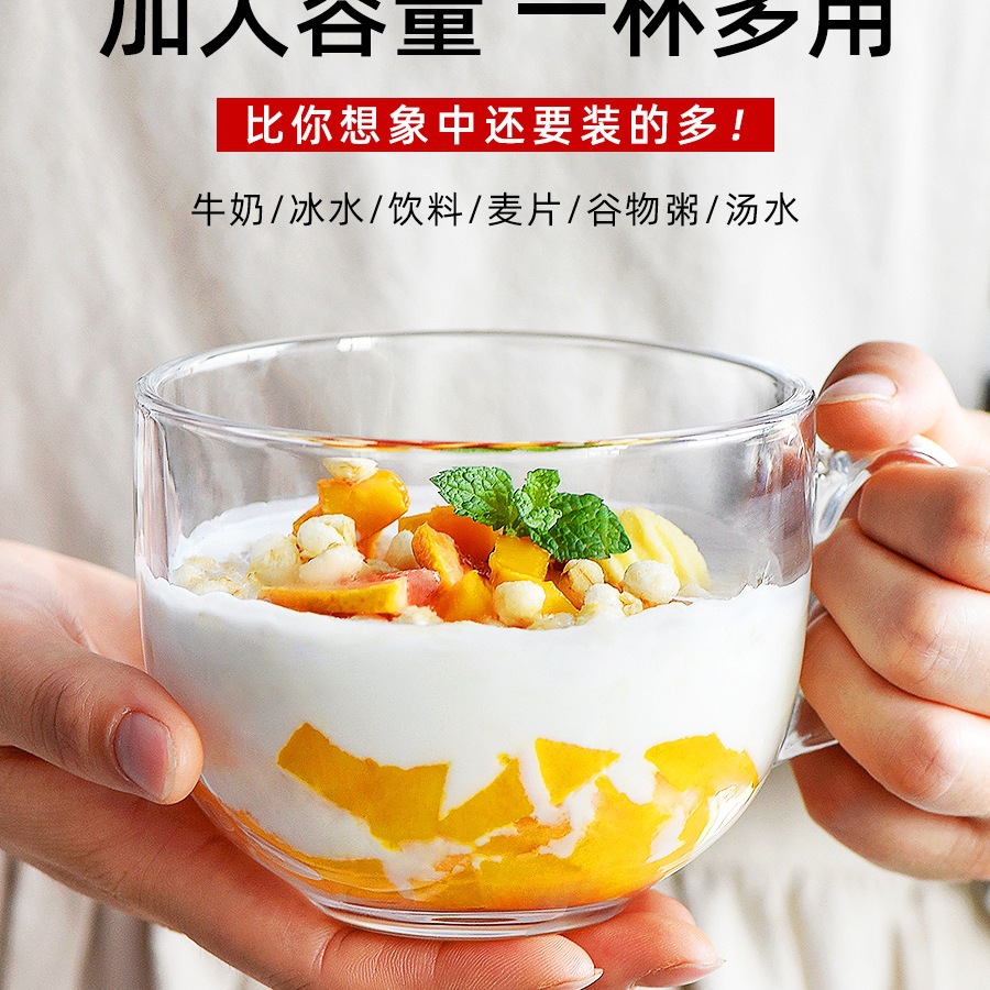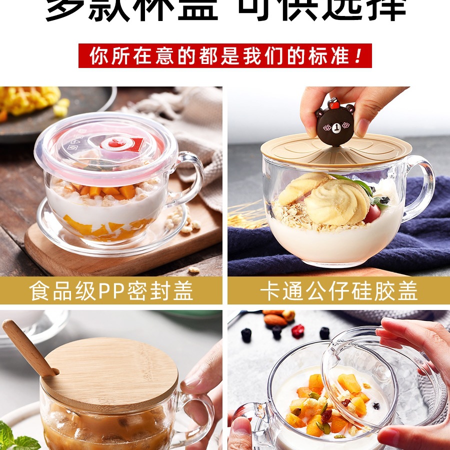 손잡이가 있는 유리 아침 식사 컵 가정용 여성 요구르트 오트밀 우유 오트밀 그릇 커피 컵 뚜껑 스푼