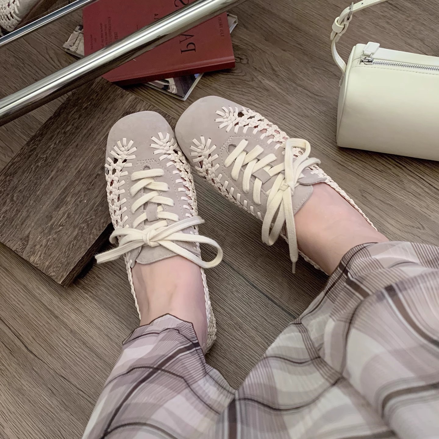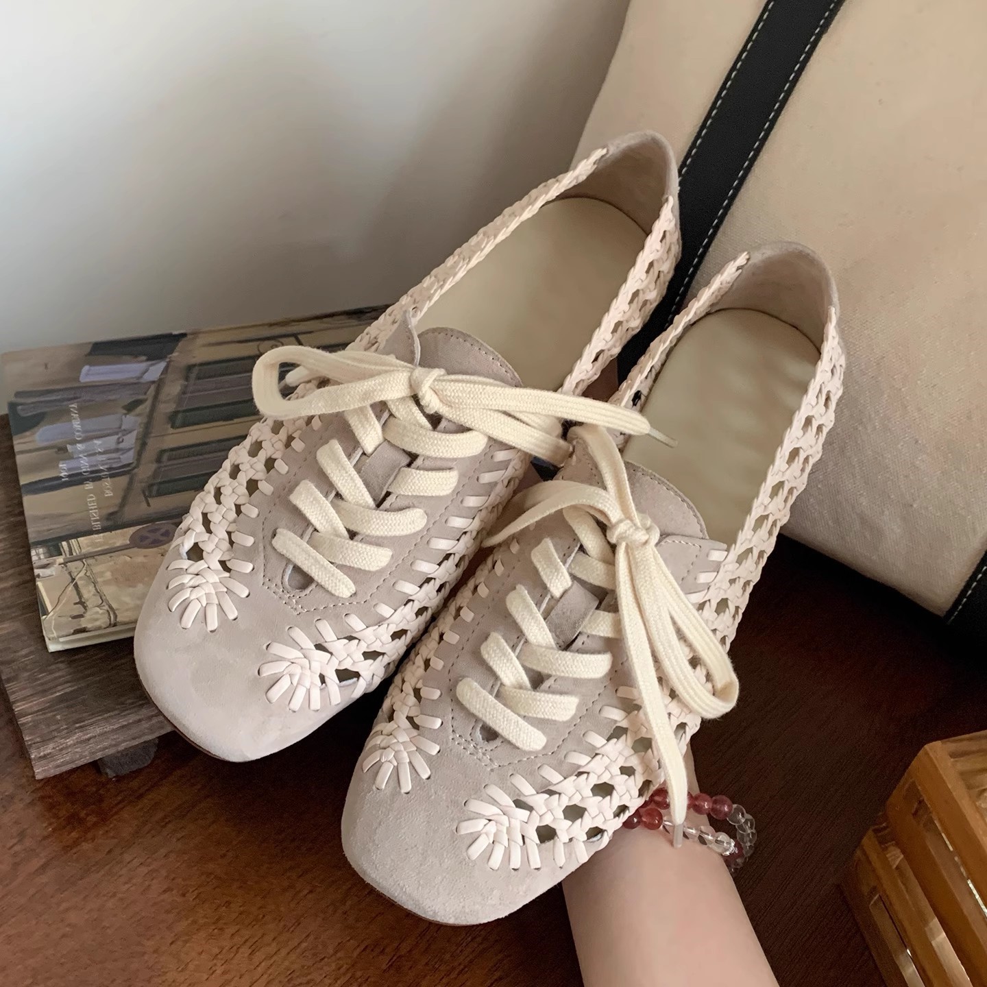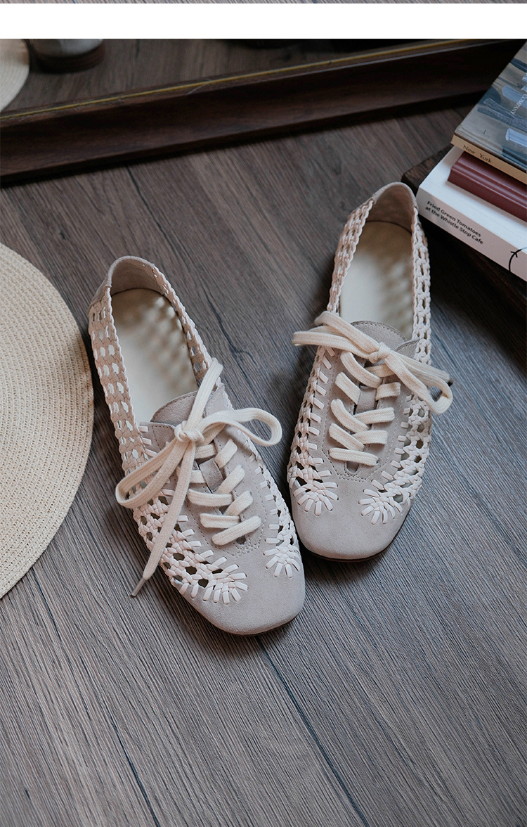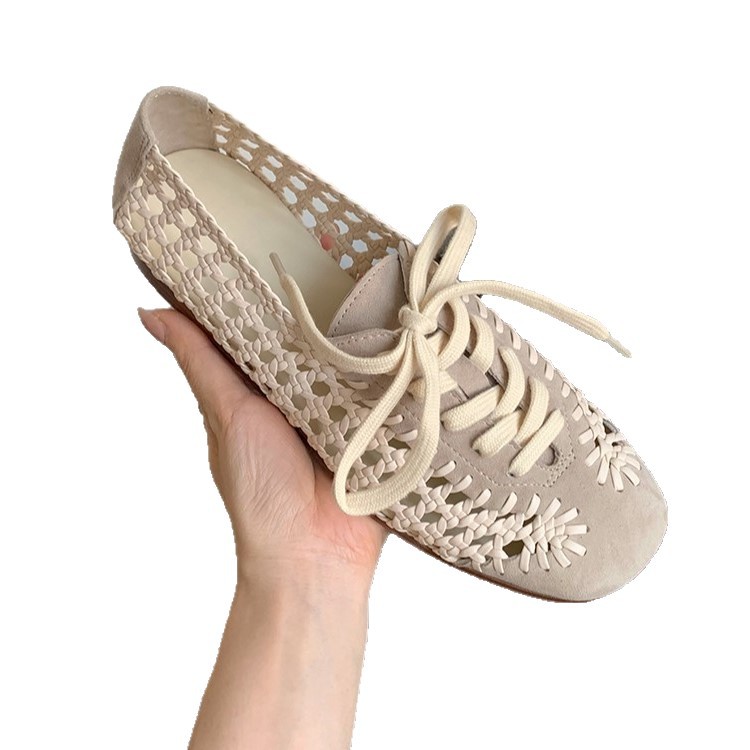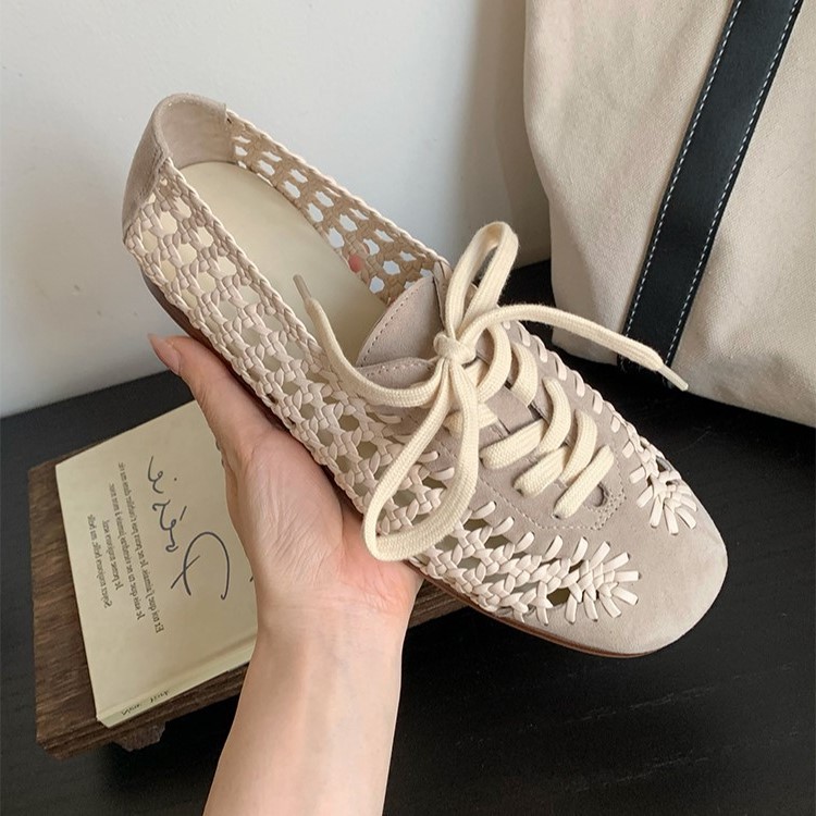 여성을위한 틈새 디자인 짠 중공 샌들 메쉬 신발 여름 새로운 프랑스 복고풍 플랫 발레 신발