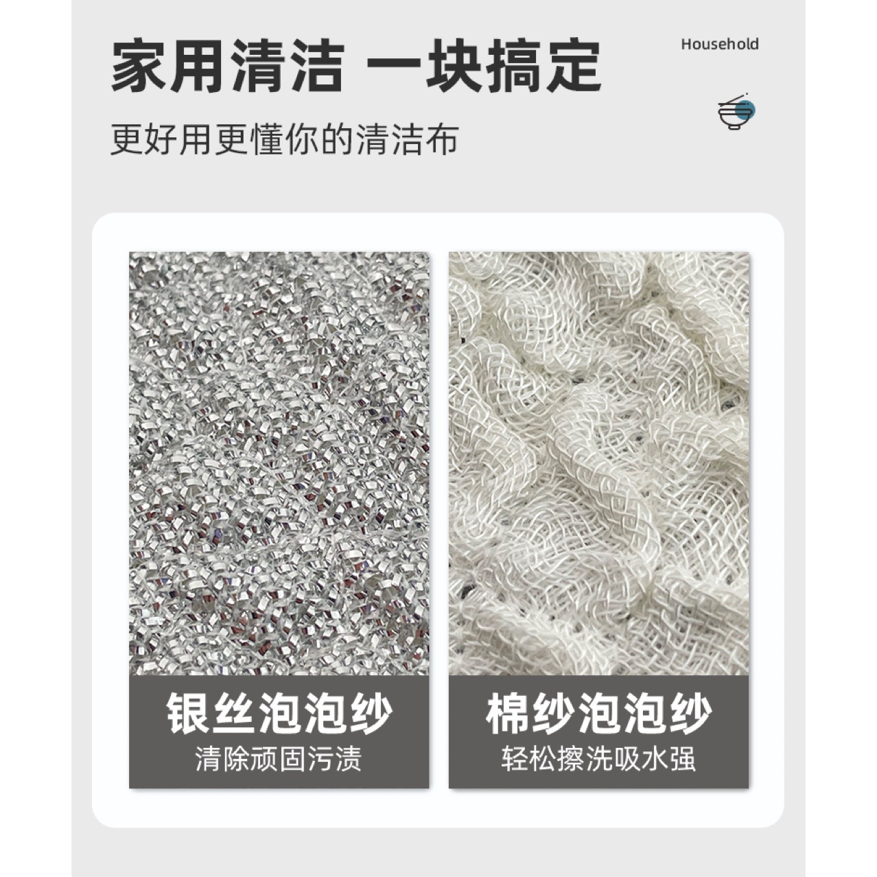 설거지용 천, 두 겹의 두꺼운 붙지 않는 기름 설거지용 수건, 수세미, 흡수성 걸레, 은실 면 거즈, 설거지용 브러시 및 냄비 세척 도구