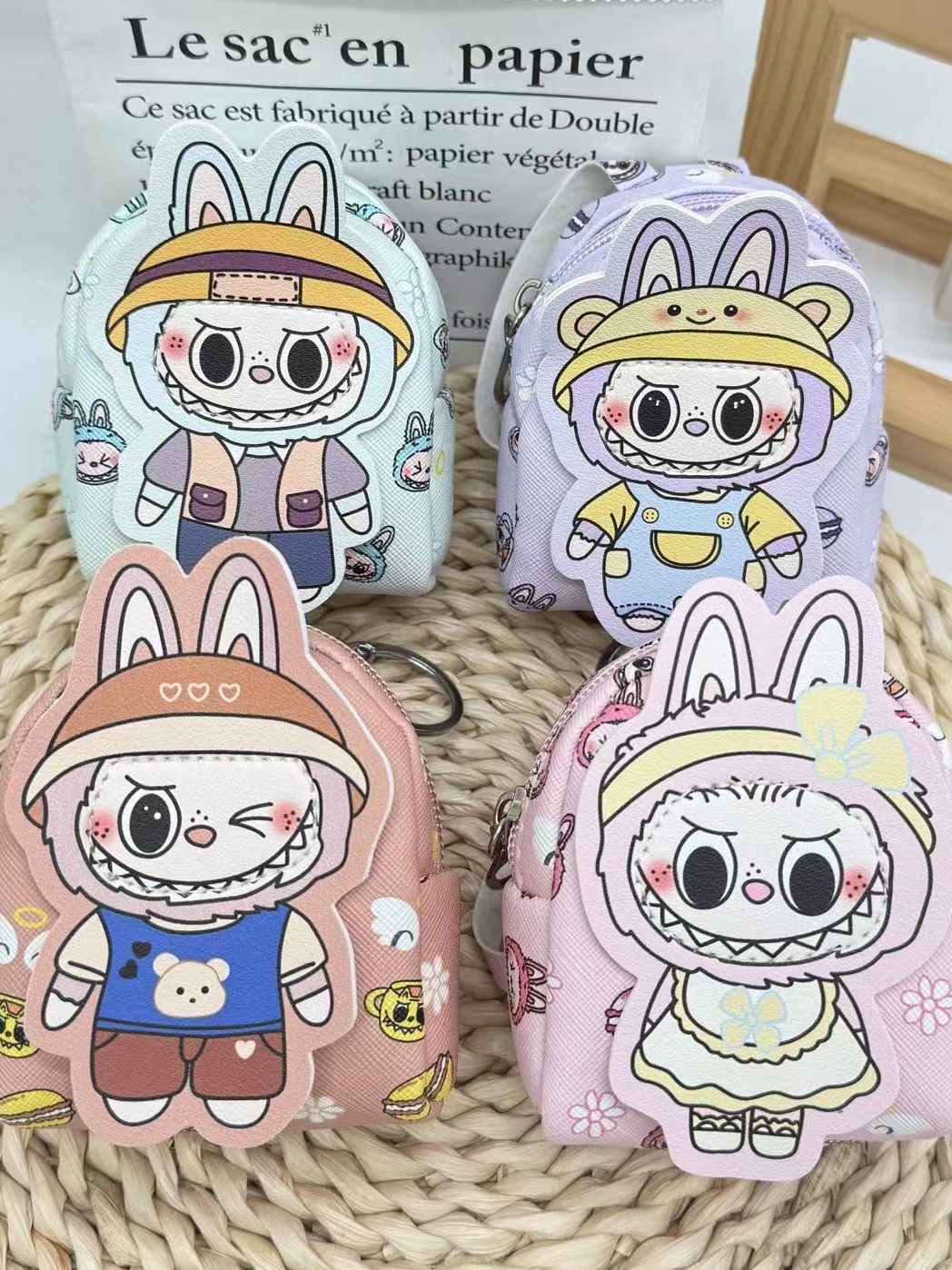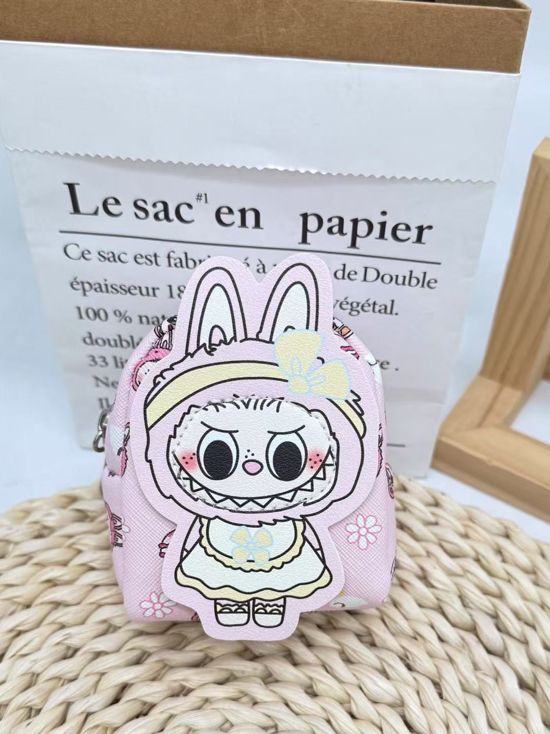 라부부 귀여운 만화 동전 지갑 미니 가죽 가방 열쇠고리 수납 가방 펜던트 예쁜 미니 숄더백