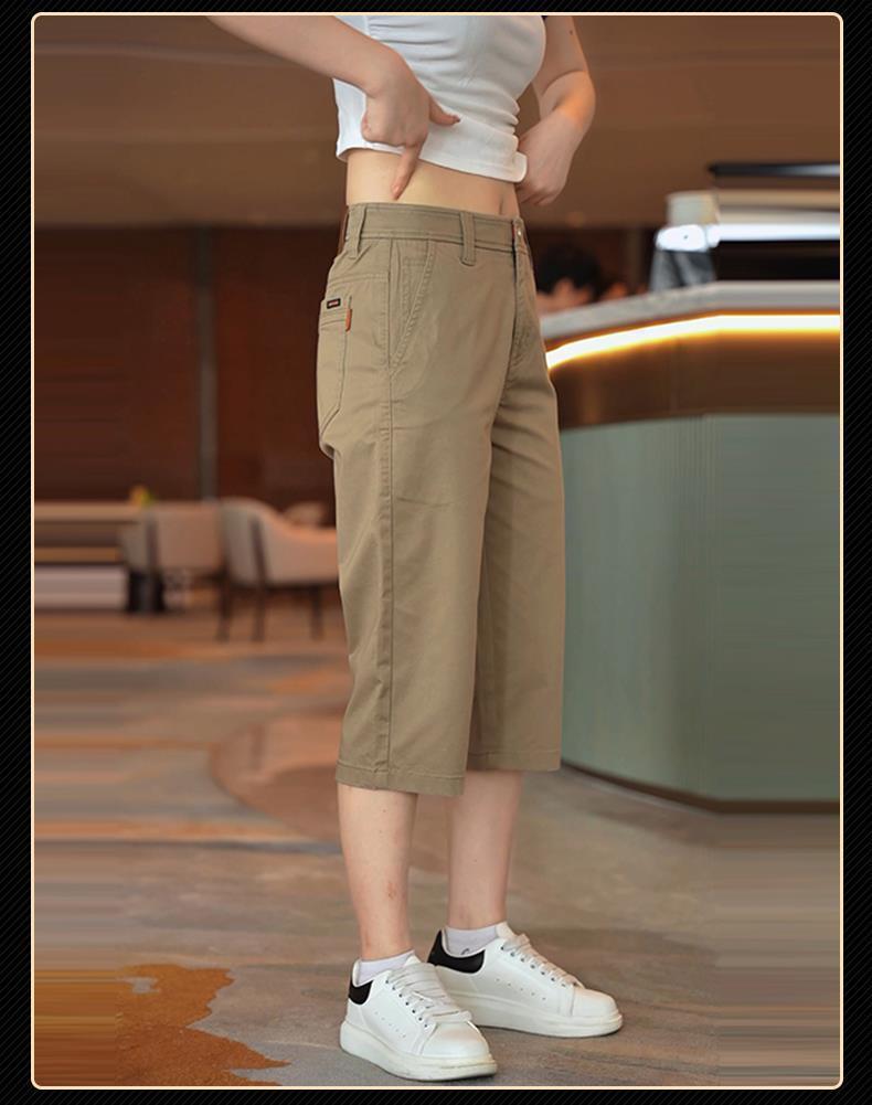 남성용 7부 반바지 여름 얇은 2025 신상 슬림 스트레이트 카키 캐주얼 7부 중간 바지 퓨어 코튼