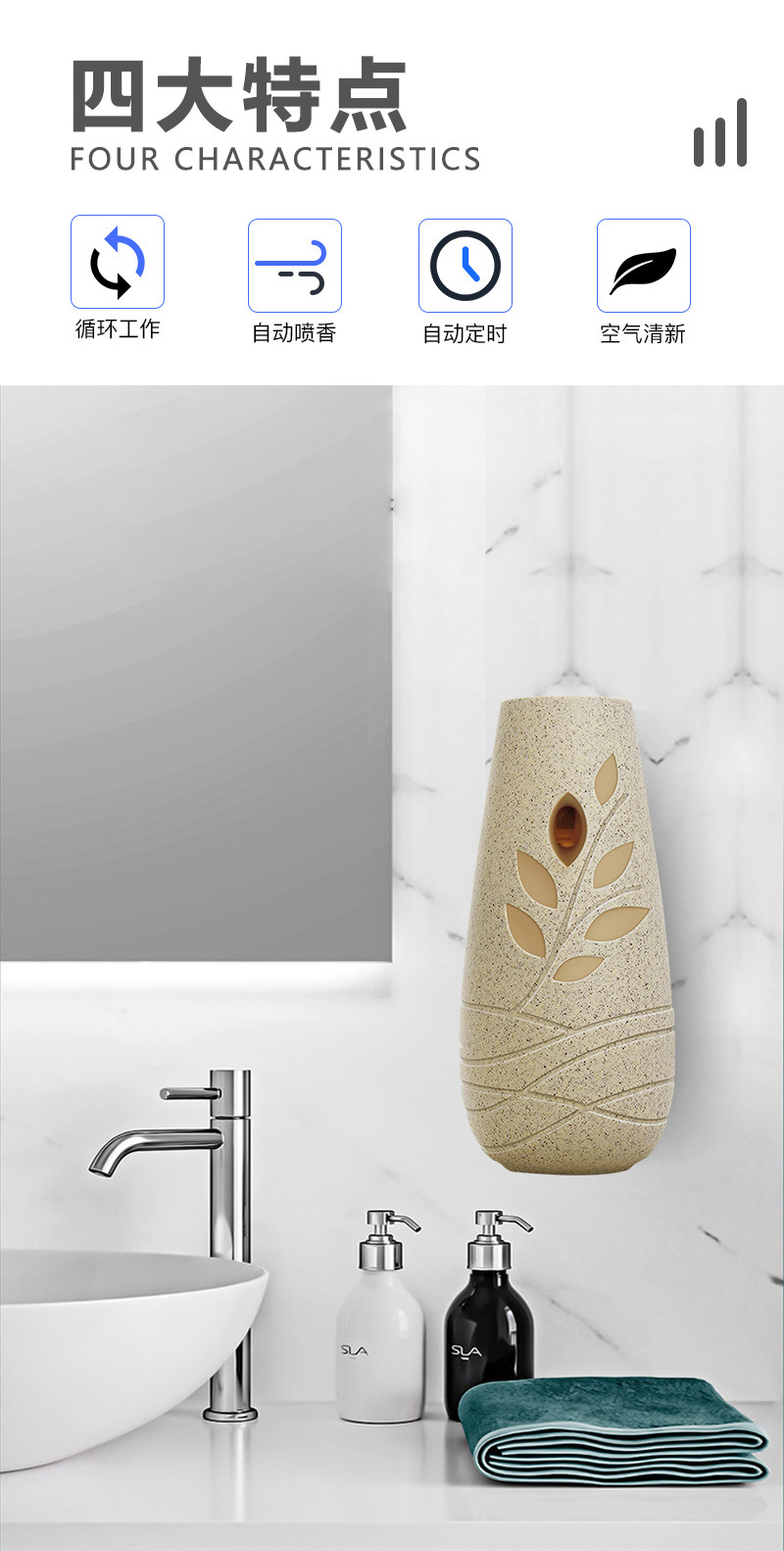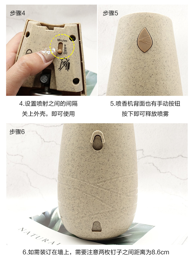 재고 있음 도매 새로운 환경 친화적인 잎 향기 기계 자동 타이밍 아로마 테라피 기계 디퓨저 배터리 수명 조절 가능
