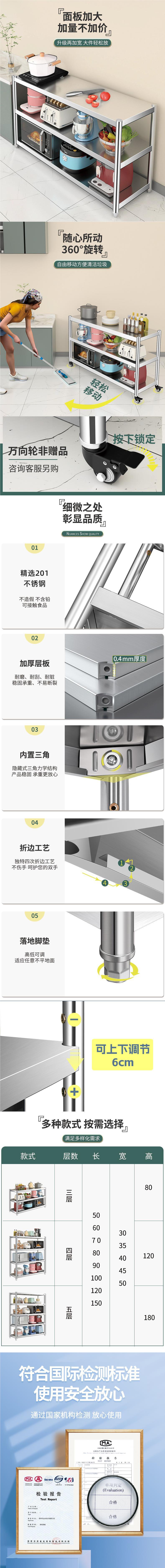 주방 보관 랙 스테인레스 스틸 선반 다층 바닥 다기능 스토리지 작업대 테이블 홈 스토리지 선반