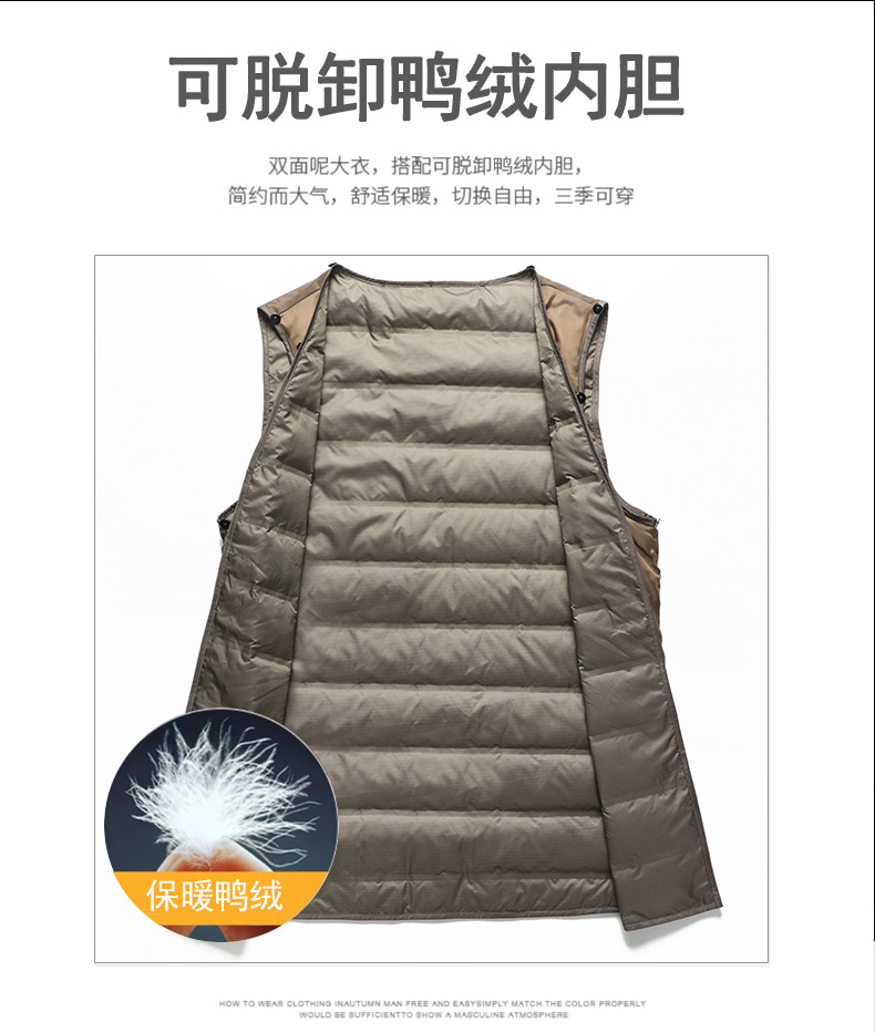 가을 겨울 신상 양면 코트 울 니코스 다운 라이너 울 코트 남성 중간 길이 코트 드롭 배송