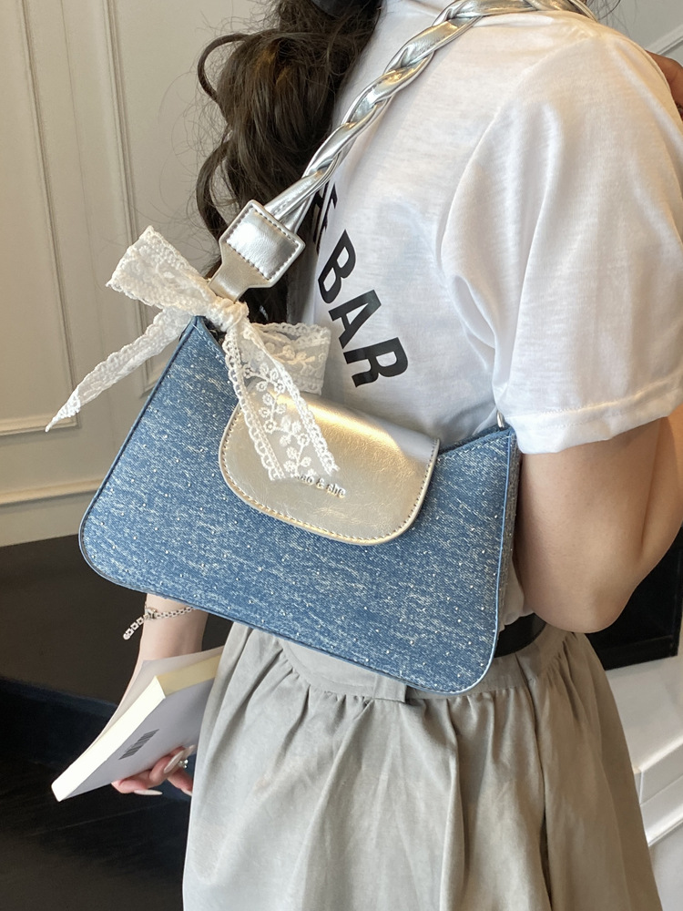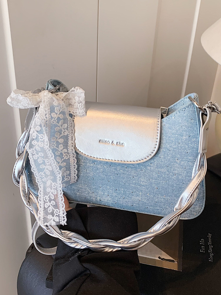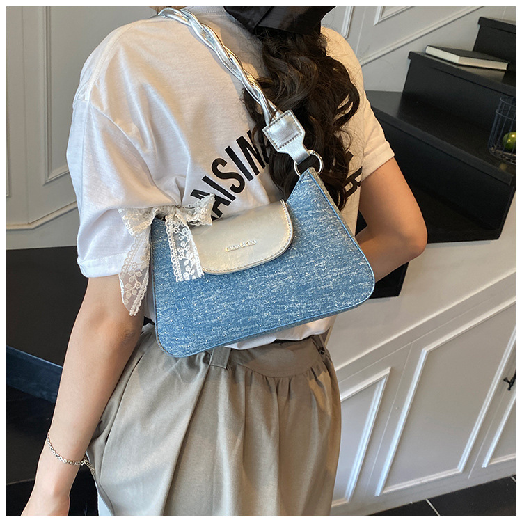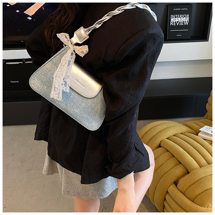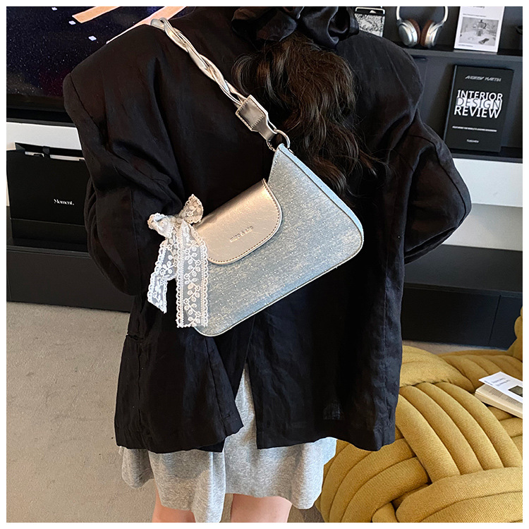 크로스보더 여성용 가방 2025 신형 숄더 크로스백 인터넷 연예인 한국판 동전 지갑 외국 스타일 실크 스카프 대비 색상 겨드랑이 가방 트렌디