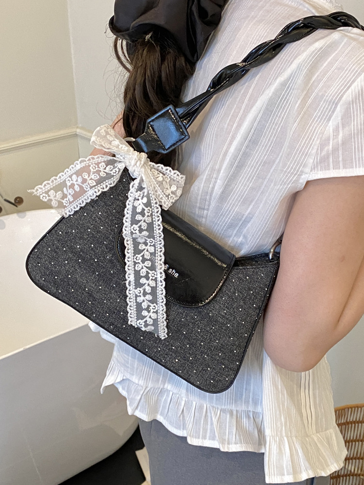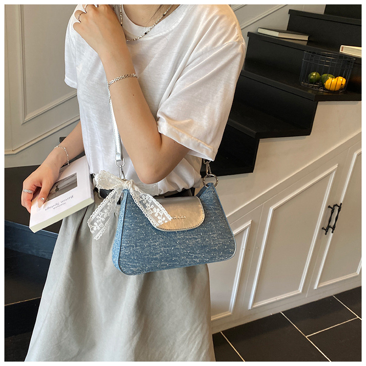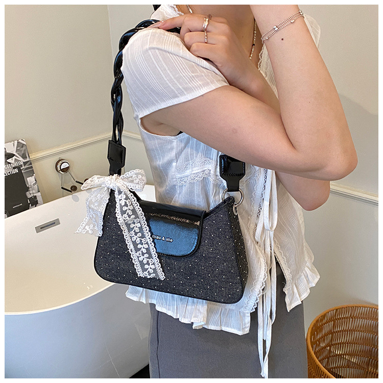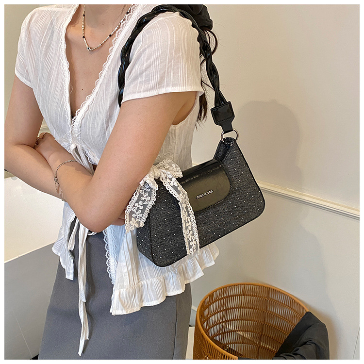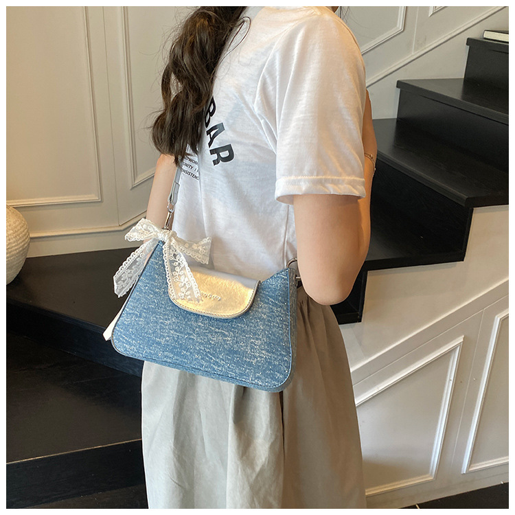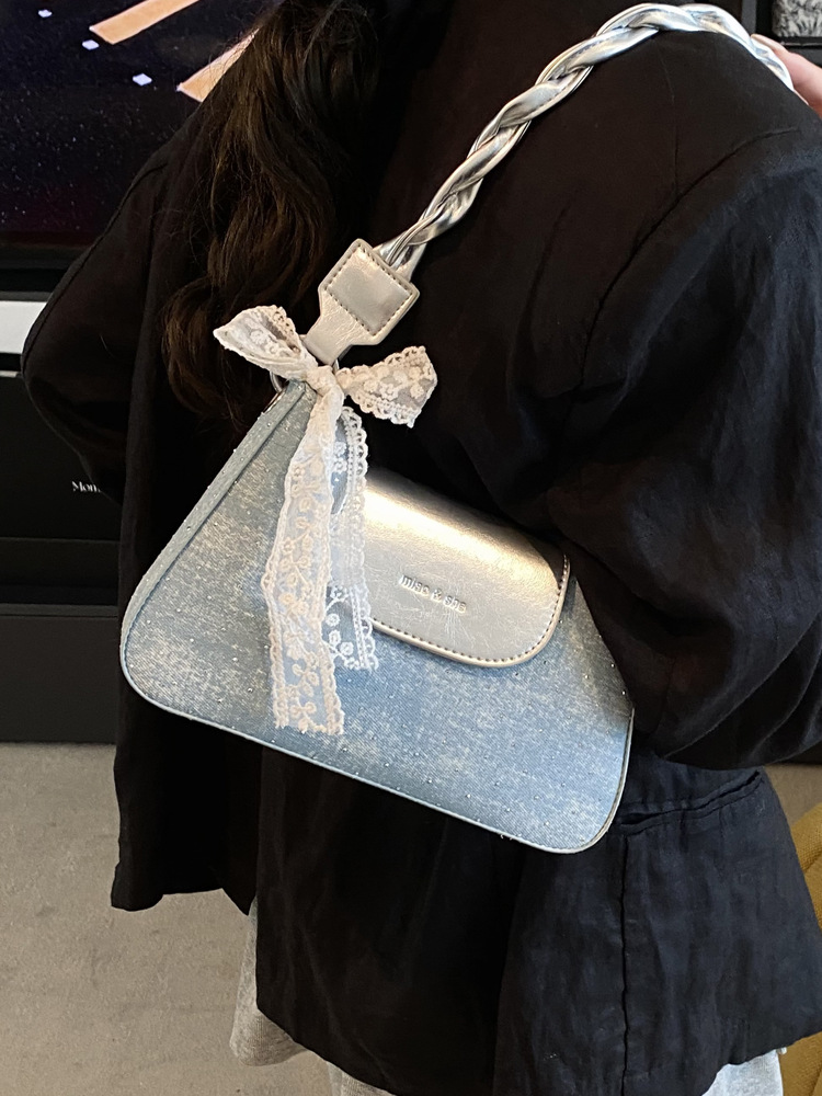 크로스보더 여성용 가방 2025 신형 숄더 크로스백 인터넷 연예인 한국판 동전 지갑 외국 스타일 실크 스카프 대비 색상 겨드랑이 가방 트렌디
