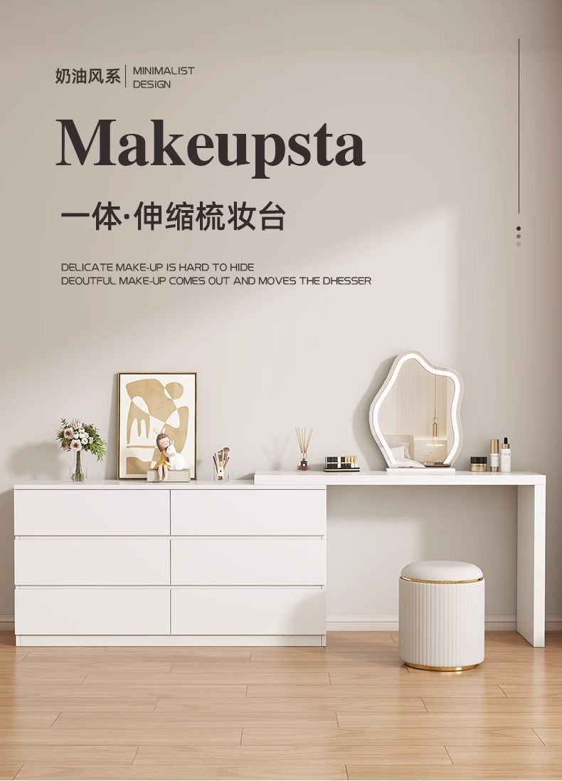 80 대용량 서랍장 + 0.8m 접이식 화장대 + 푹신한 스툴