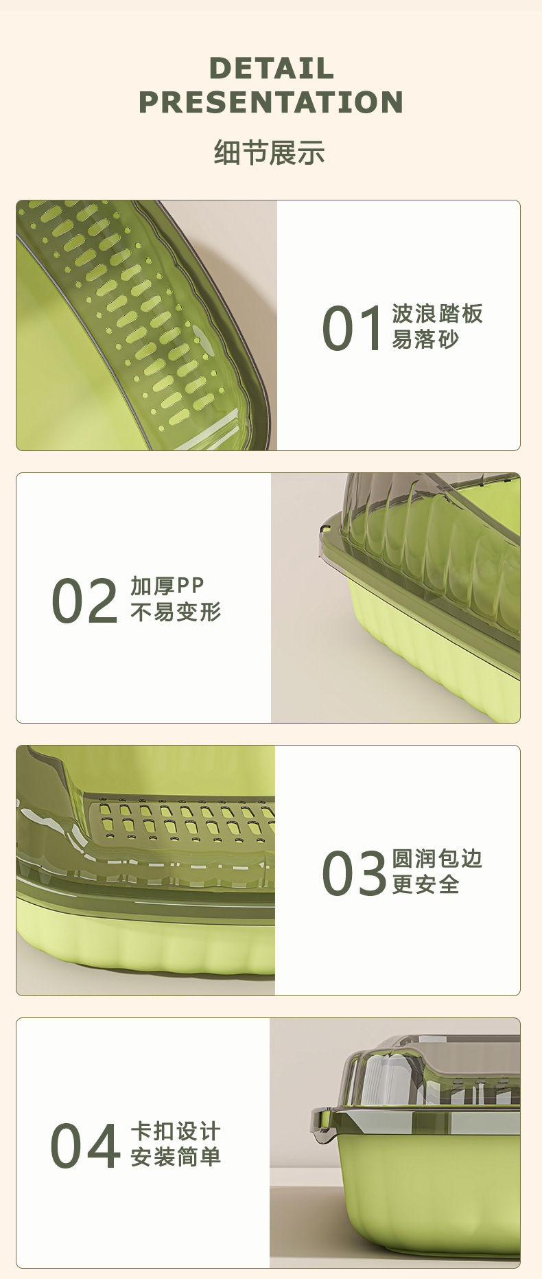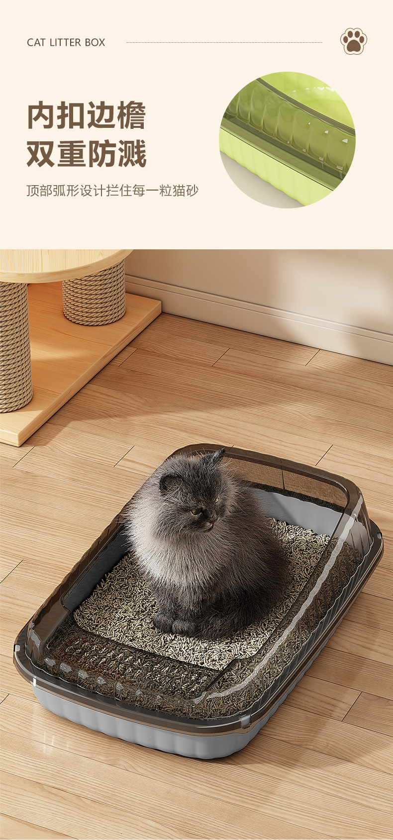 초대형 반밀폐형 고양이 모래통, 개방형 외부 방지 욕실, 작은 새끼 고양이용 애완동물 용품 모래통