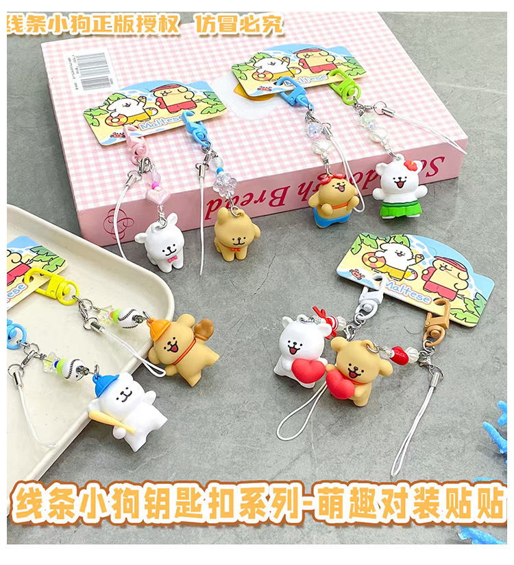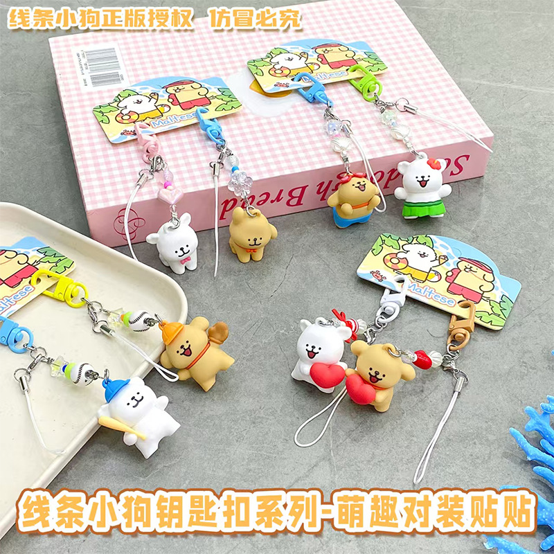 2025 새로운 커플 발렌타인 데이 선물 정품 라인 강아지 휴대 전화 체인 펜던트 여성을위한 귀여운 키 체인