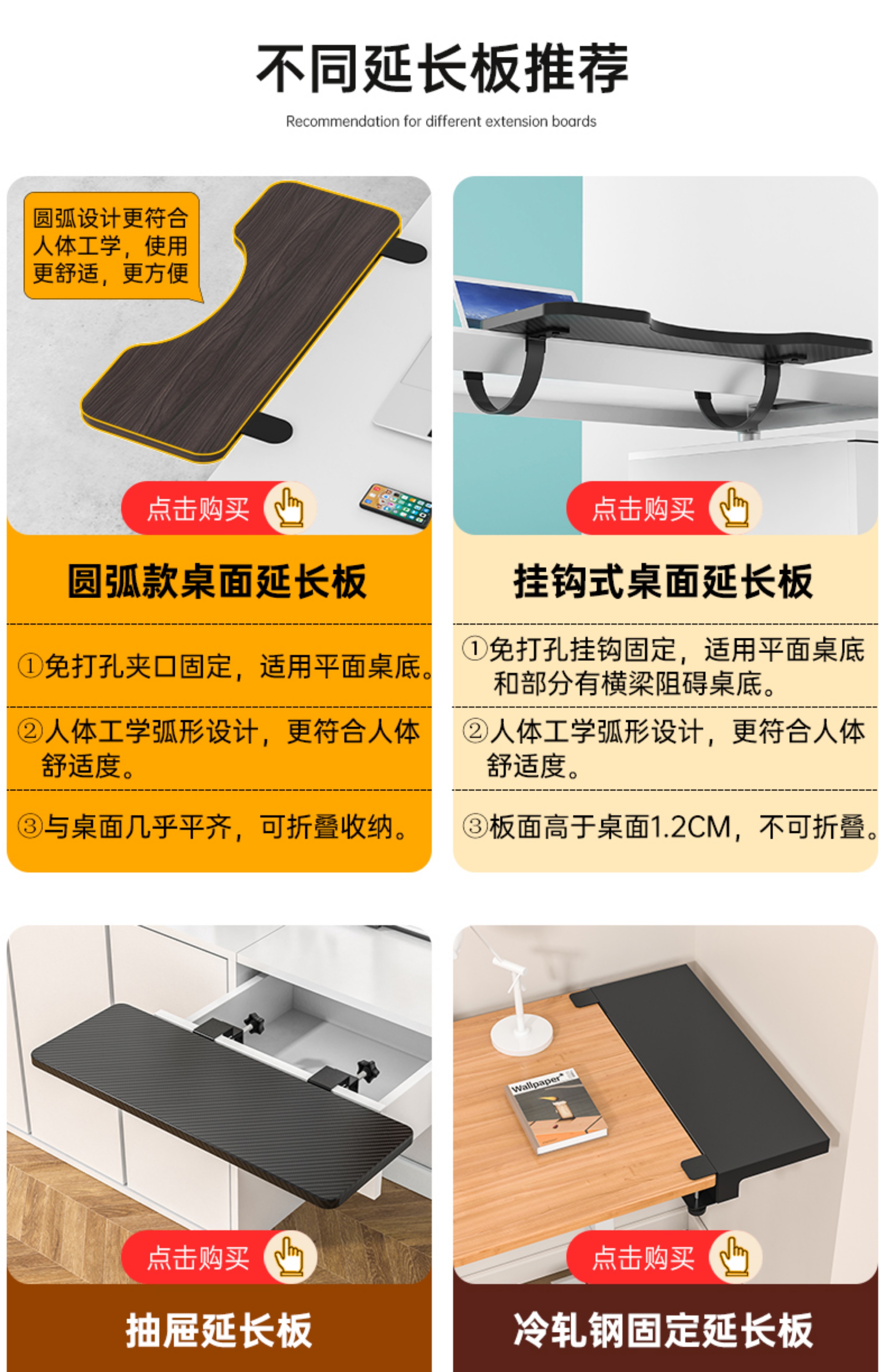 데스크탑 확장 보드, 펀치 없는 확장, 확장, 컴퓨터 테이블, 손 받침대, 접이식, 확장 및 확대, Yi Heng