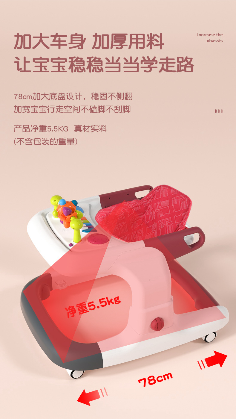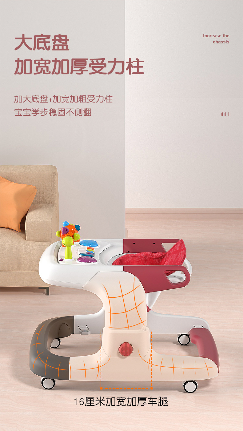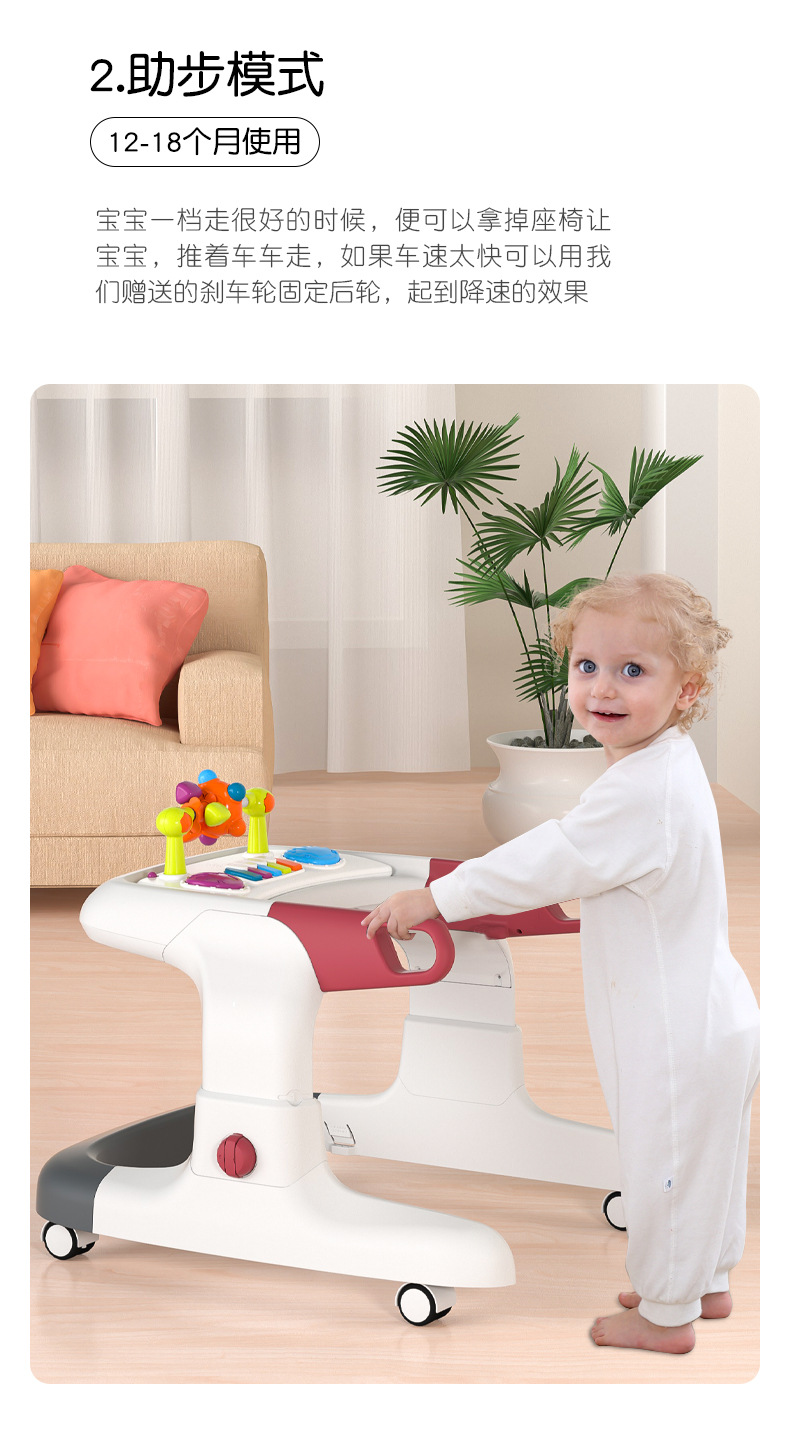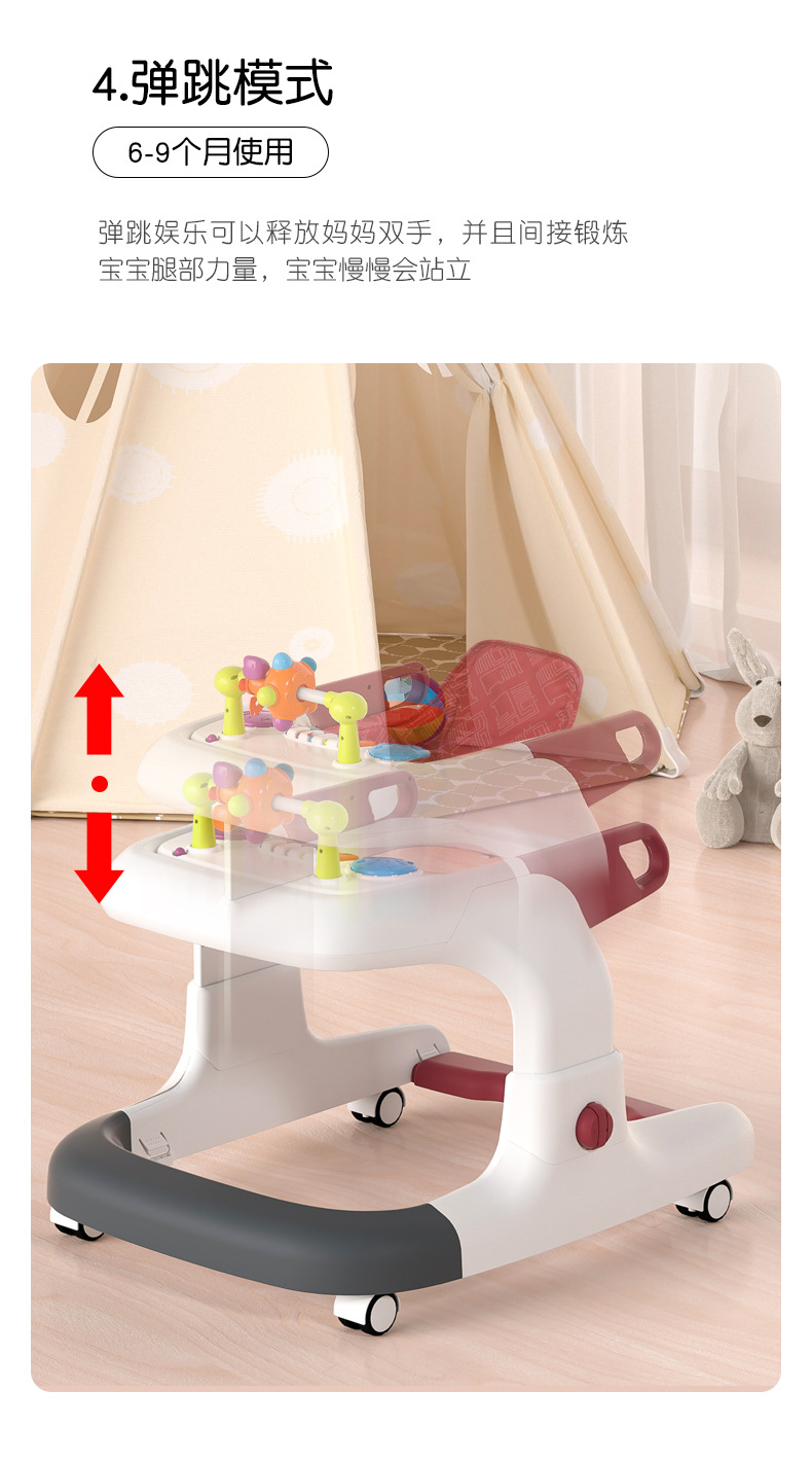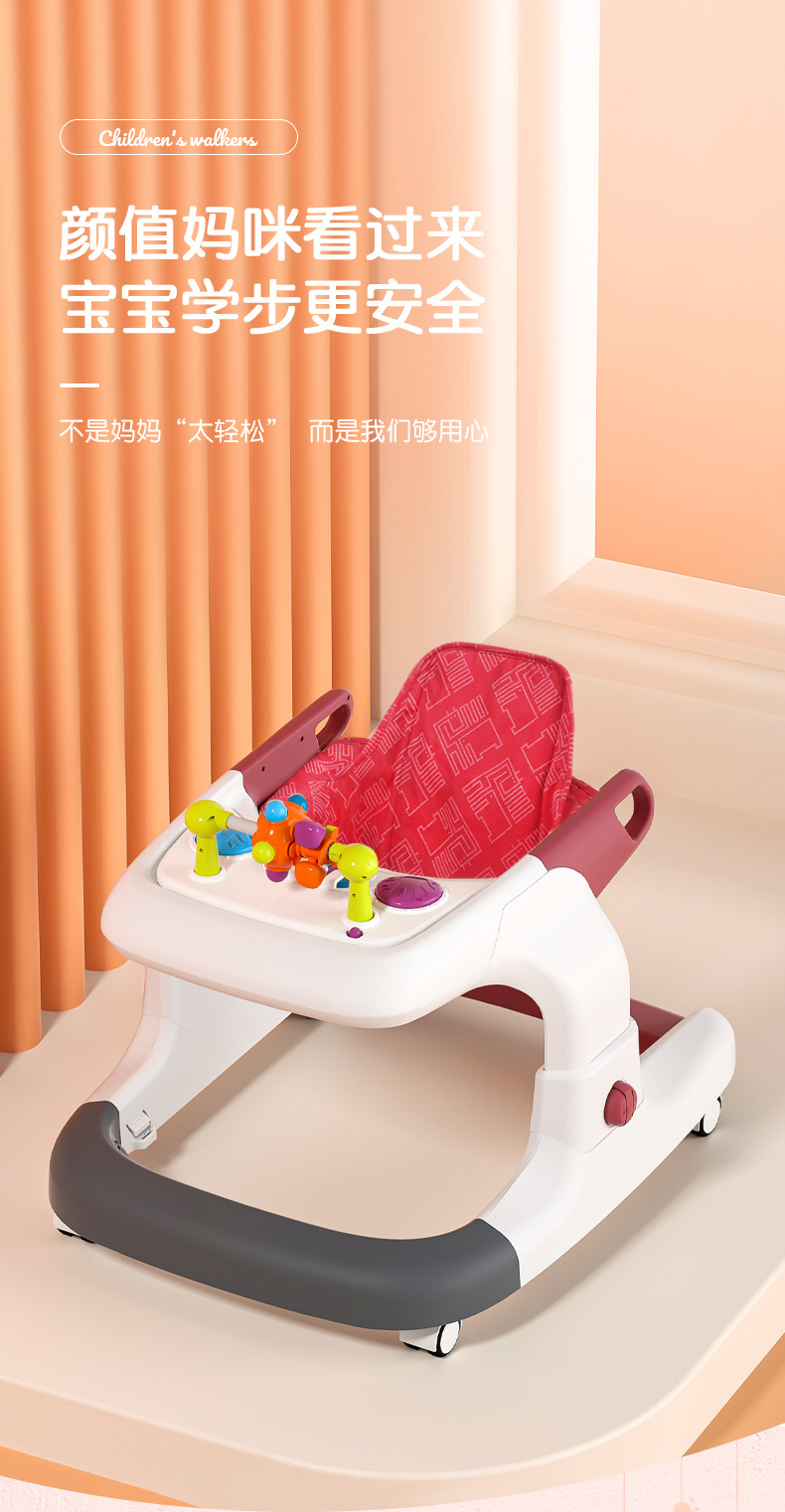 아기 보행기, O자형 다리 방지, 전복 방지, 다기능 어린이 남아 및 여아 보행기 보행기