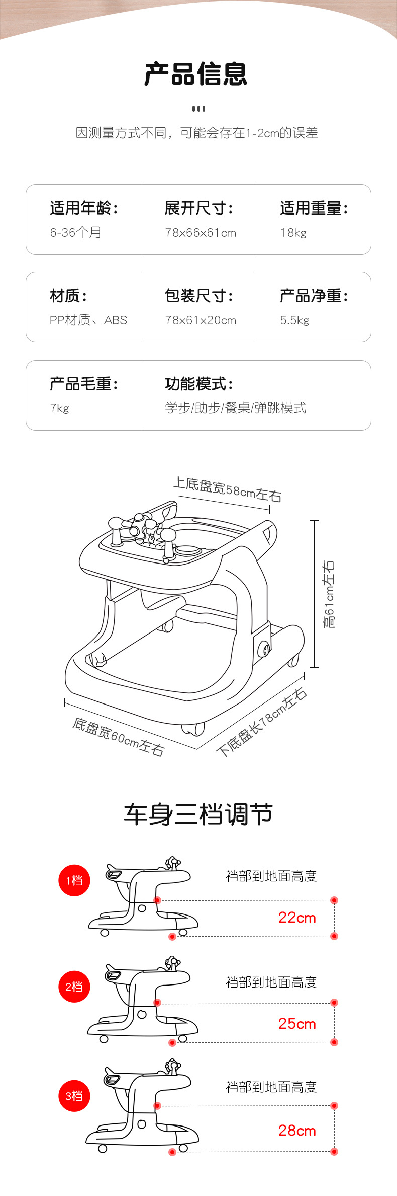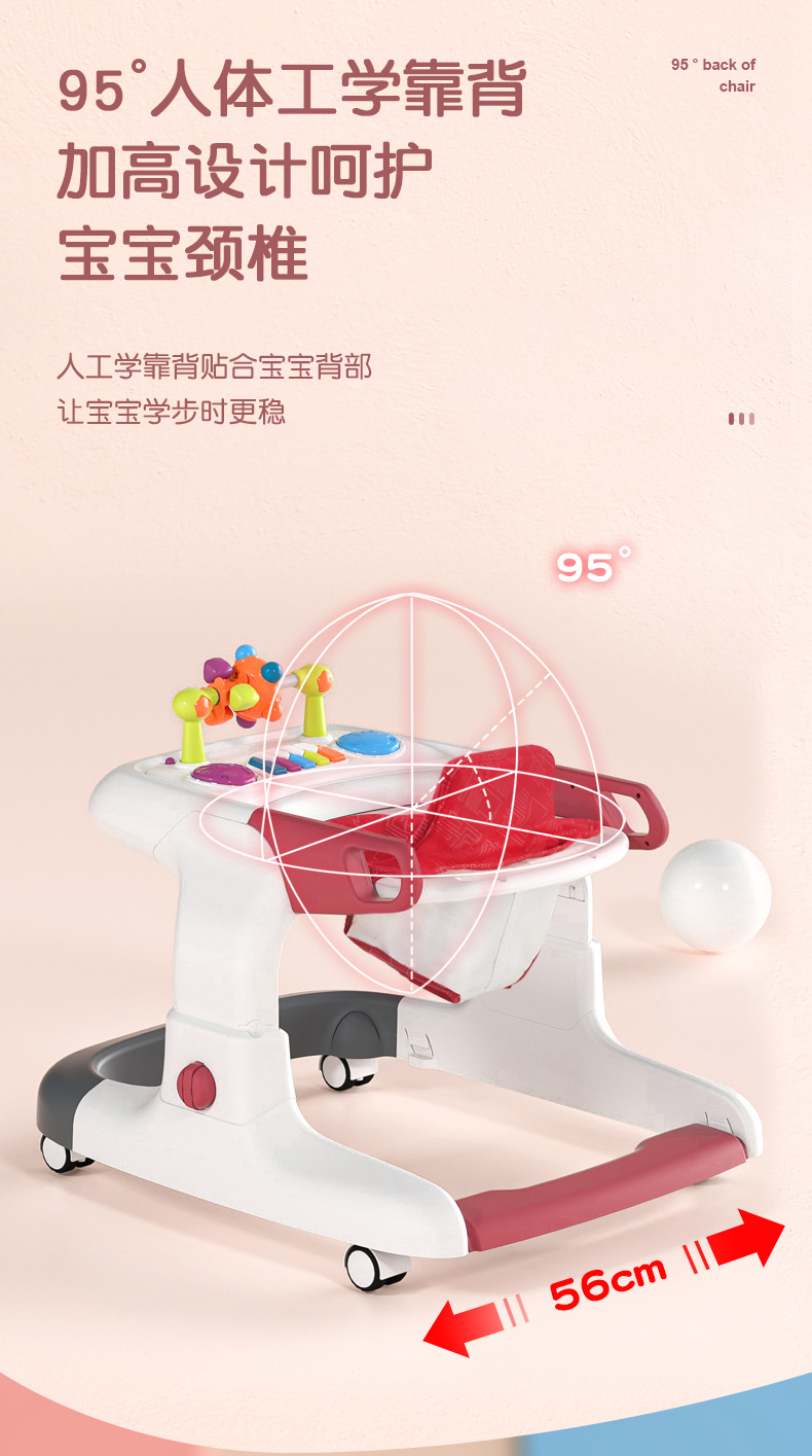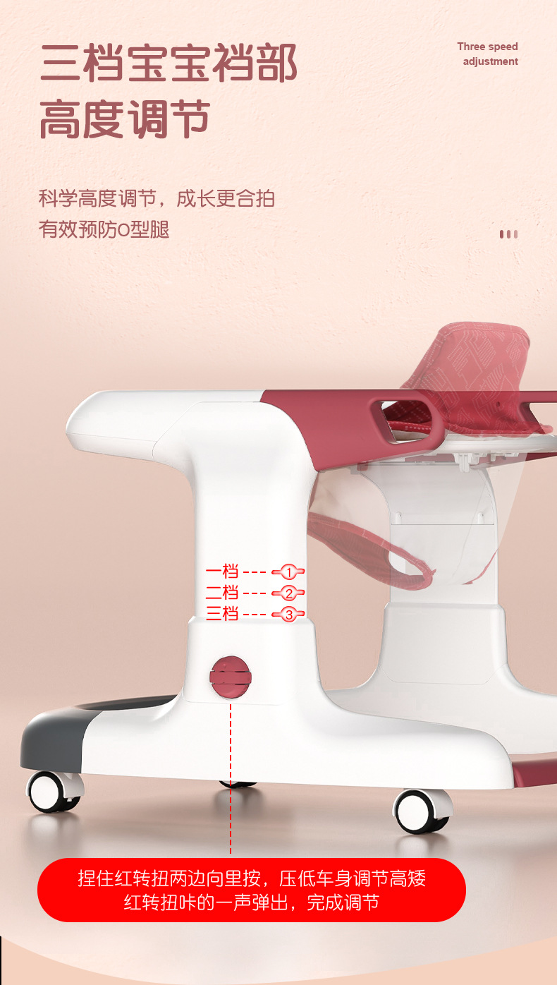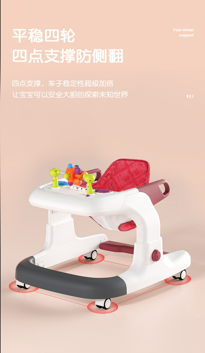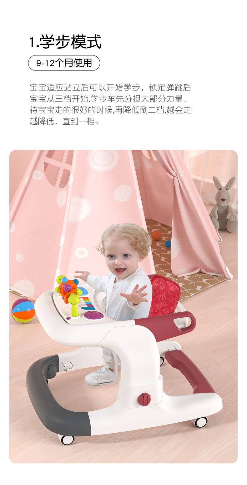 아기 보행기, O자형 다리 방지, 전복 방지, 다기능 어린이 남아 및 여아 보행기 보행기