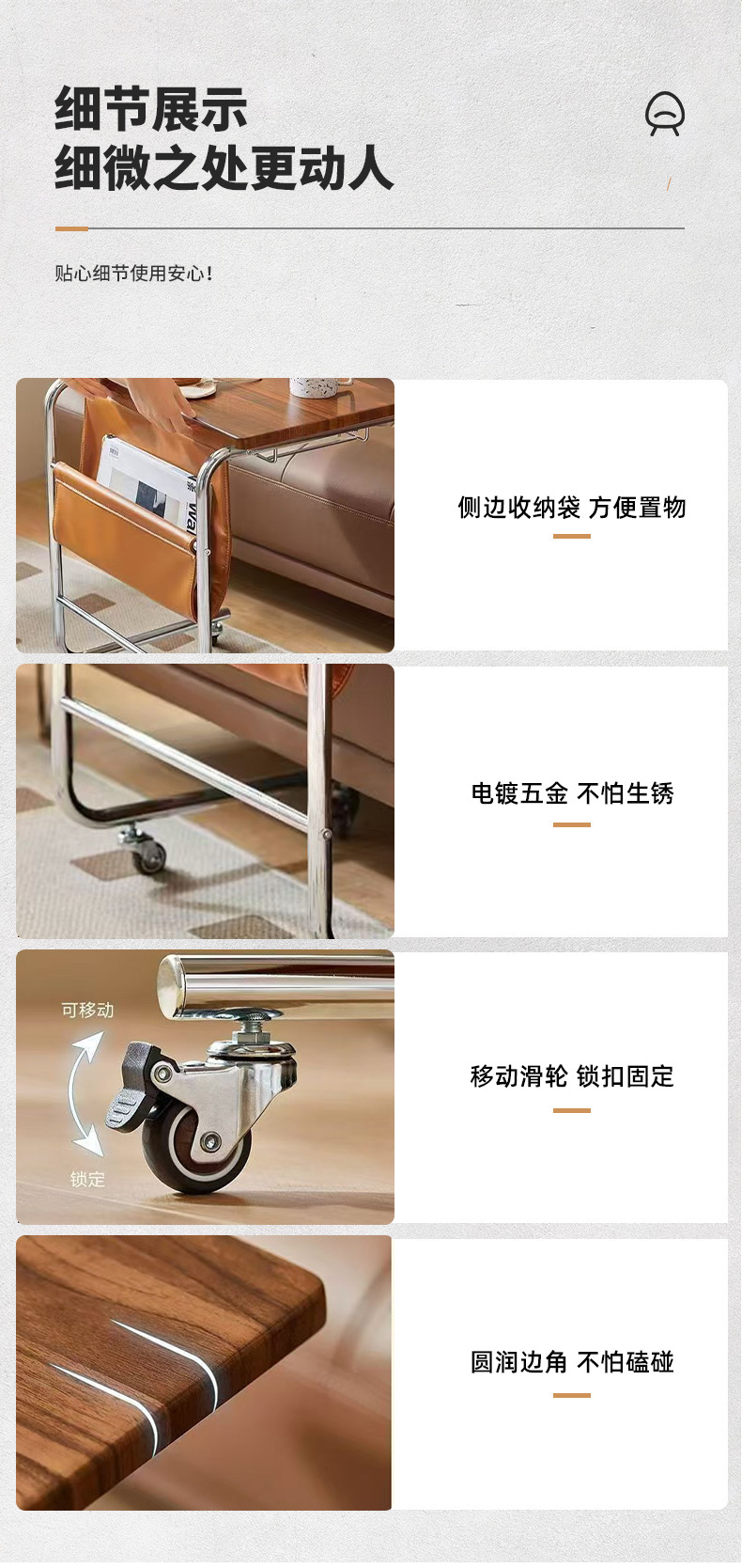 홈 소파 사이드 테이블 바닥 장식 임대 주택 휴대용 티 테이블 이동식 커피 테이블 작은 아파트 거실