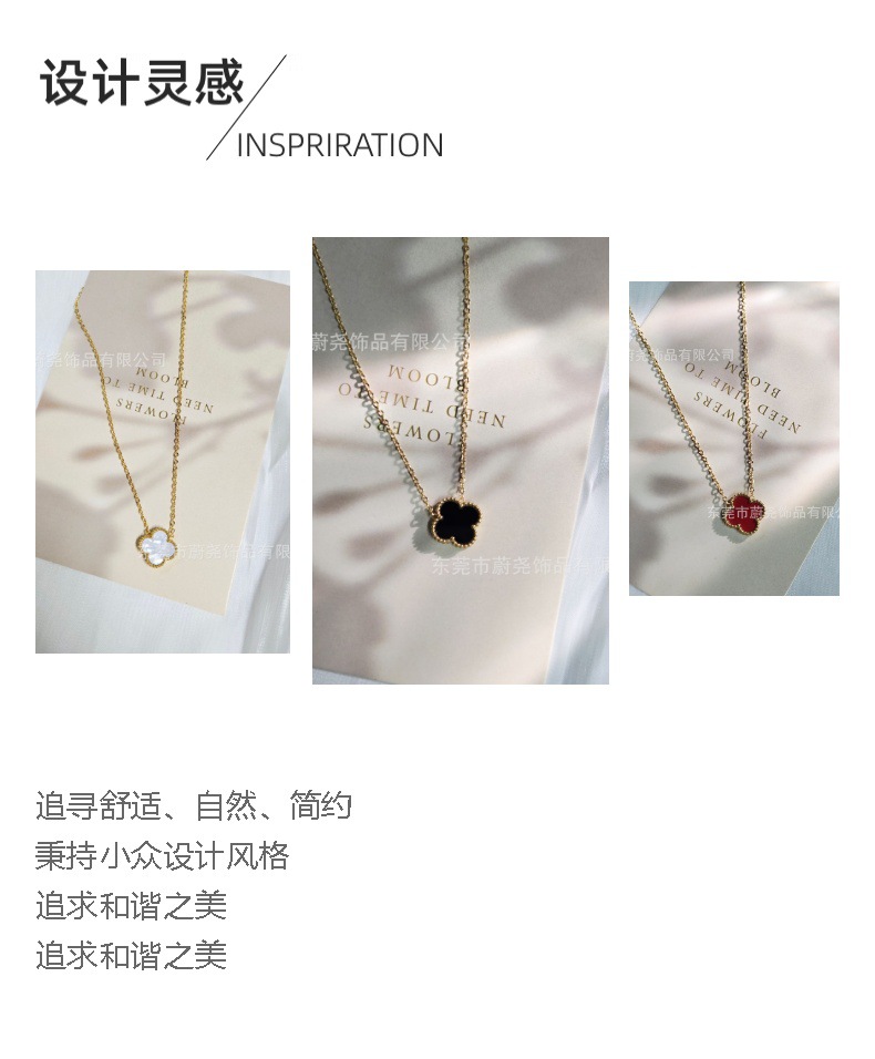 크로스보더 히트상품 18k 행운의 클로버 티타늄 스틸 변색없는 네잎클로버 목걸이 양면 클래식 고급 레이어드 목걸이