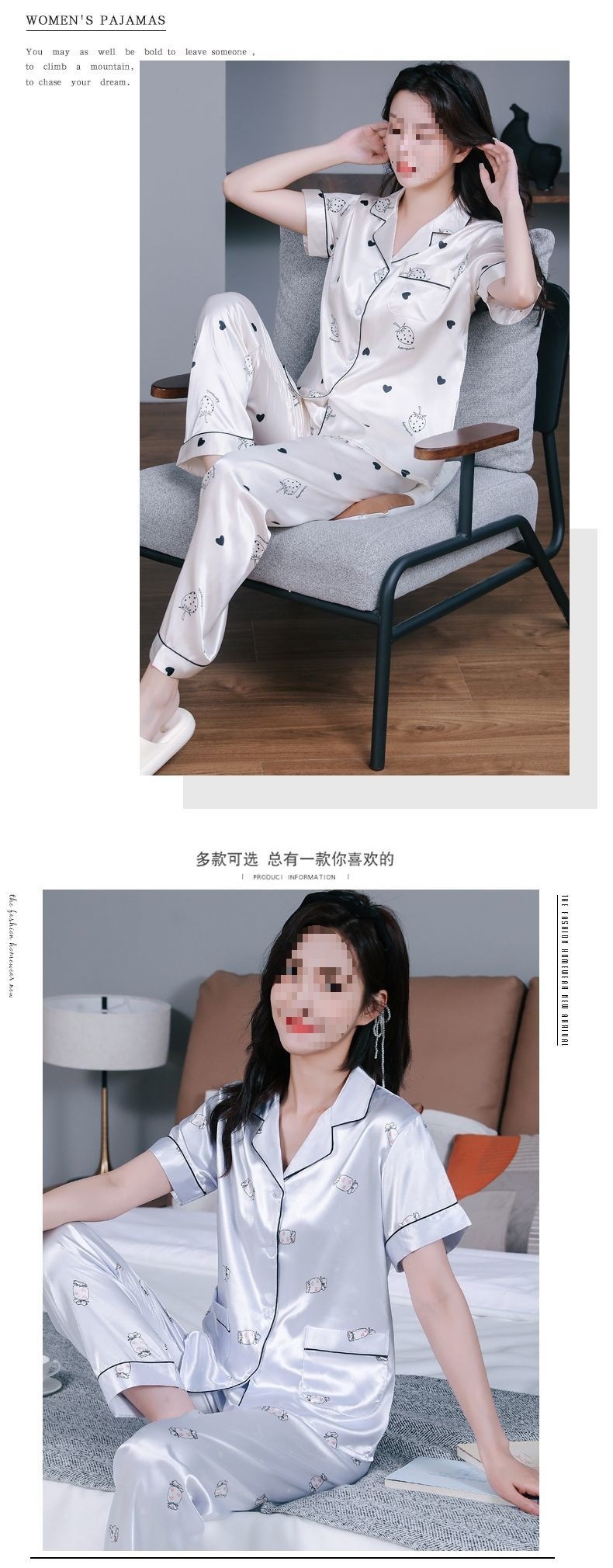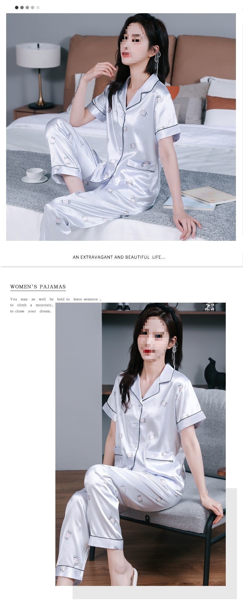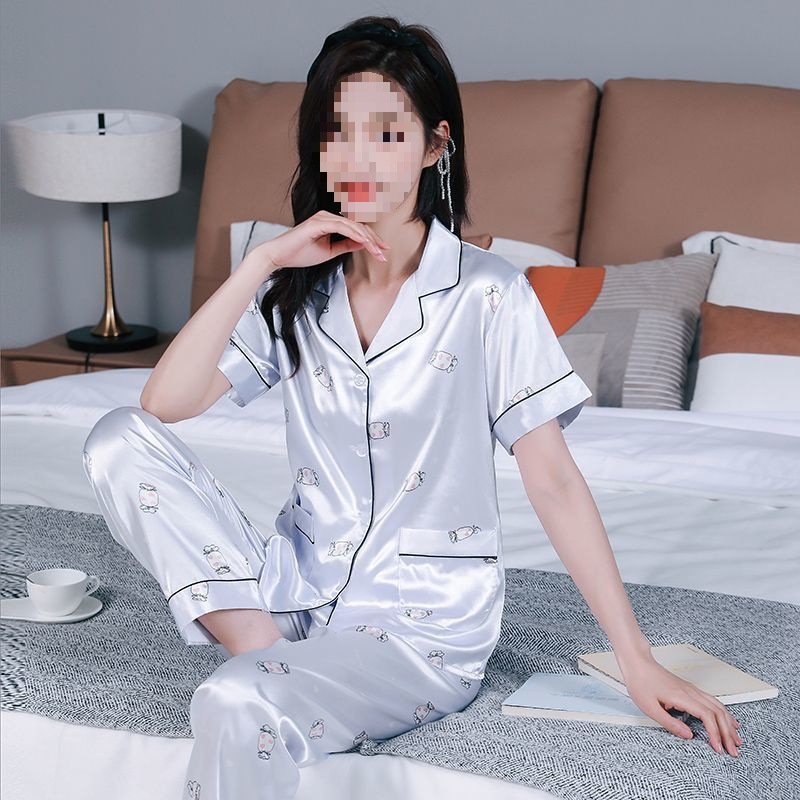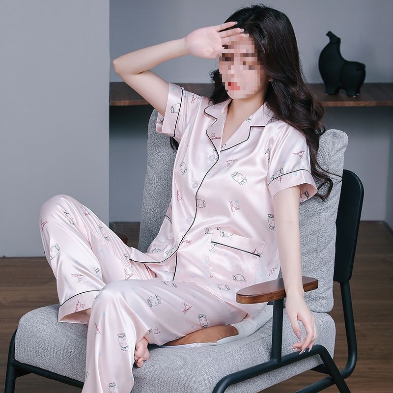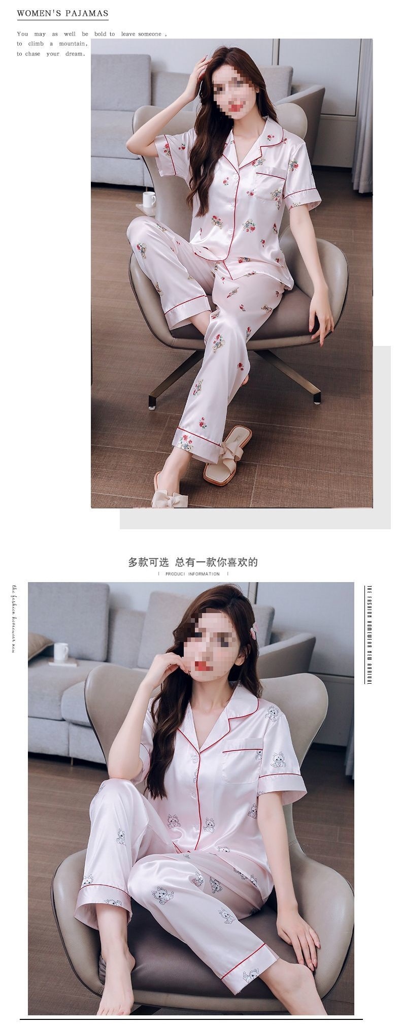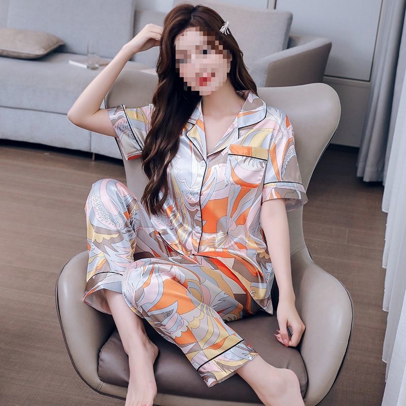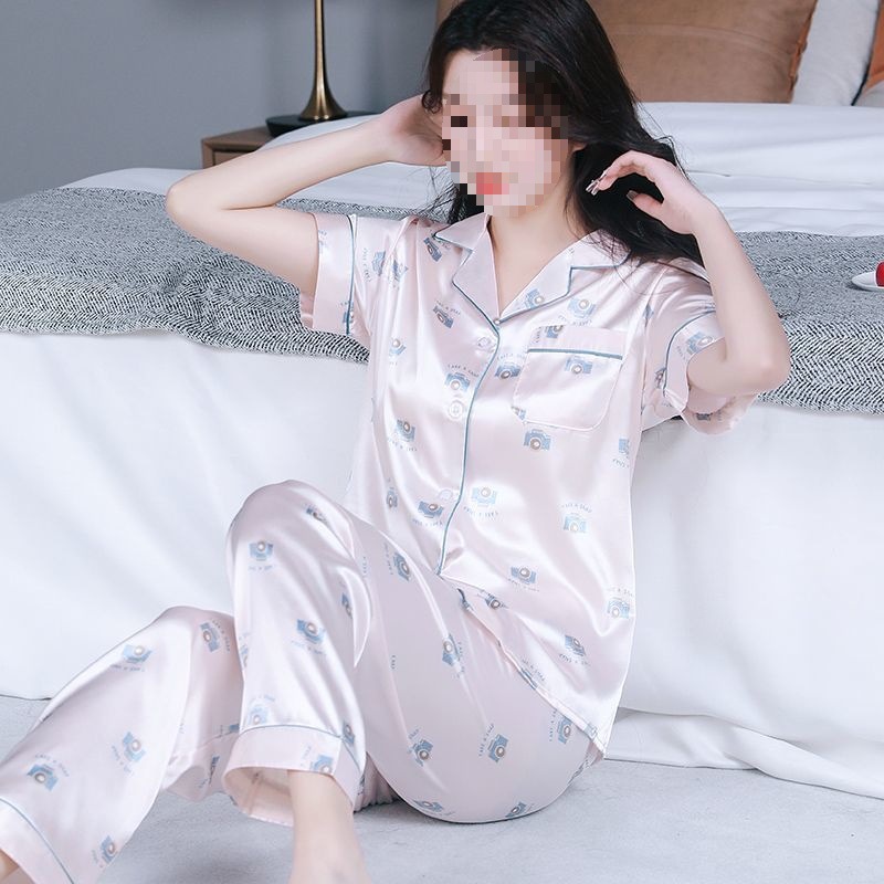 잠옷, 홈웨어, 여성용 실크 슈트, 반팔 바지, 젊고 달콤한, 큰 사이즈, 외부 착용 가능, 외국 스타일, 패션