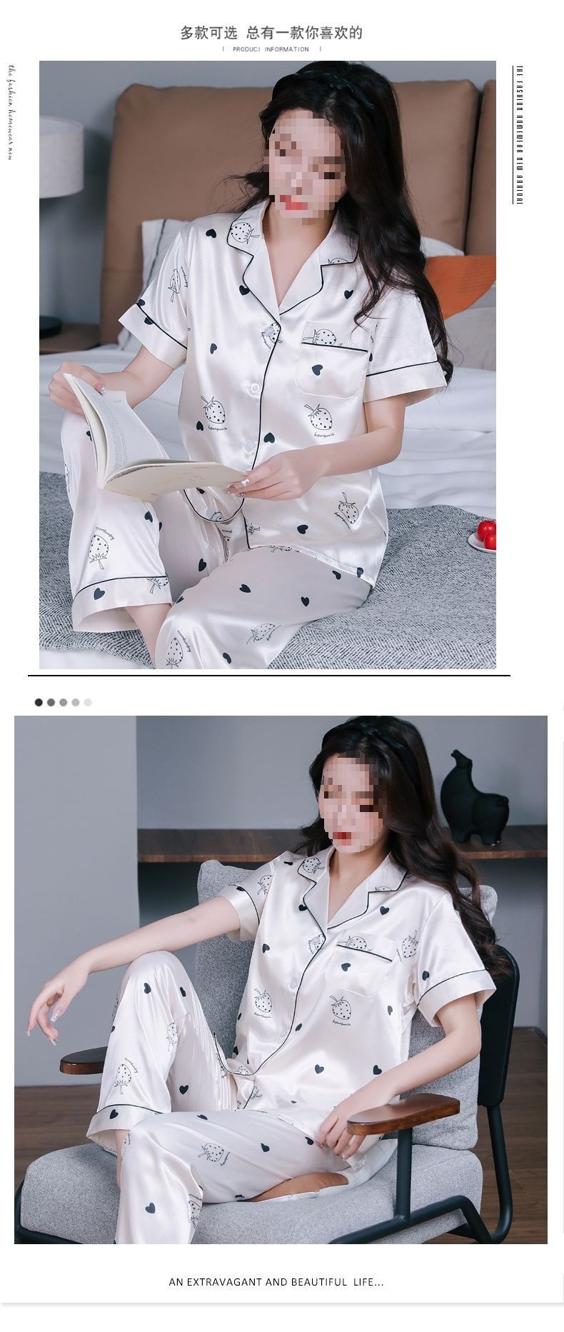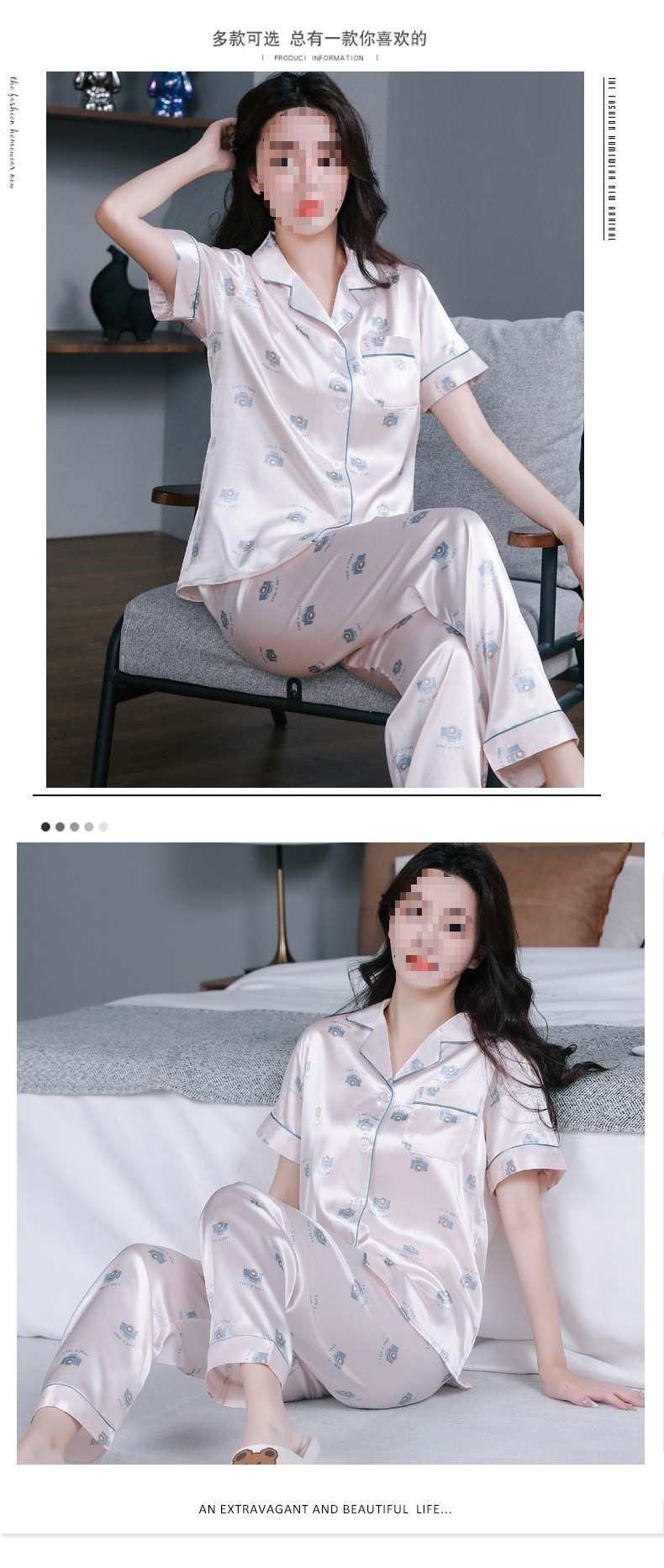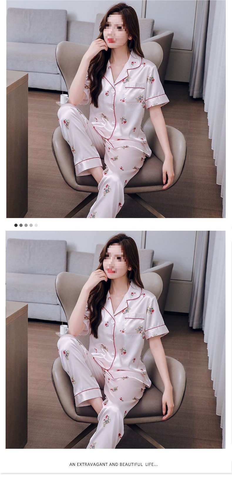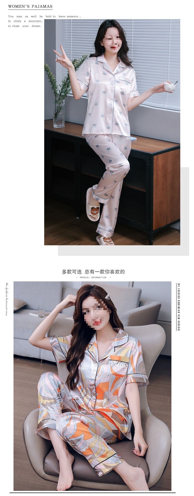 잠옷, 홈웨어, 여성용 실크 슈트, 반팔 바지, 젊고 달콤한, 큰 사이즈, 외부 착용 가능, 외국 스타일, 패션