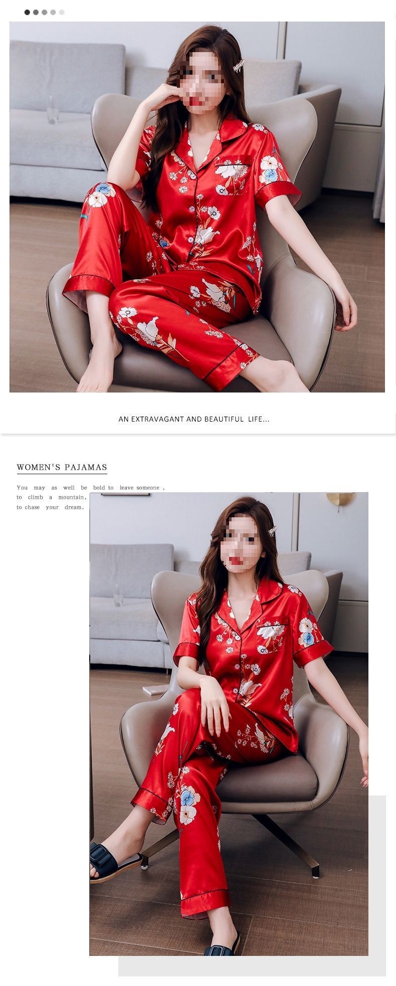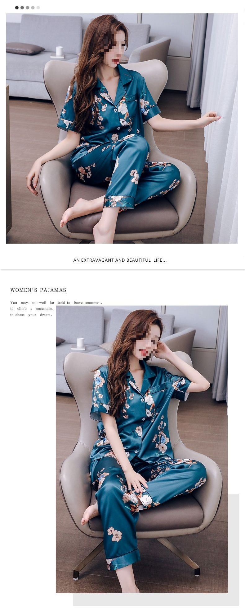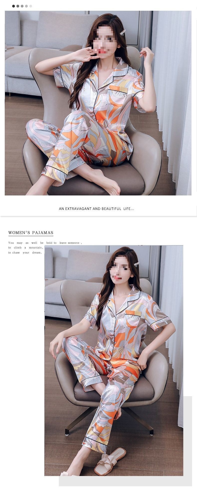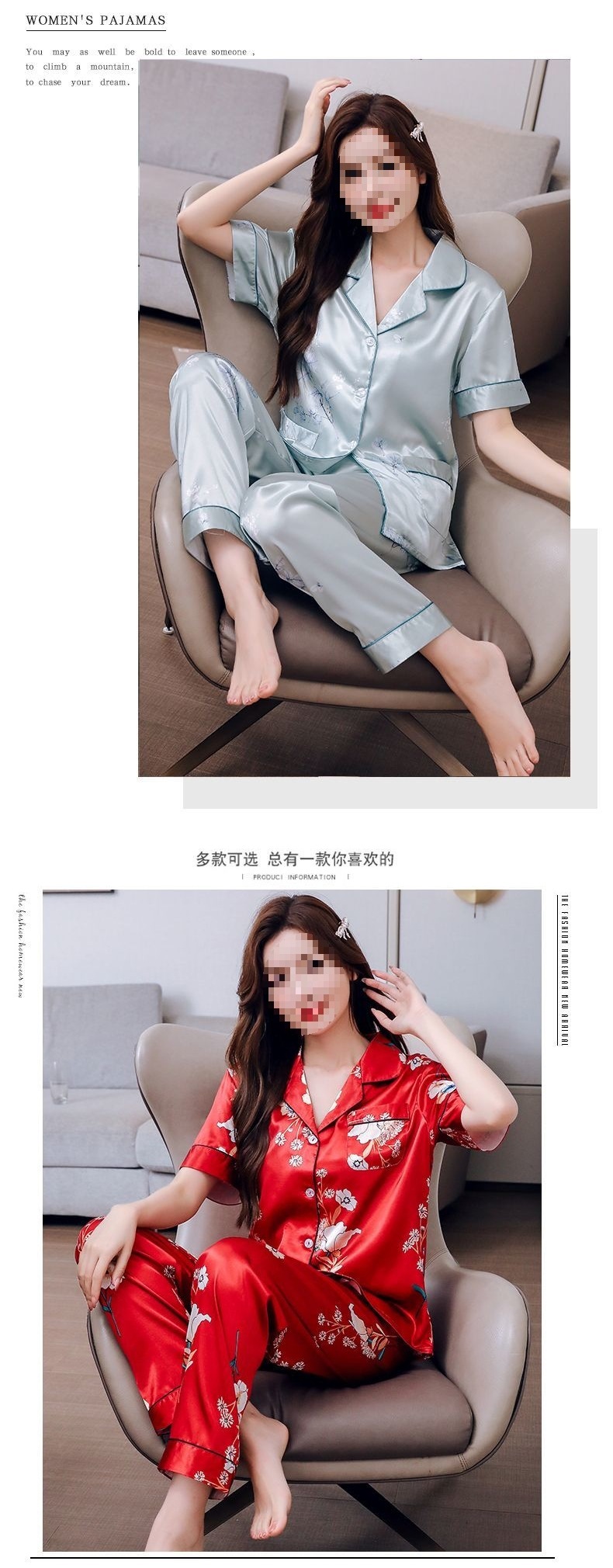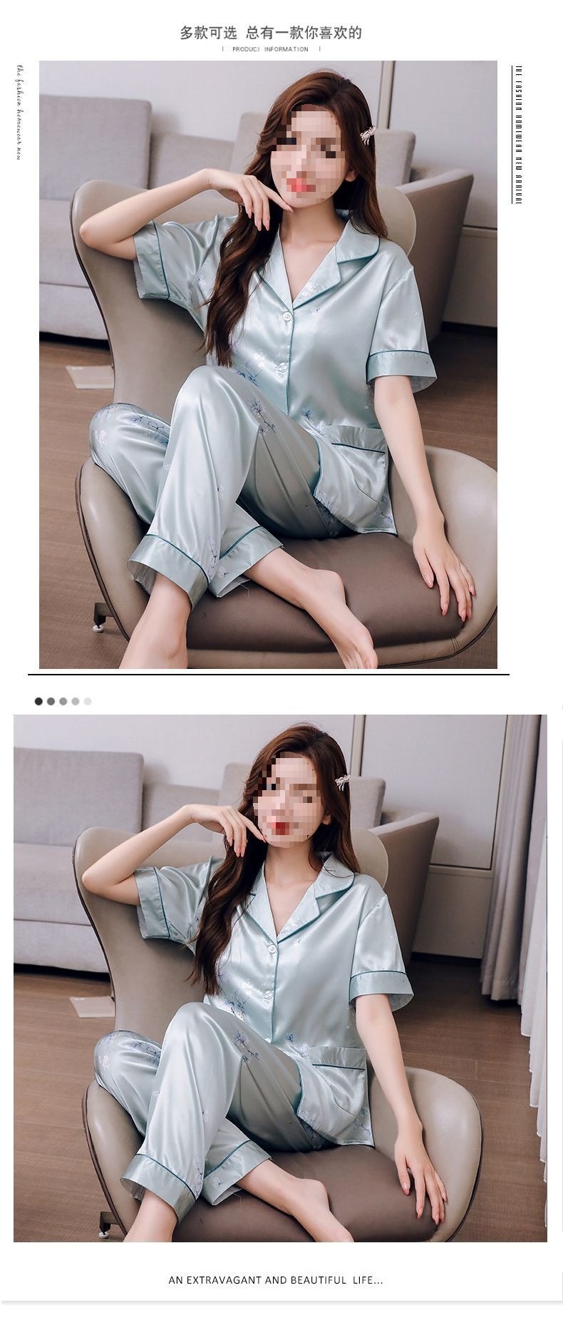잠옷, 홈웨어, 여성용 실크 슈트, 반팔 바지, 젊고 달콤한, 큰 사이즈, 외부 착용 가능, 외국 스타일, 패션