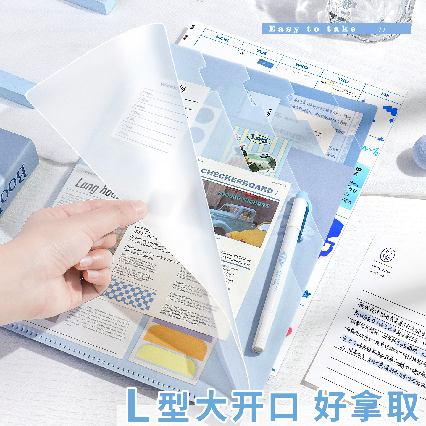 그라데이션 컬러의 A4 파일 폴더 6칸, L자형 대형 개방형 시험지, 고급스럽고 두꺼워진 대용량 데이터 저장 공간
