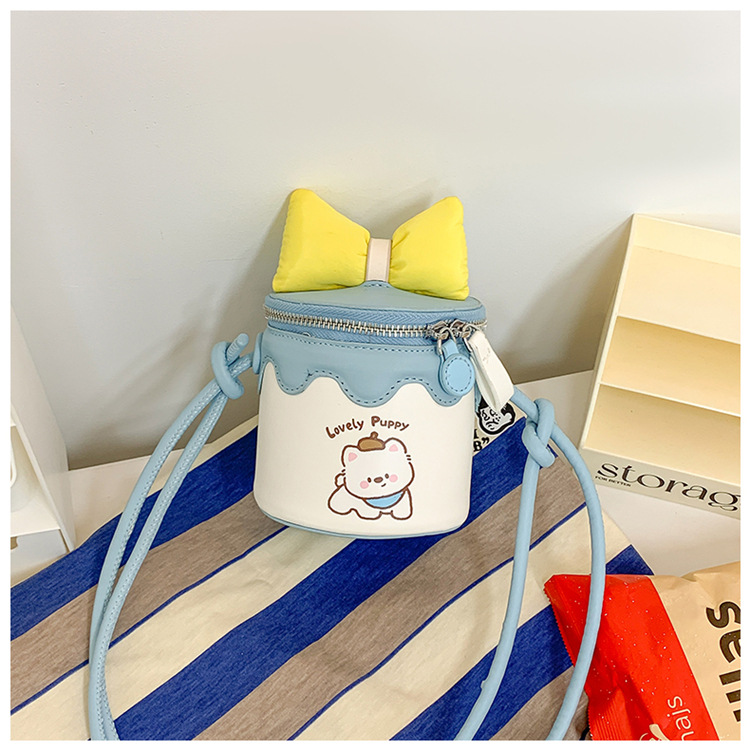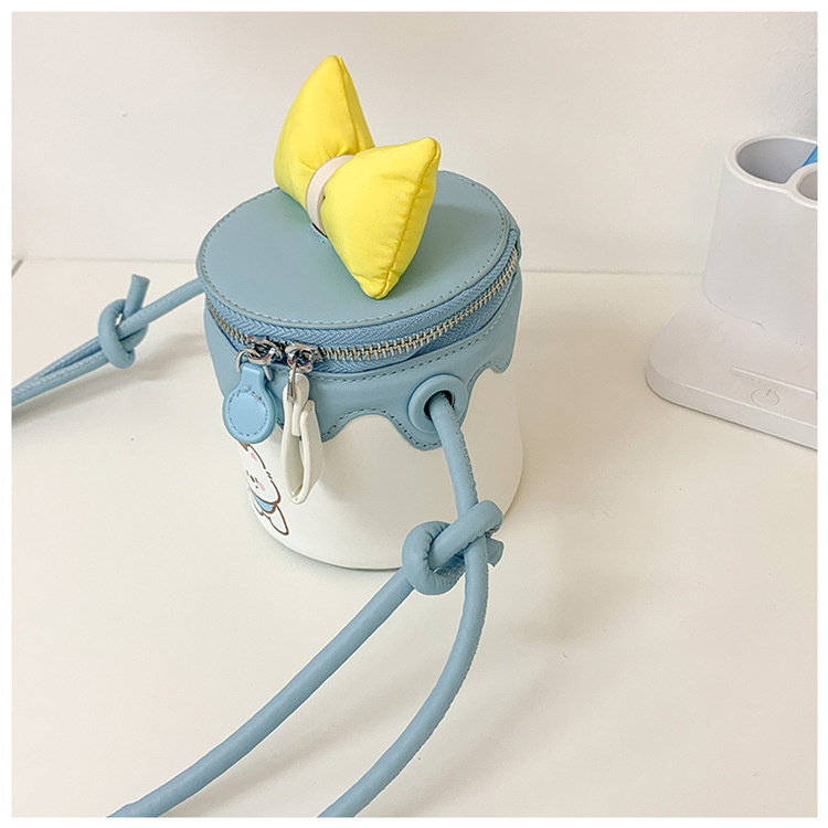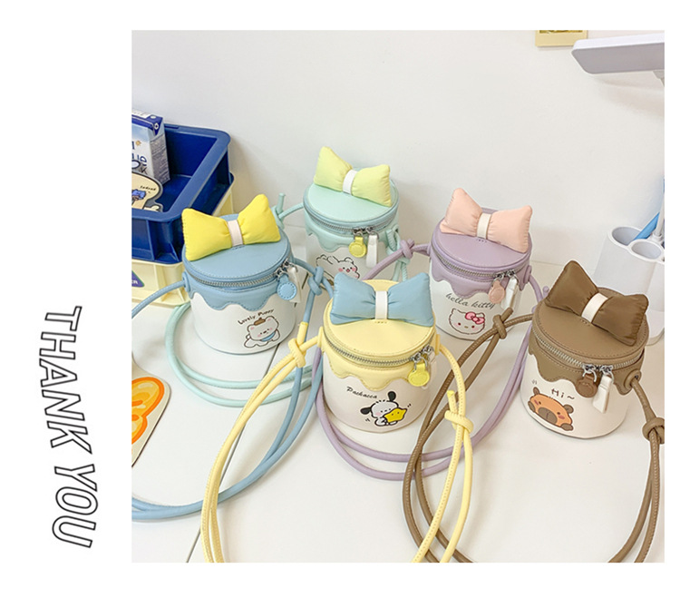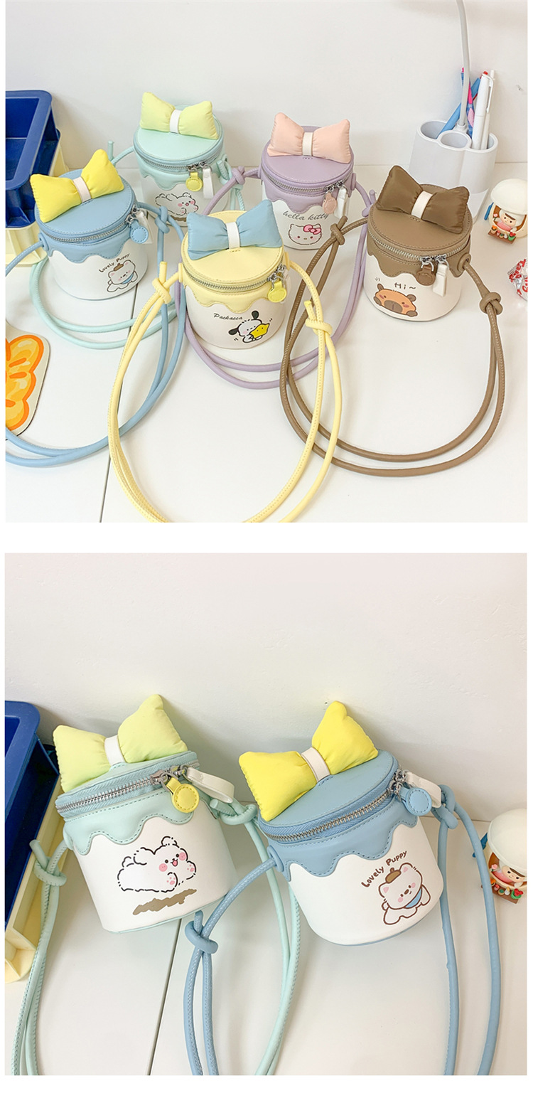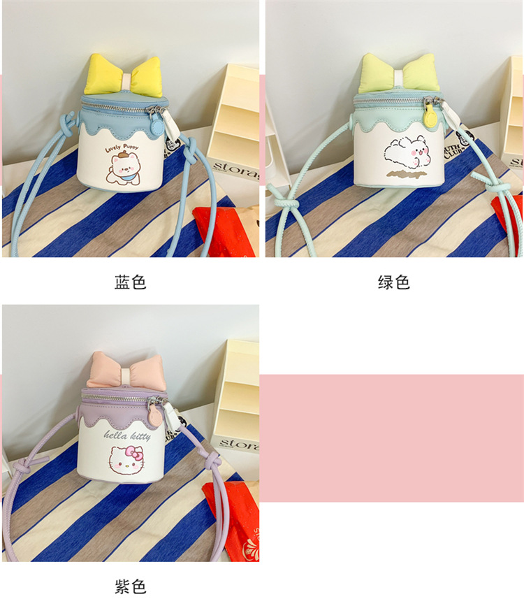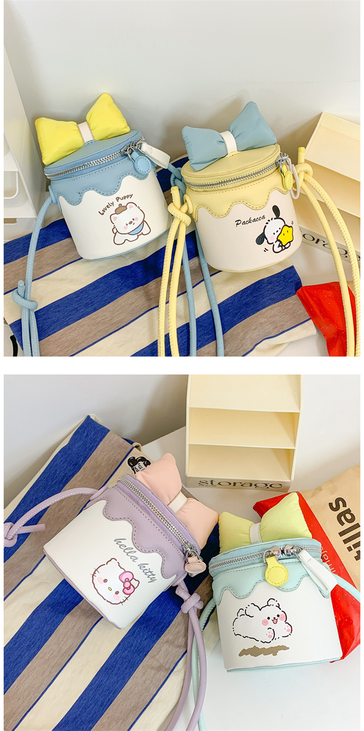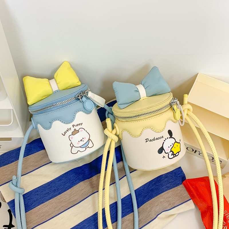 한국어 버전 귀여운 어린이 가방 만화 Bowknot 미니 Crossbody 가방 크리 에이 티브 버킷 동전 지갑 소녀 숄더 백