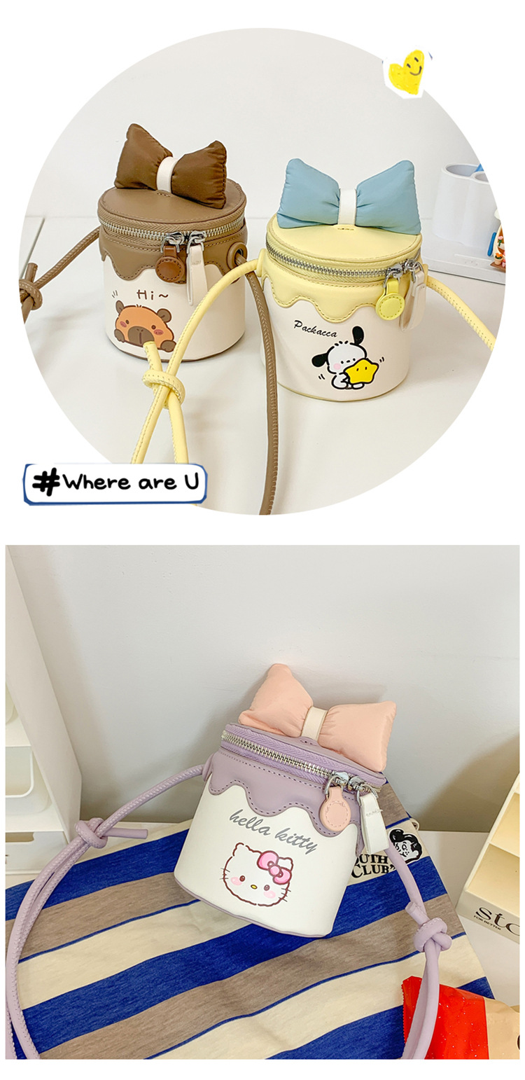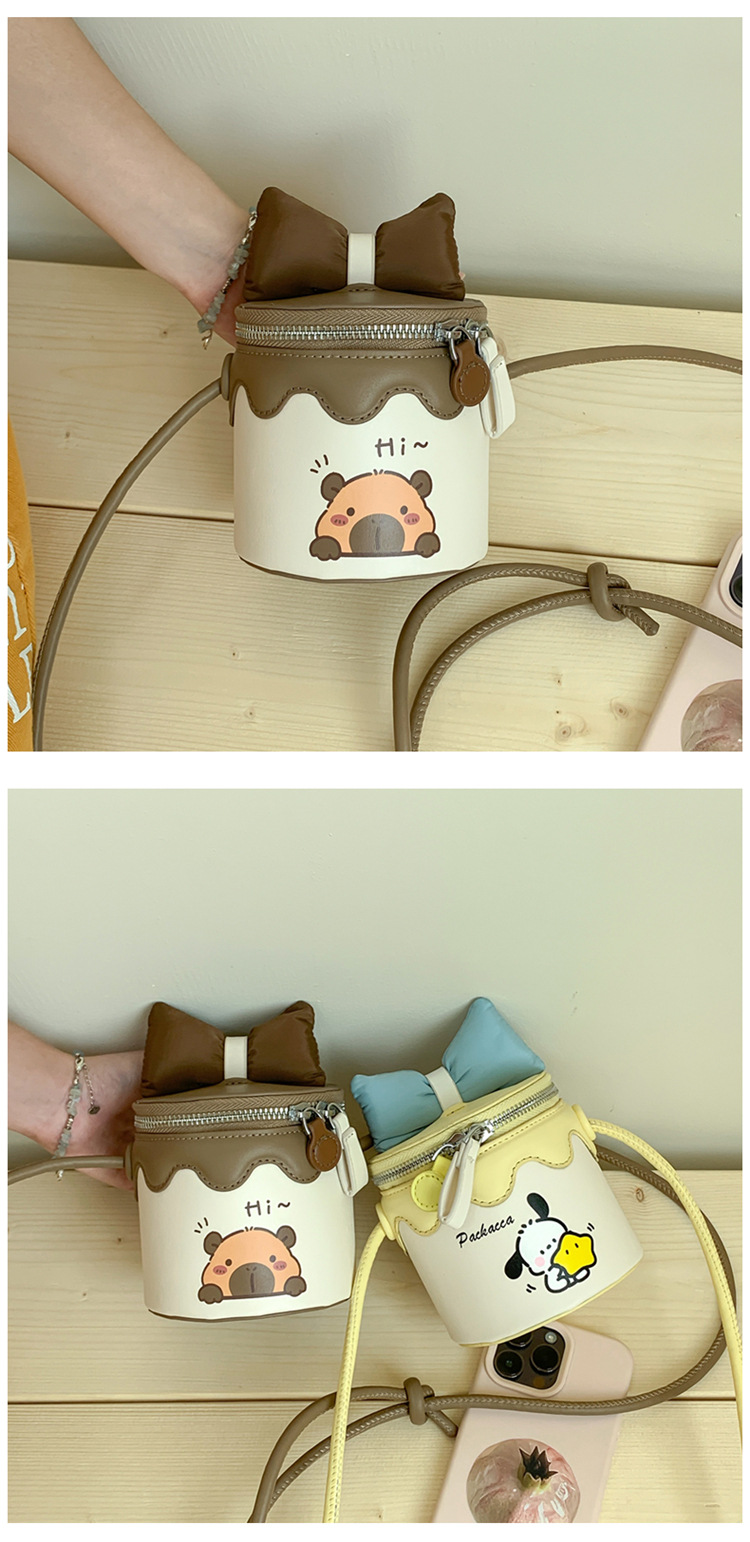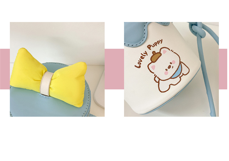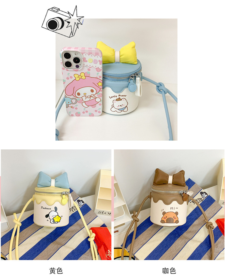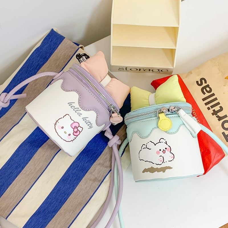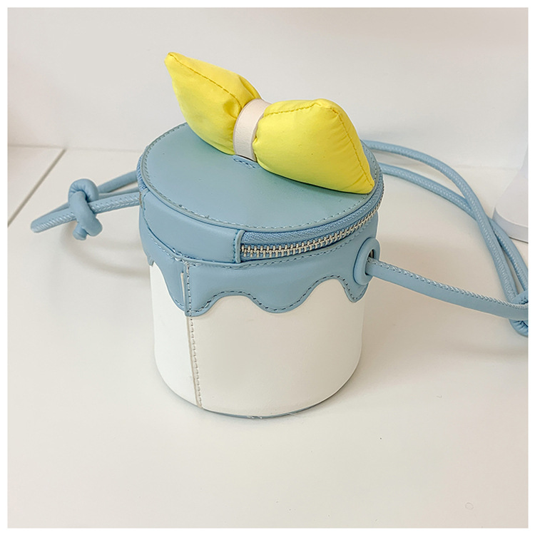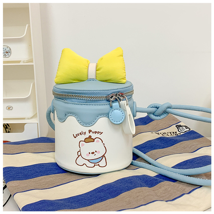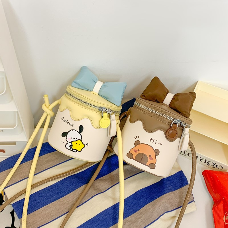 한국어 버전 귀여운 어린이 가방 만화 Bowknot 미니 Crossbody 가방 크리 에이 티브 버킷 동전 지갑 소녀 숄더 백