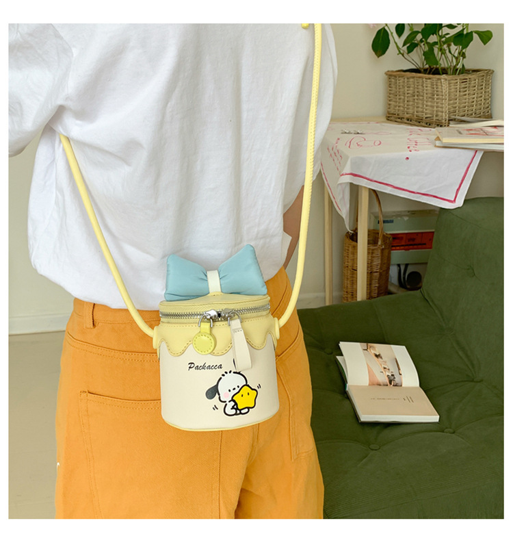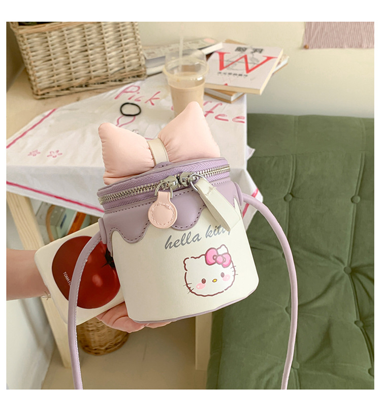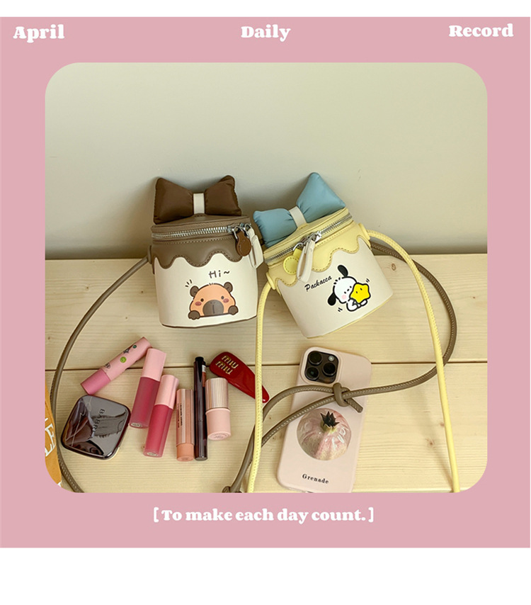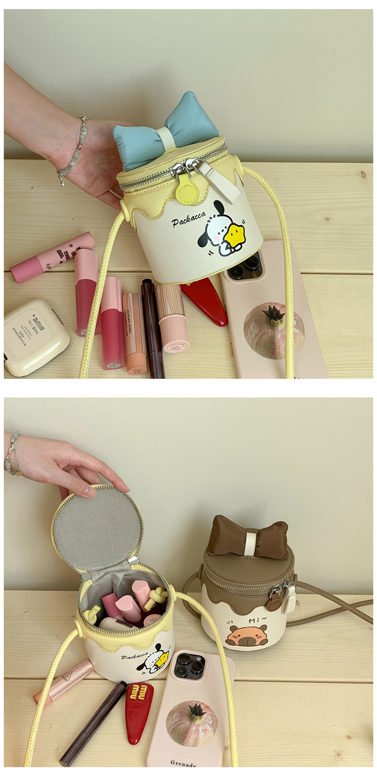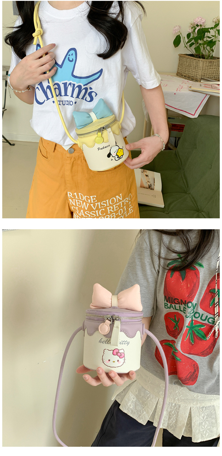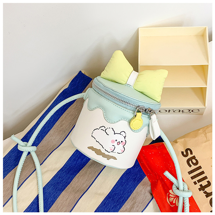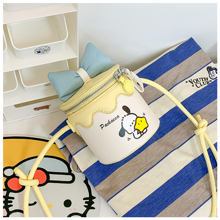 한국어 버전 귀여운 어린이 가방 만화 Bowknot 미니 Crossbody 가방 크리 에이 티브 버킷 동전 지갑 소녀 숄더 백