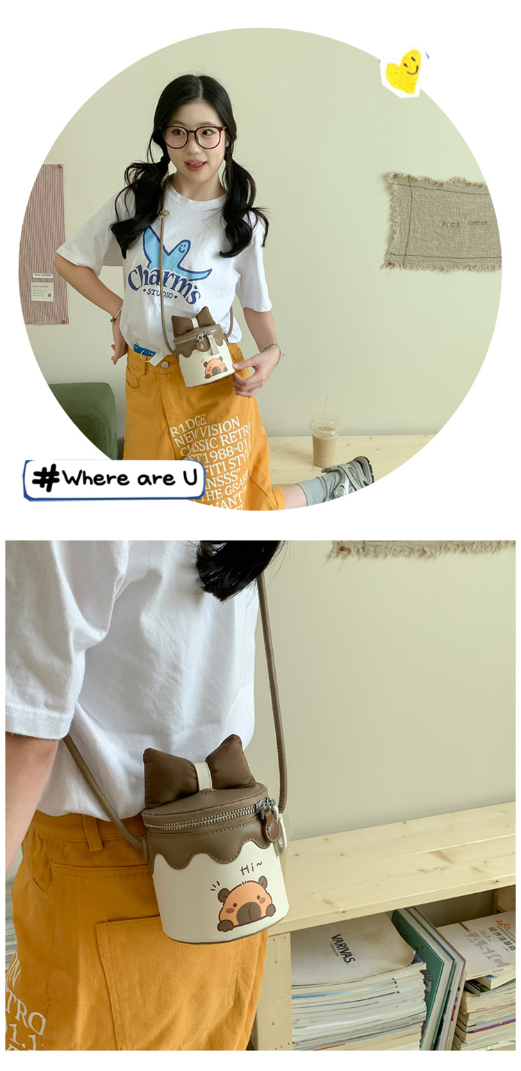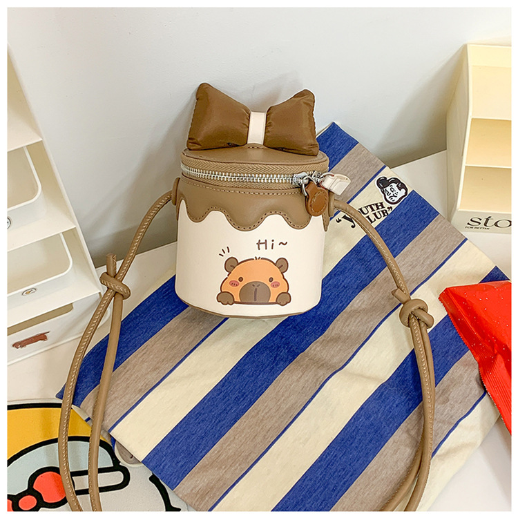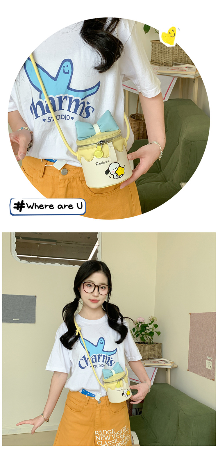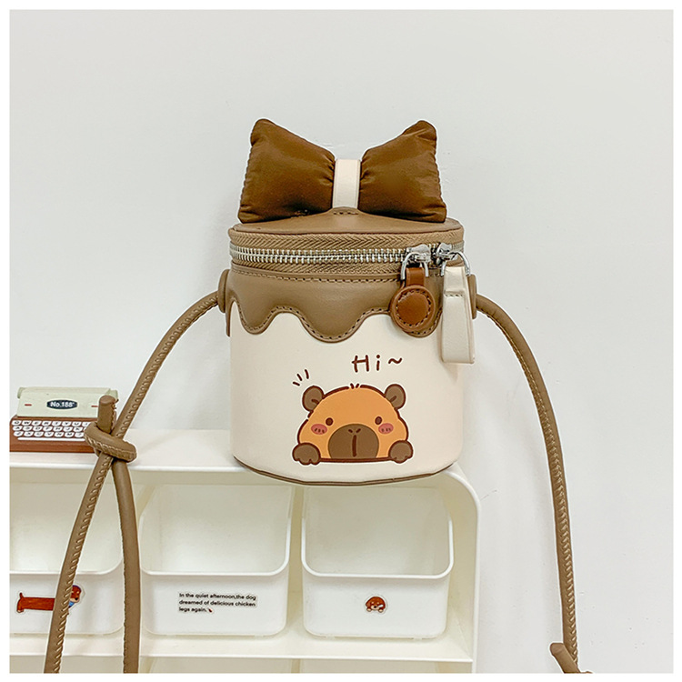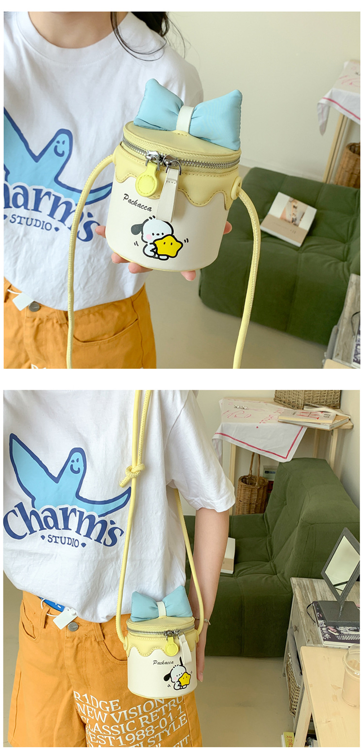 한국어 버전 귀여운 어린이 가방 만화 Bowknot 미니 Crossbody 가방 크리 에이 티브 버킷 동전 지갑 소녀 숄더 백