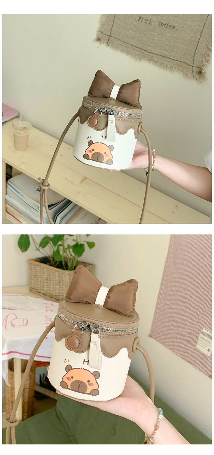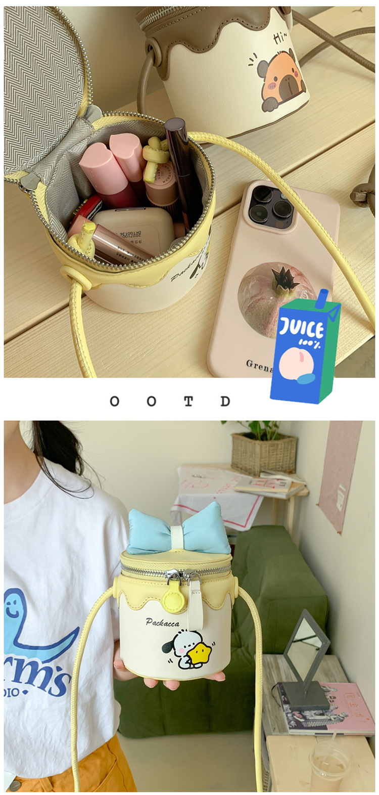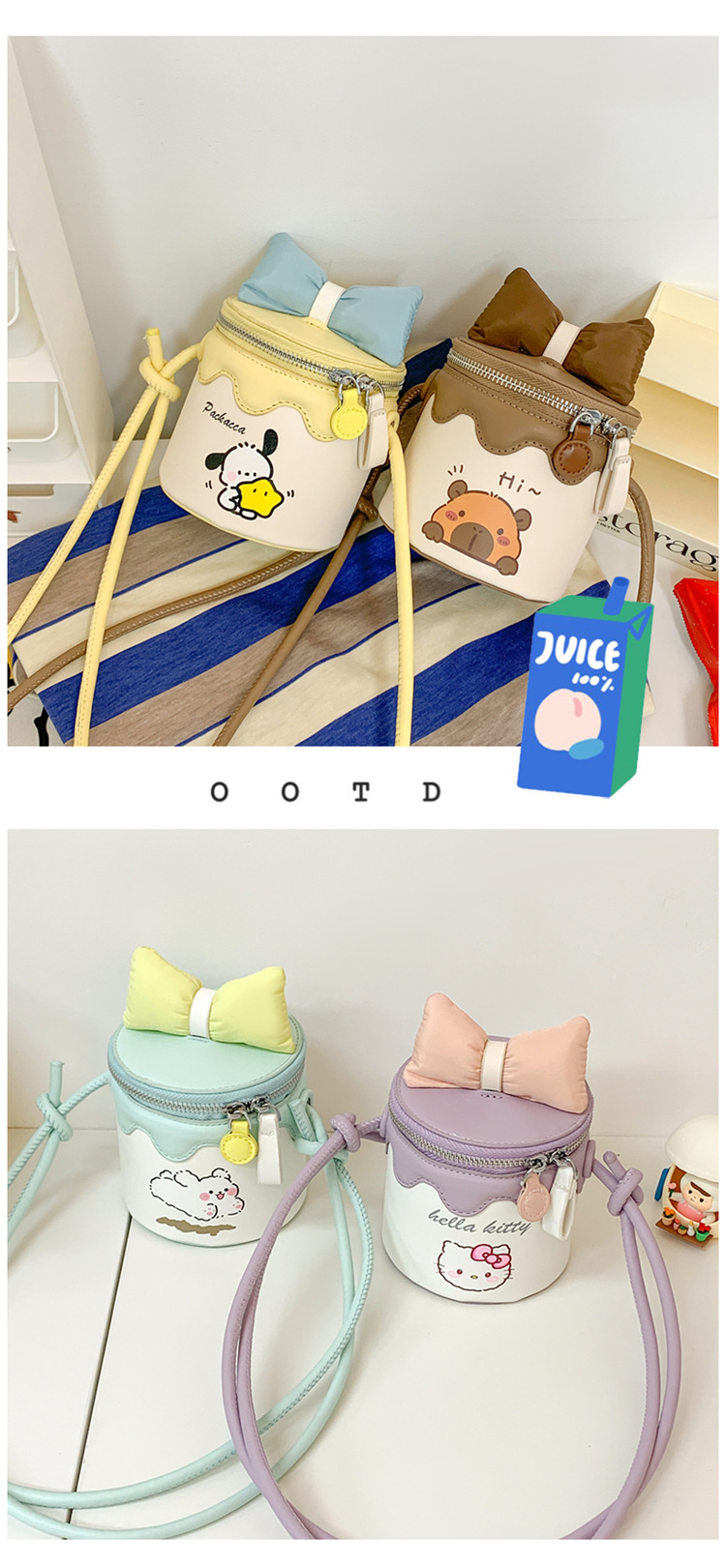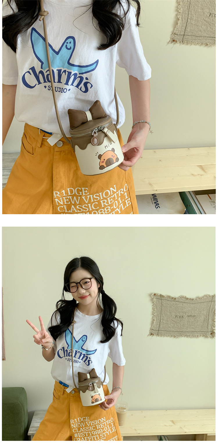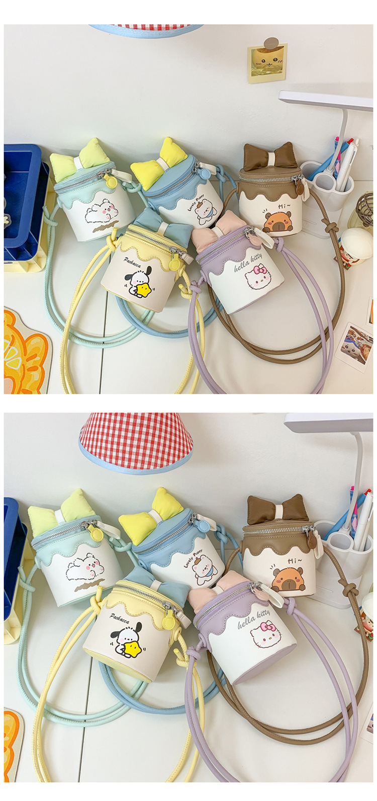 한국어 버전 귀여운 어린이 가방 만화 Bowknot 미니 Crossbody 가방 크리 에이 티브 버킷 동전 지갑 소녀 숄더 백