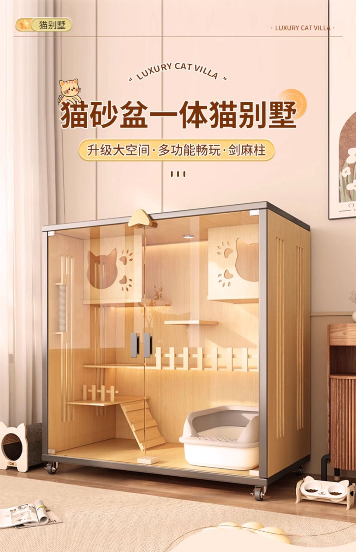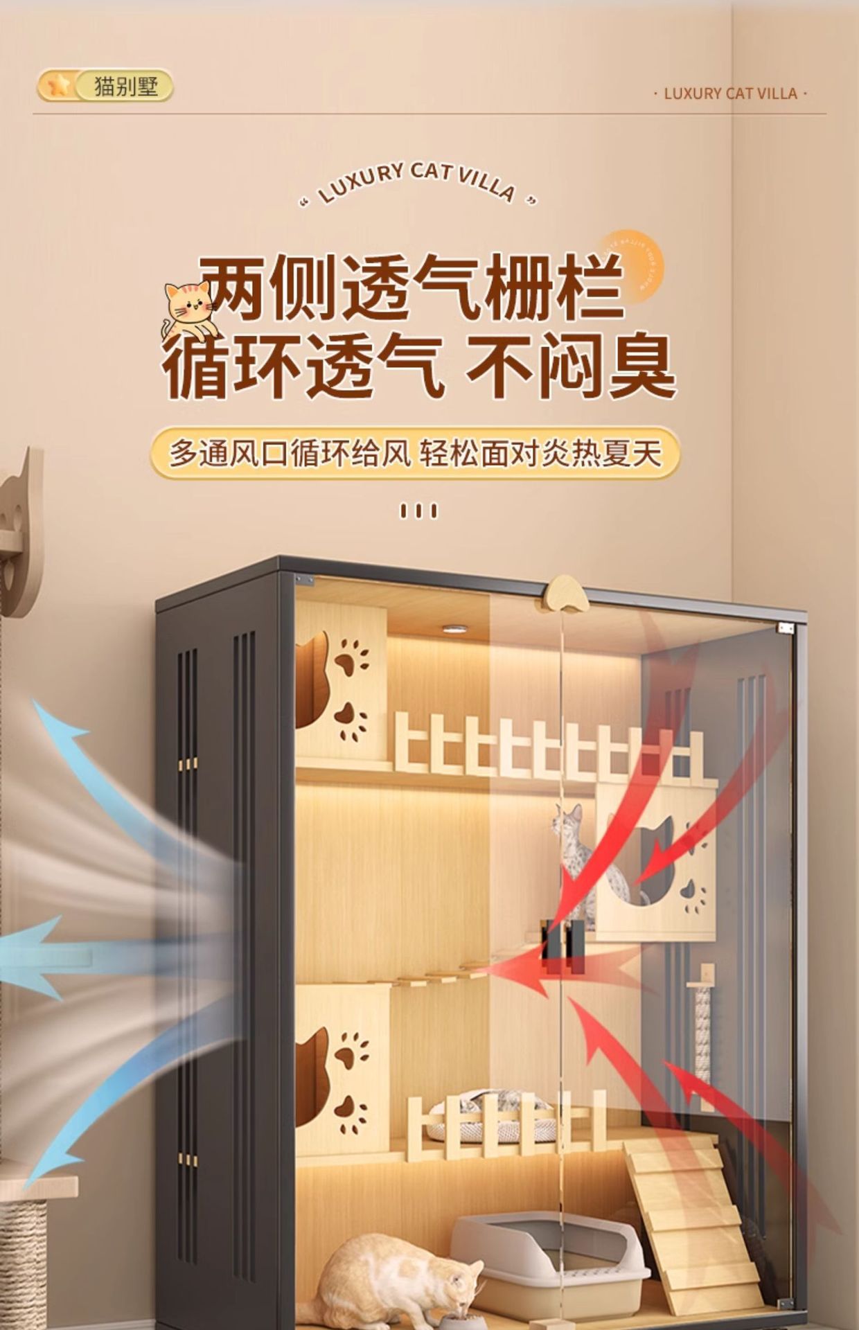 [오리지널 컬러] - 고양이 빌라 이중문 - 길이 120 폭 60 높이 120CM - 업그레이드된 빌라 스타일