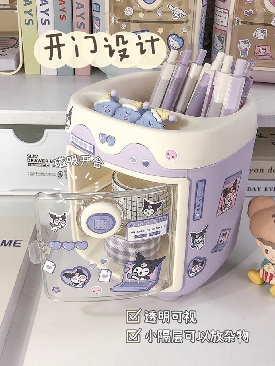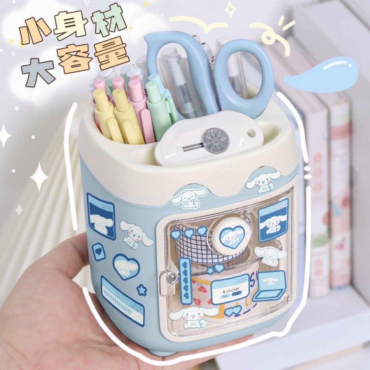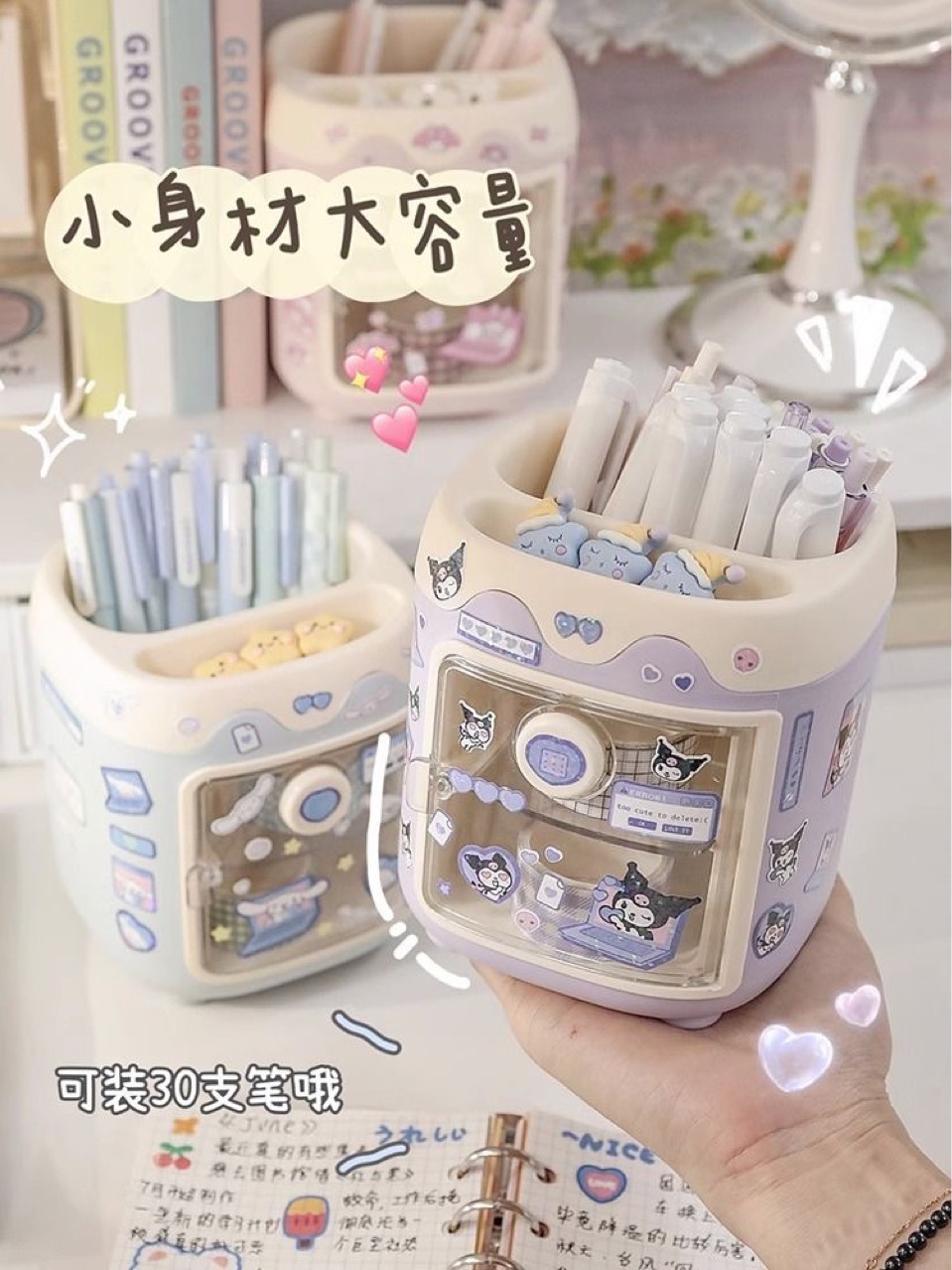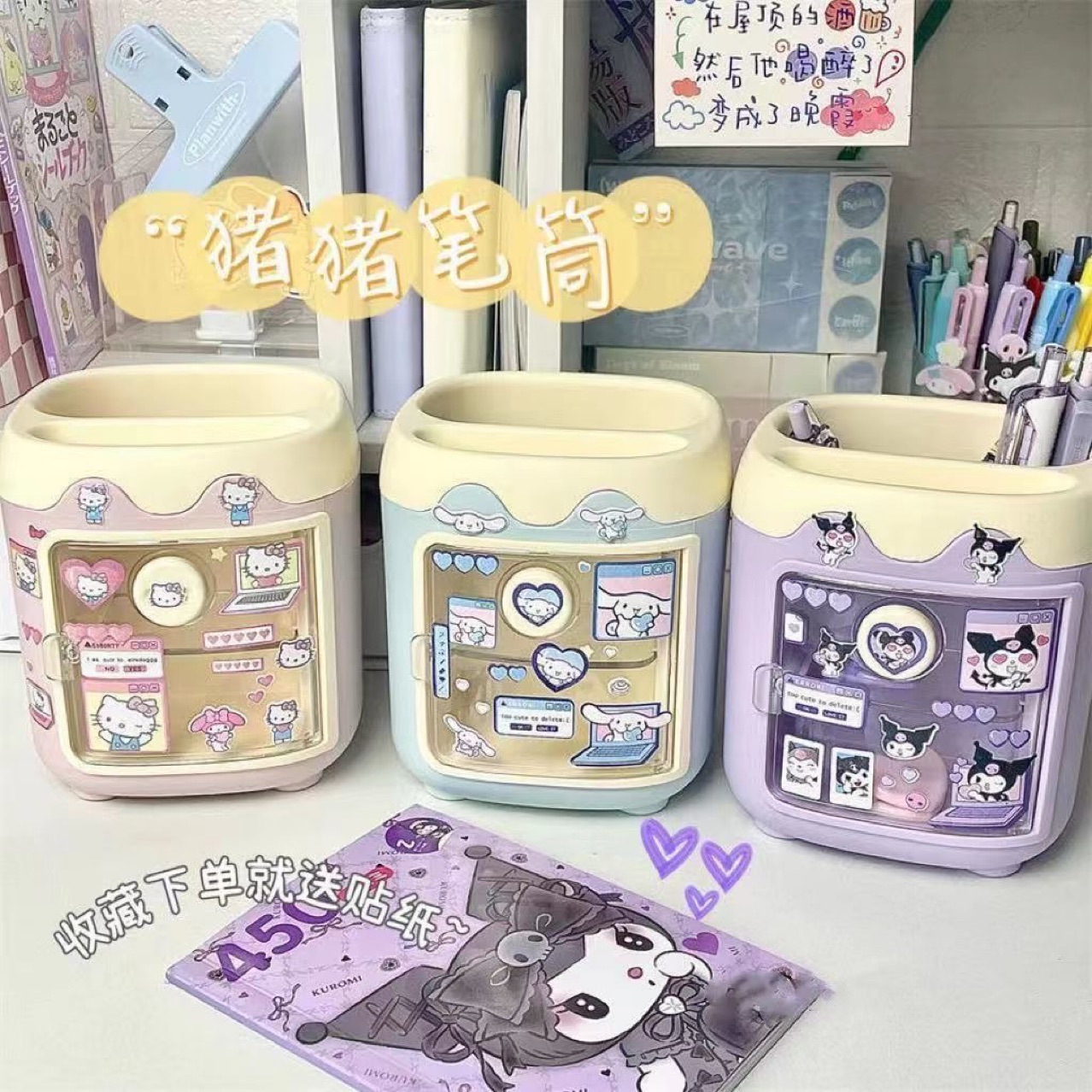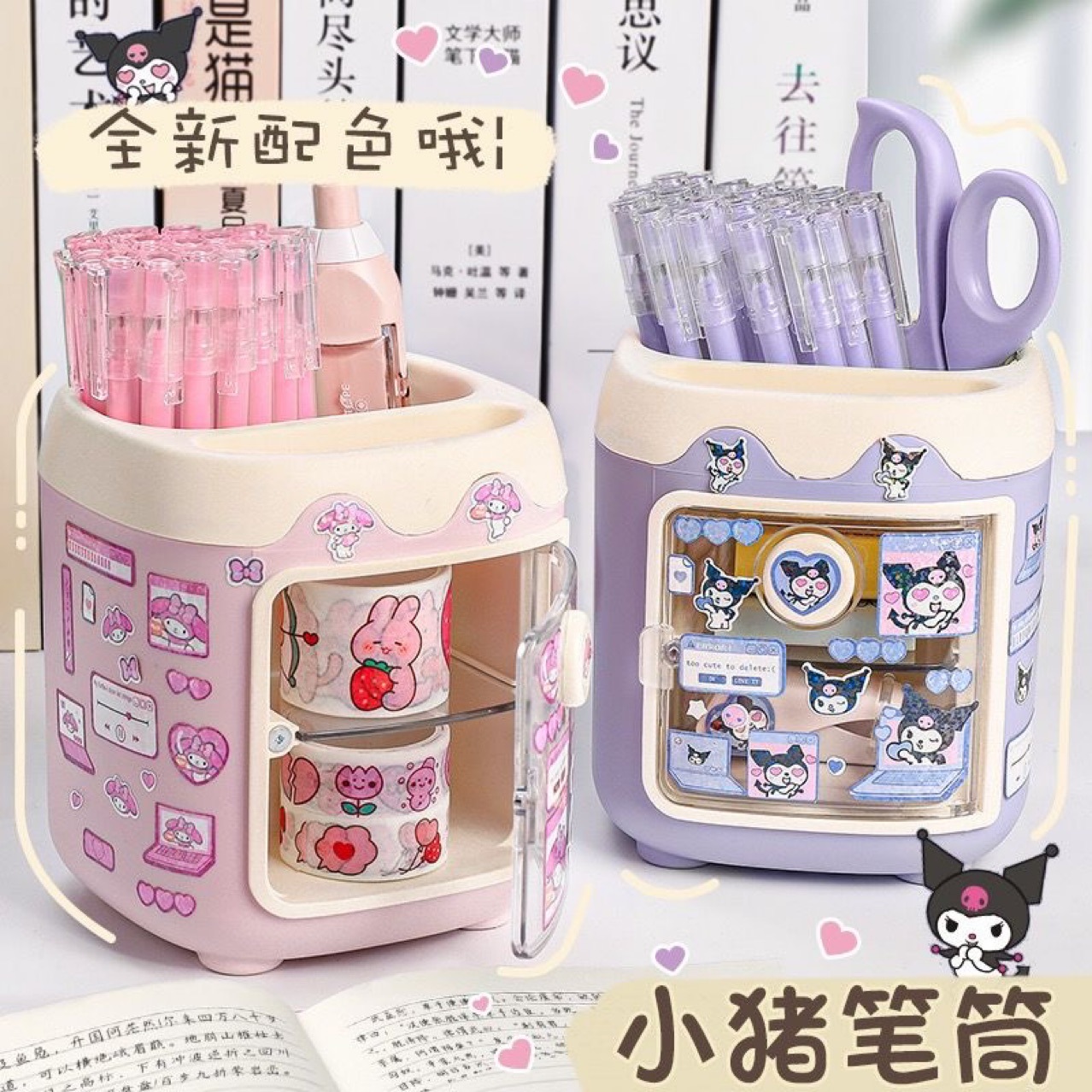 크리 에이 티브 만화 사각형 돼지 펜 홀더 학생 그리드 데스크탑 기념 문구 상자가있는 귀여운 다기능