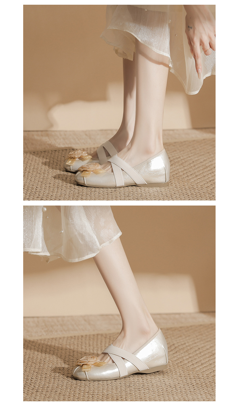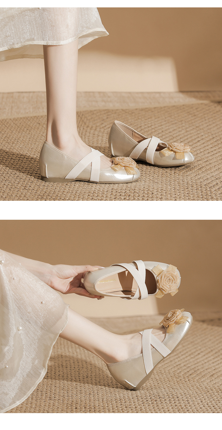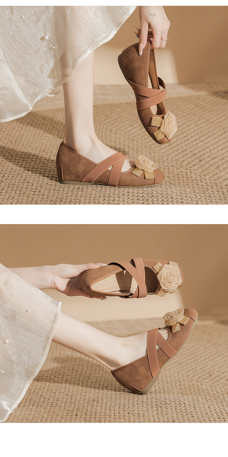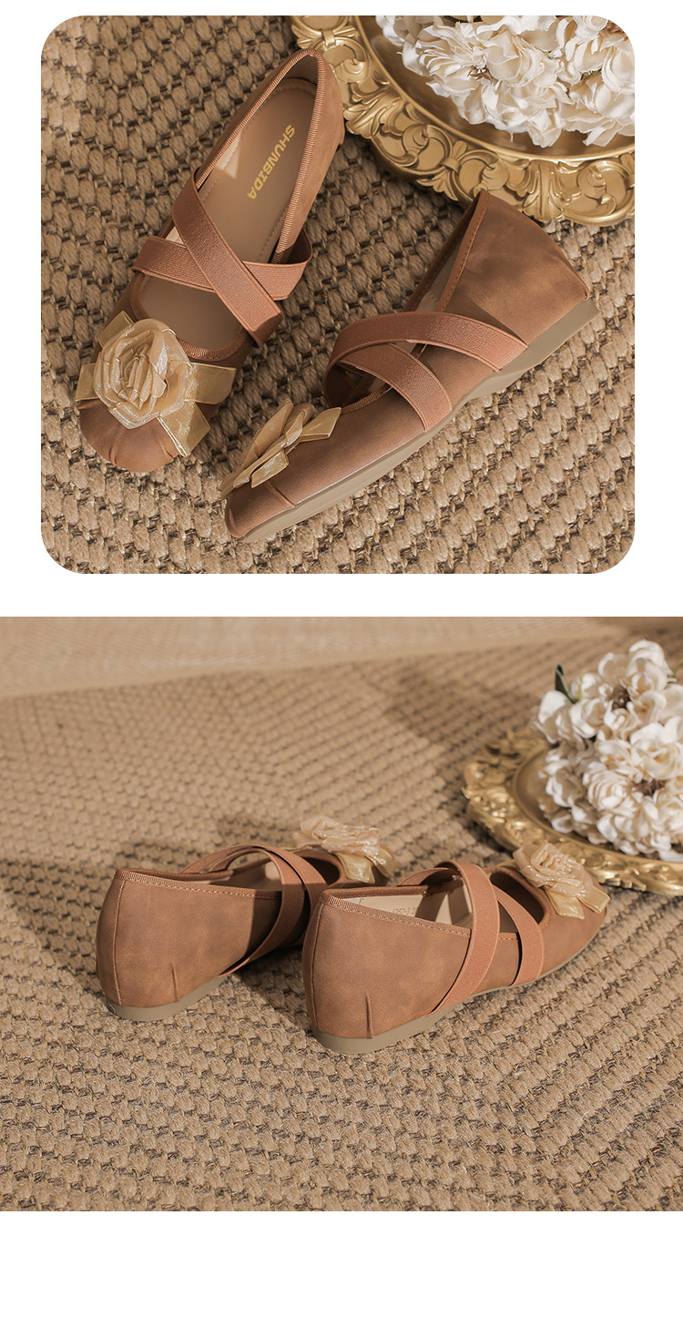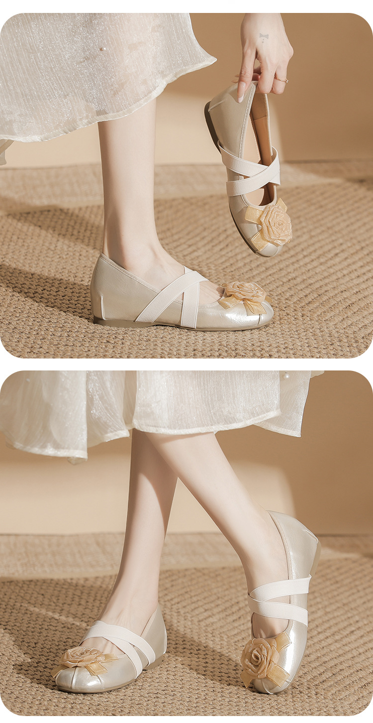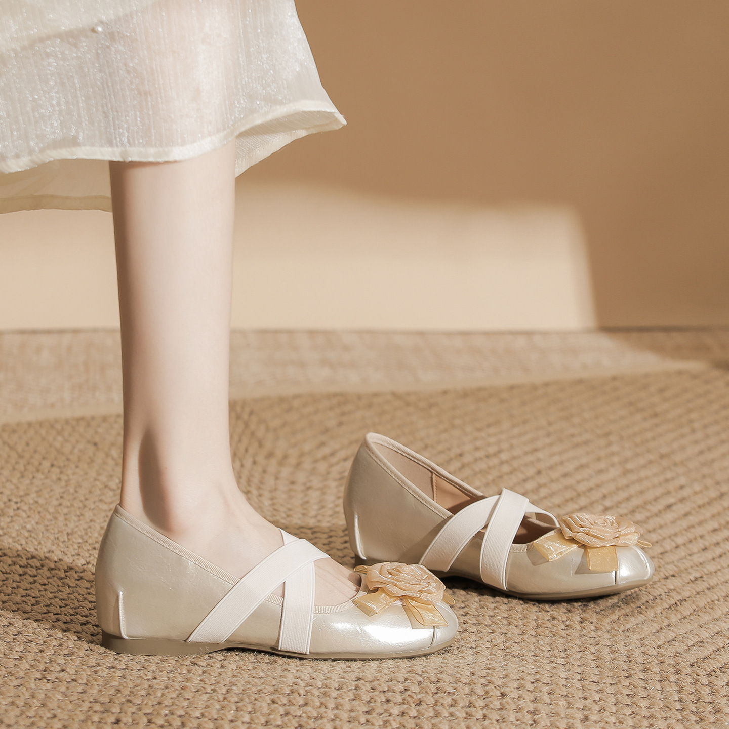여성을위한 프렌치 카멜리아 메리 제인 신발 2025 여름 새로운 크로스 플랫 바닥 내부 강화 발레 펌프 신발