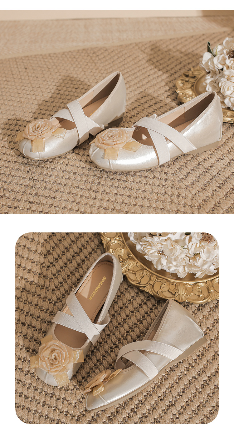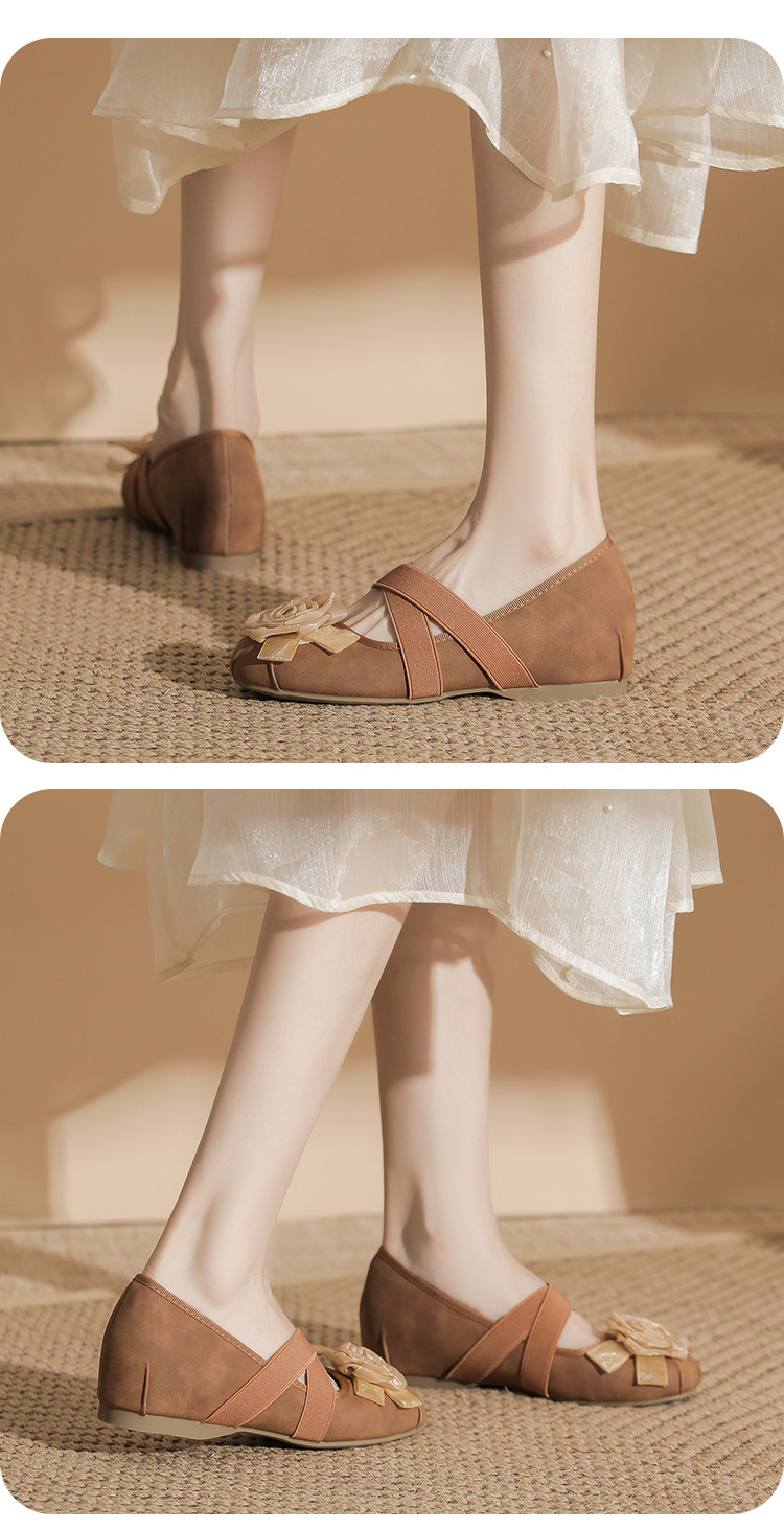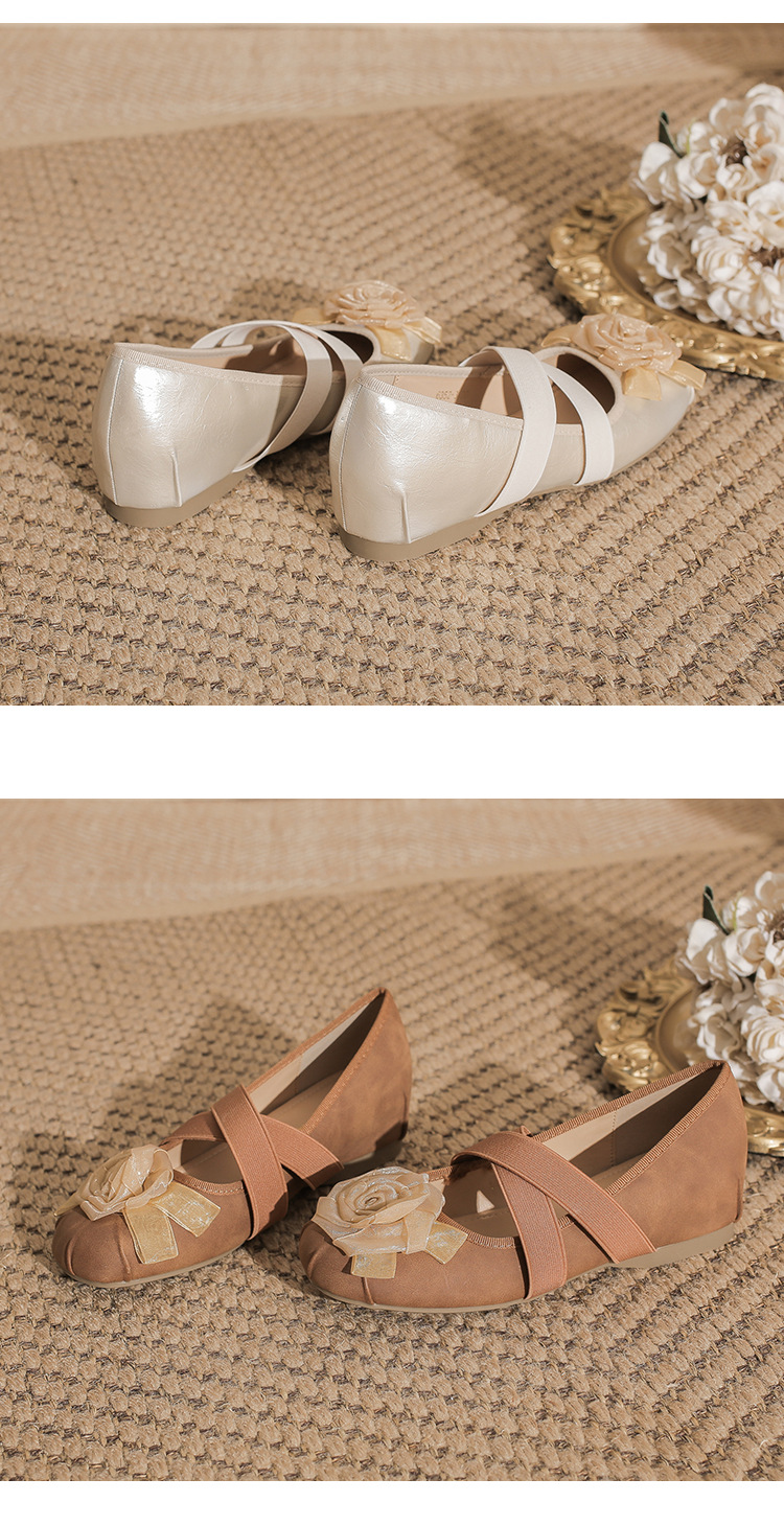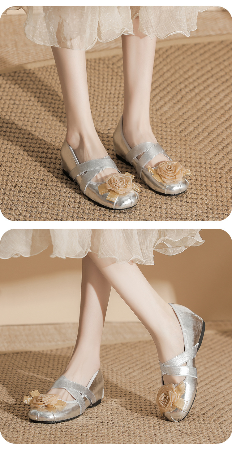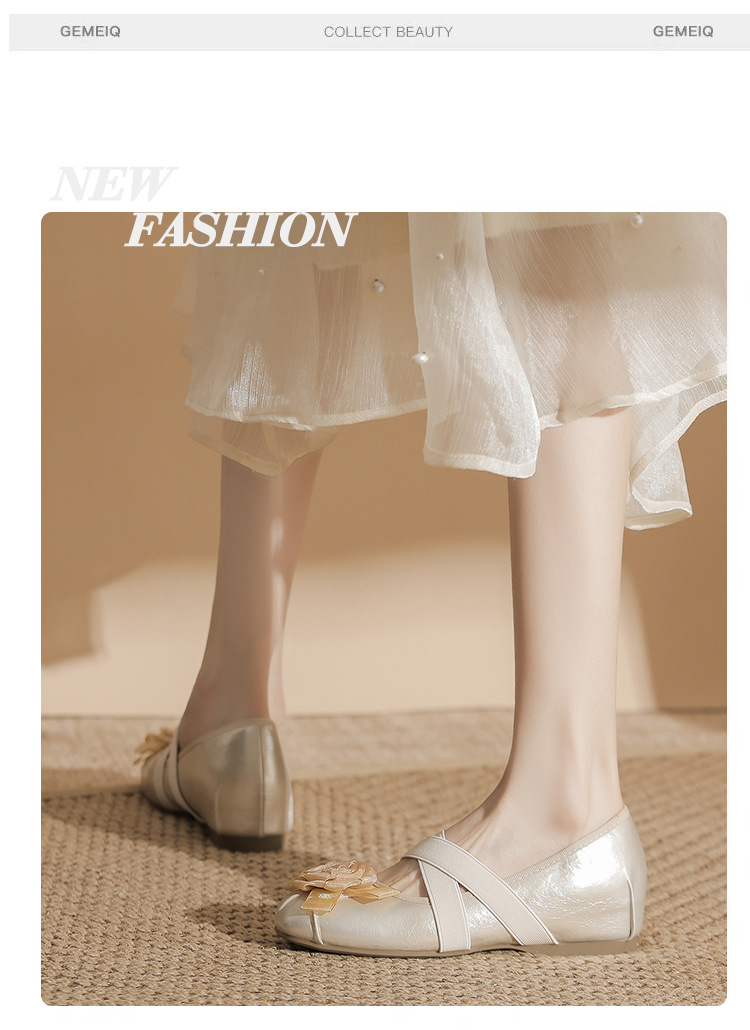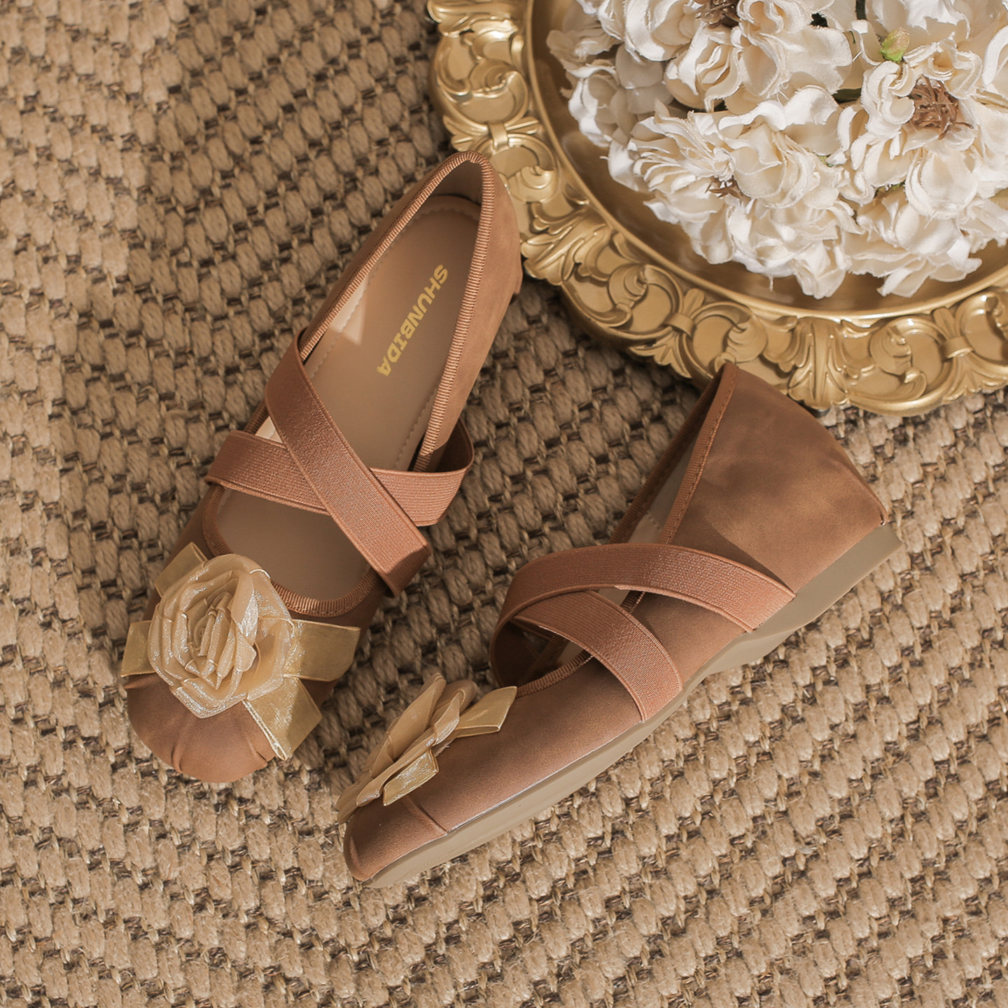 여성을위한 프렌치 카멜리아 메리 제인 신발 2025 여름 새로운 크로스 플랫 바닥 내부 강화 발레 펌프 신발