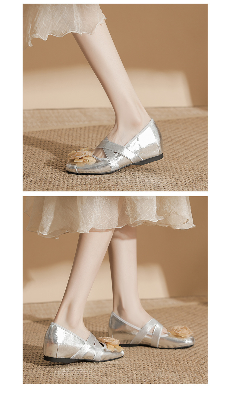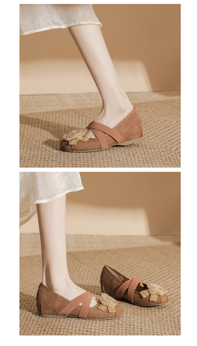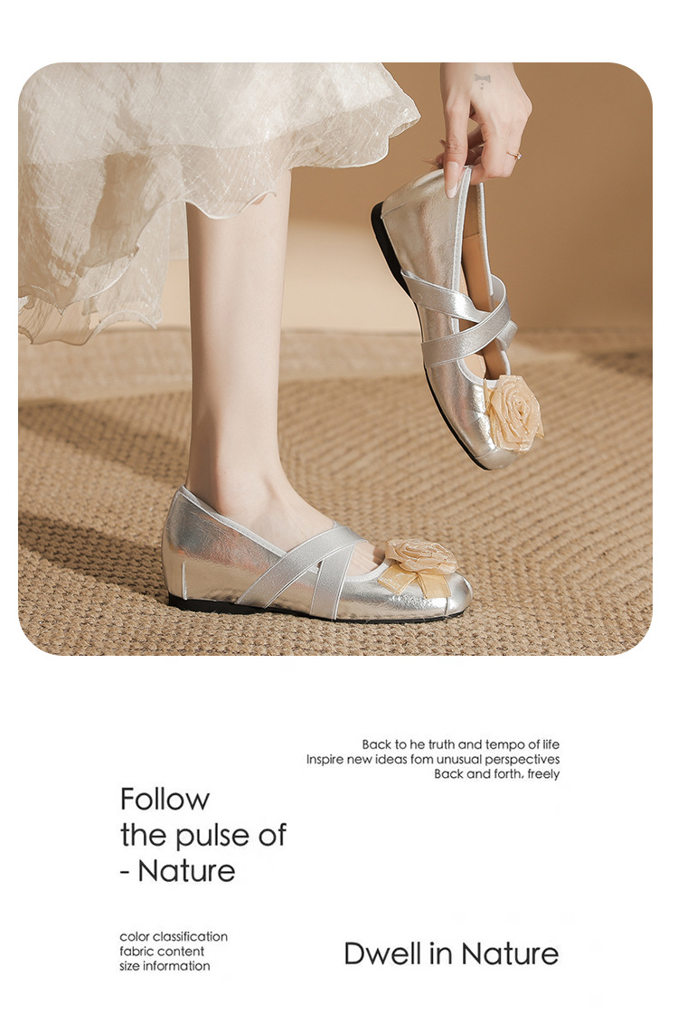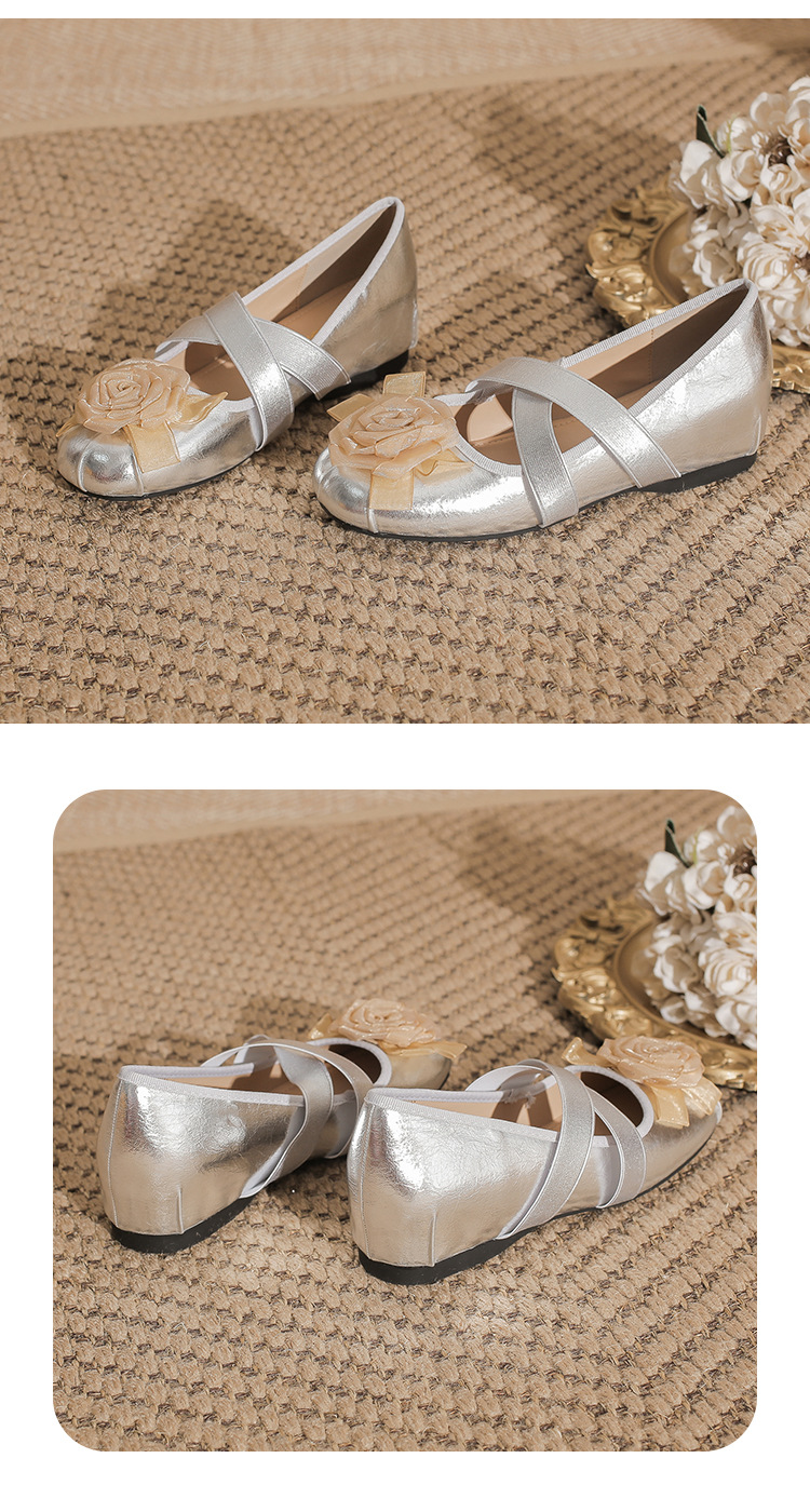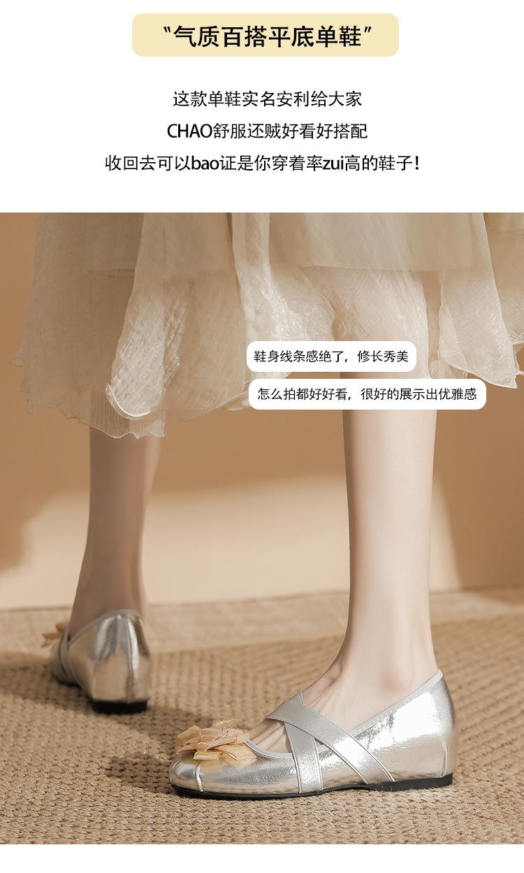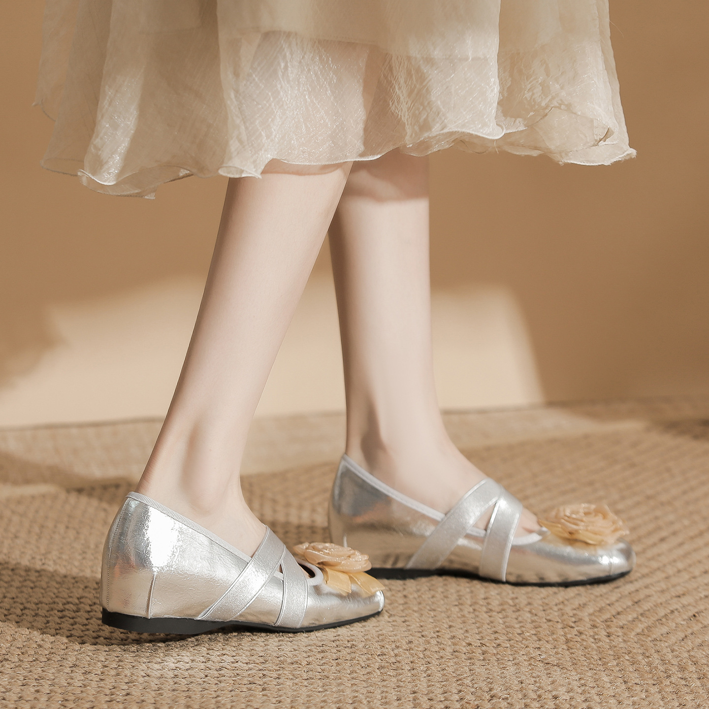 여성을위한 프렌치 카멜리아 메리 제인 신발 2025 여름 새로운 크로스 플랫 바닥 내부 강화 발레 펌프 신발