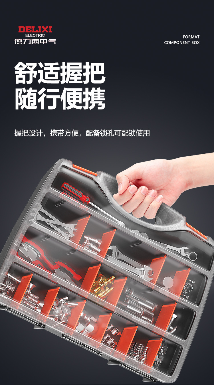 Delixi 전기 휴대용 부품 상자 하드웨어 도구 액세서리 상자 전자 부품 분류 상자 나사 보관 상자