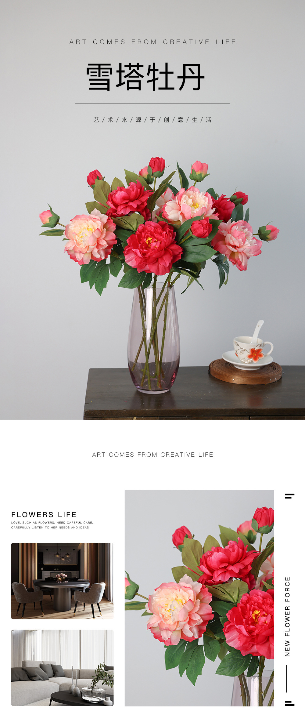 인공 꽃 스노우 타 피오니 북유럽 하이 엔드 홈 거실 부드러운 장식 웨딩 꽃병 사진 장식품 가짜 꽃