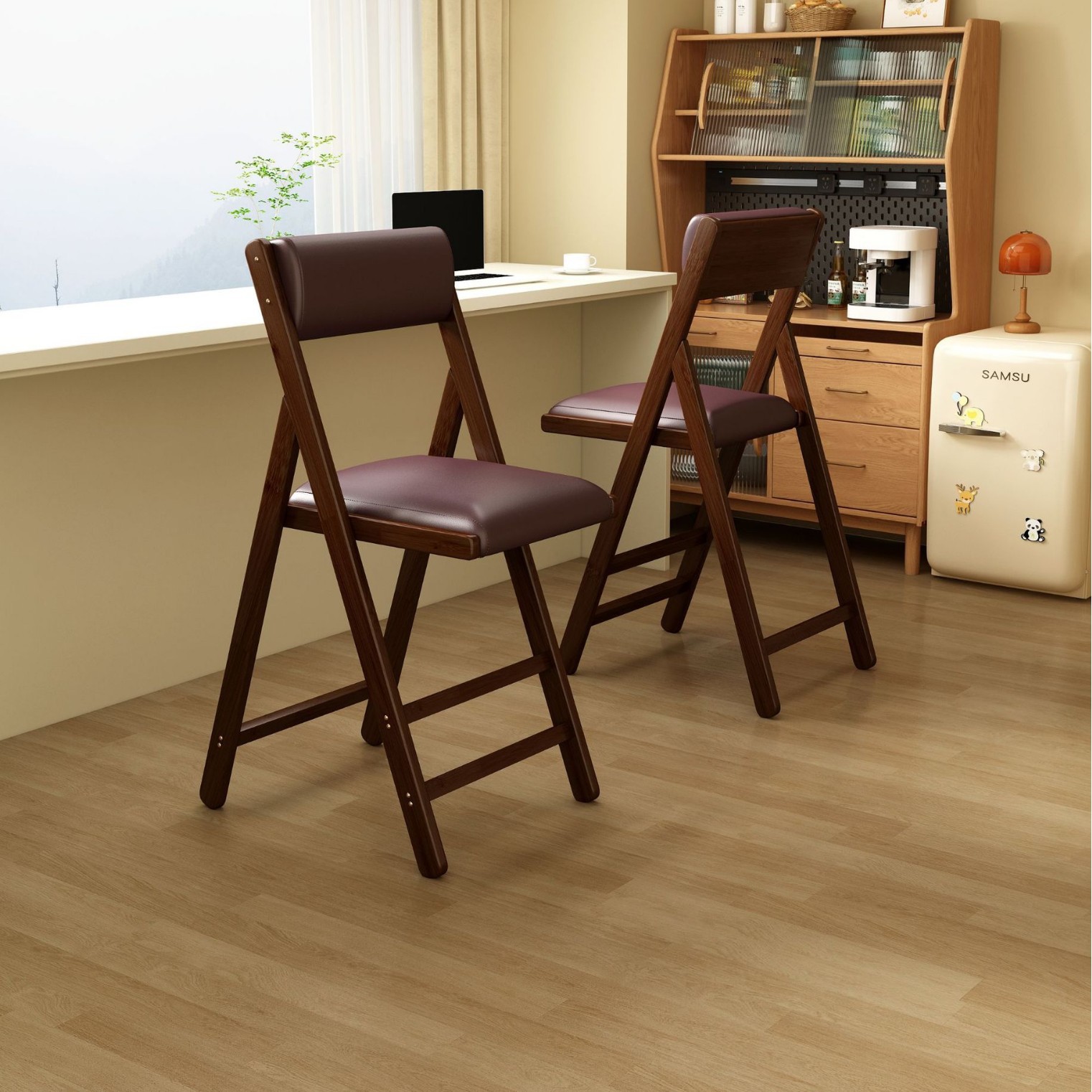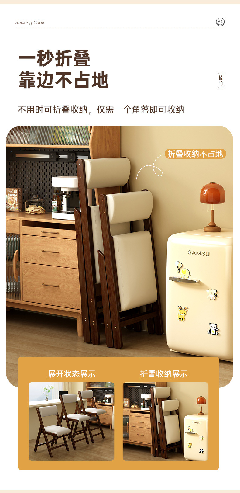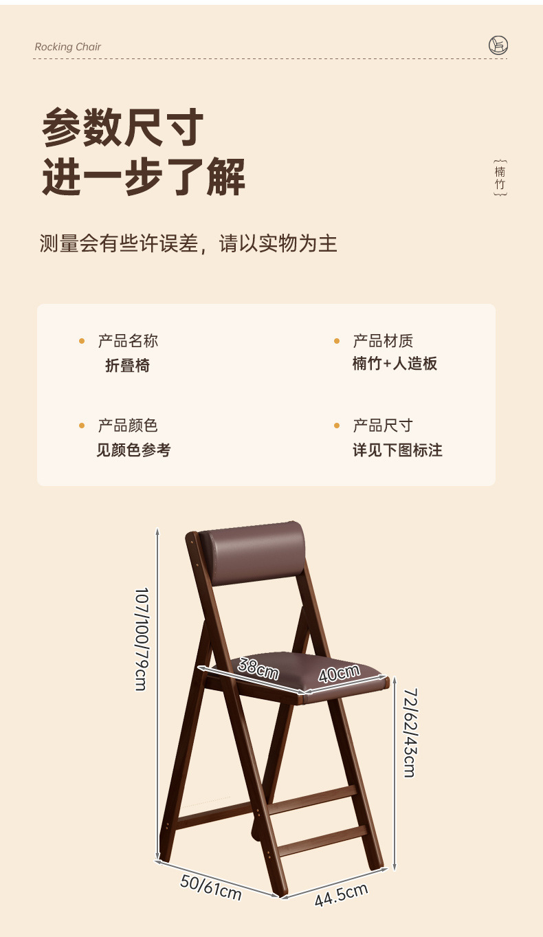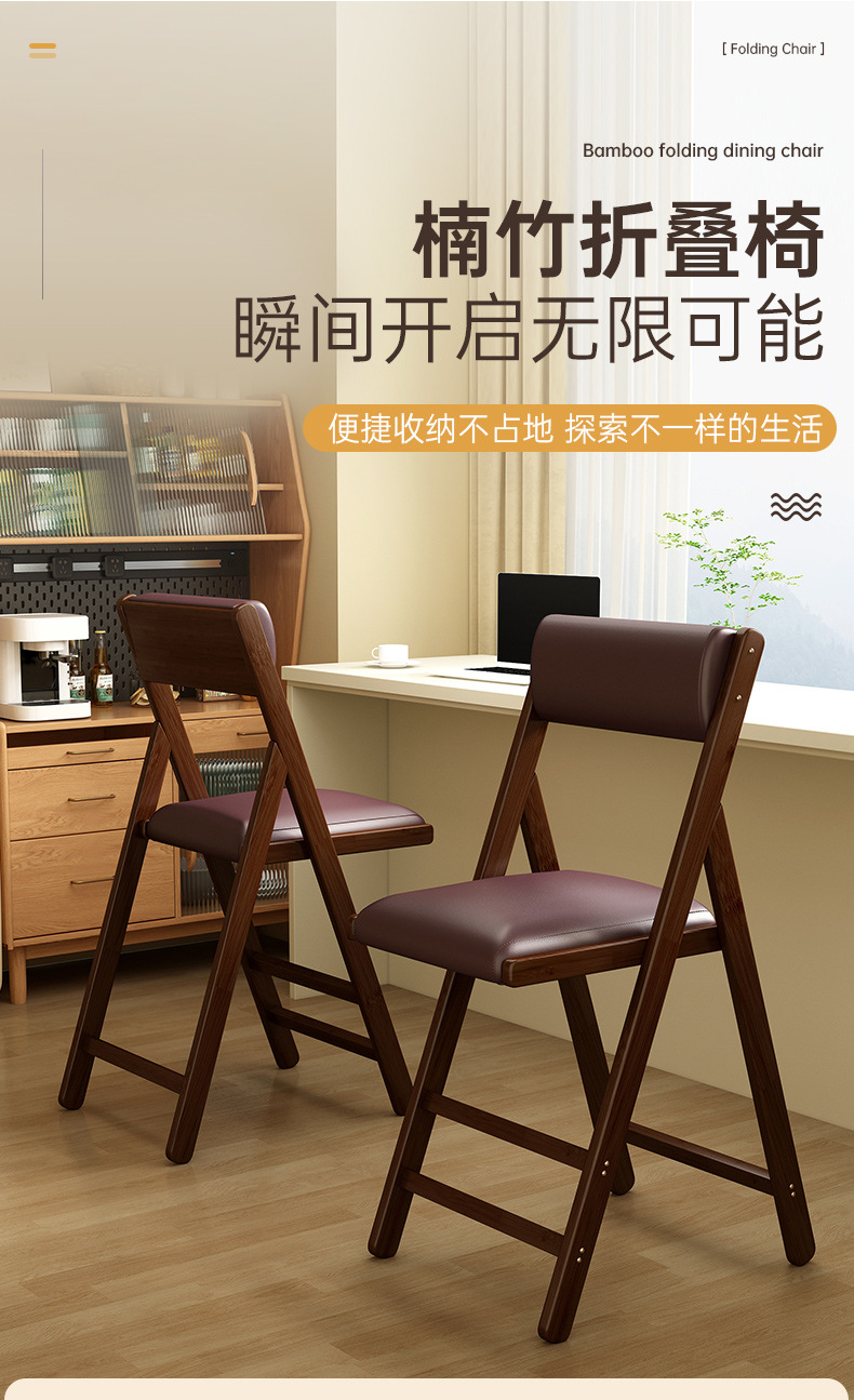 북유럽 가정용 접이식 의자 대나무 단단한 나무 식당 의자 간단한 기숙사 레저 사무실 컴퓨터 의자 발코니 편안한 의자