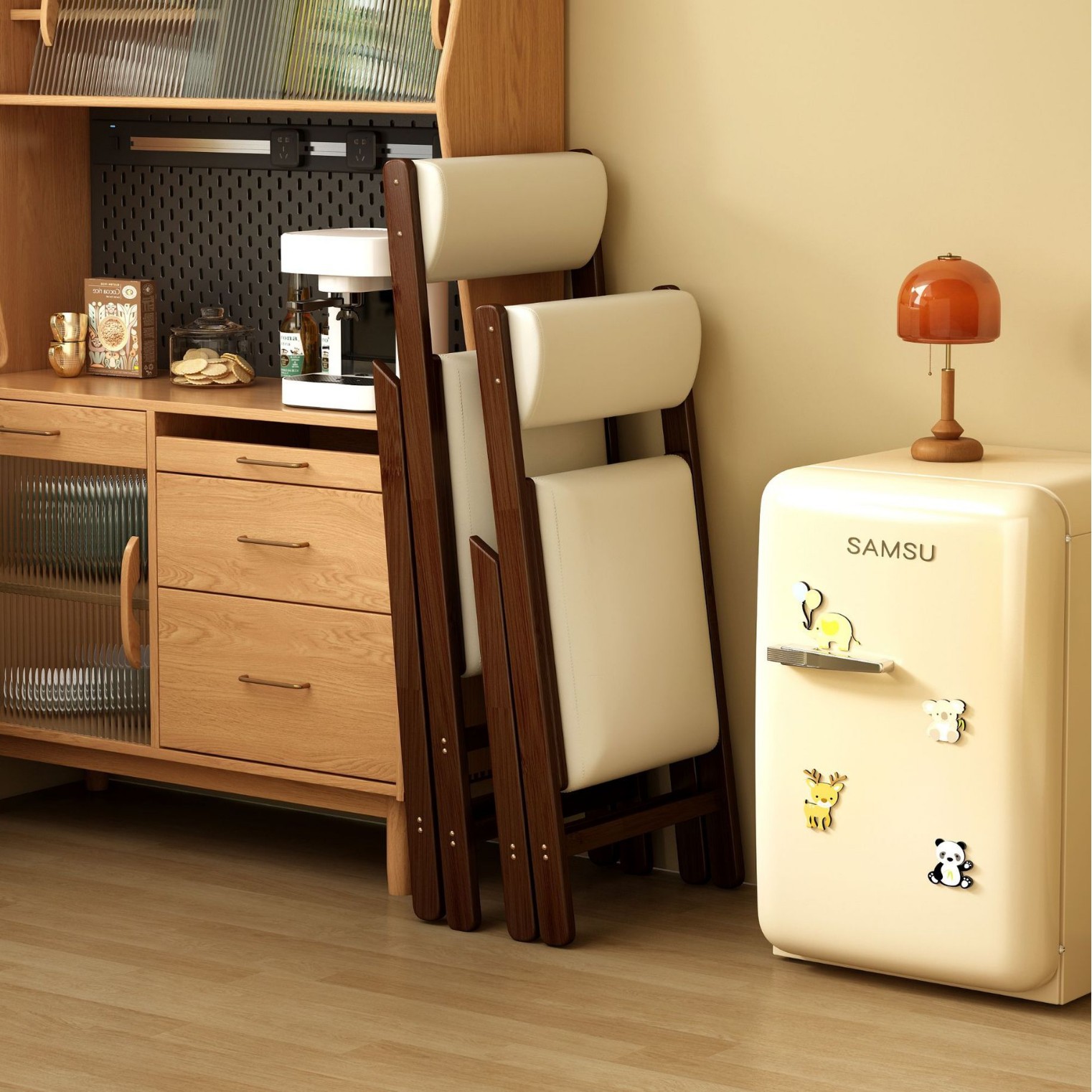 QY 월넛 컬러 접이식 의자 117 화이트 M사이즈