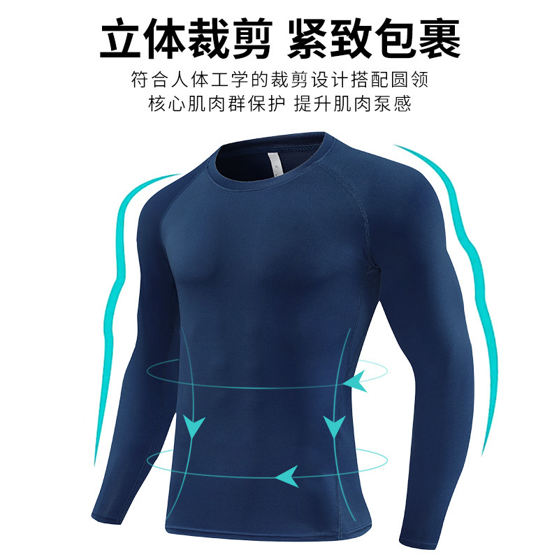 속건성 타이츠 남성용 런닝 스포츠 탑 피트니스 요가 긴팔 농구 트레이닝복 베이스 레이어 라운드 넥 티셔츠
