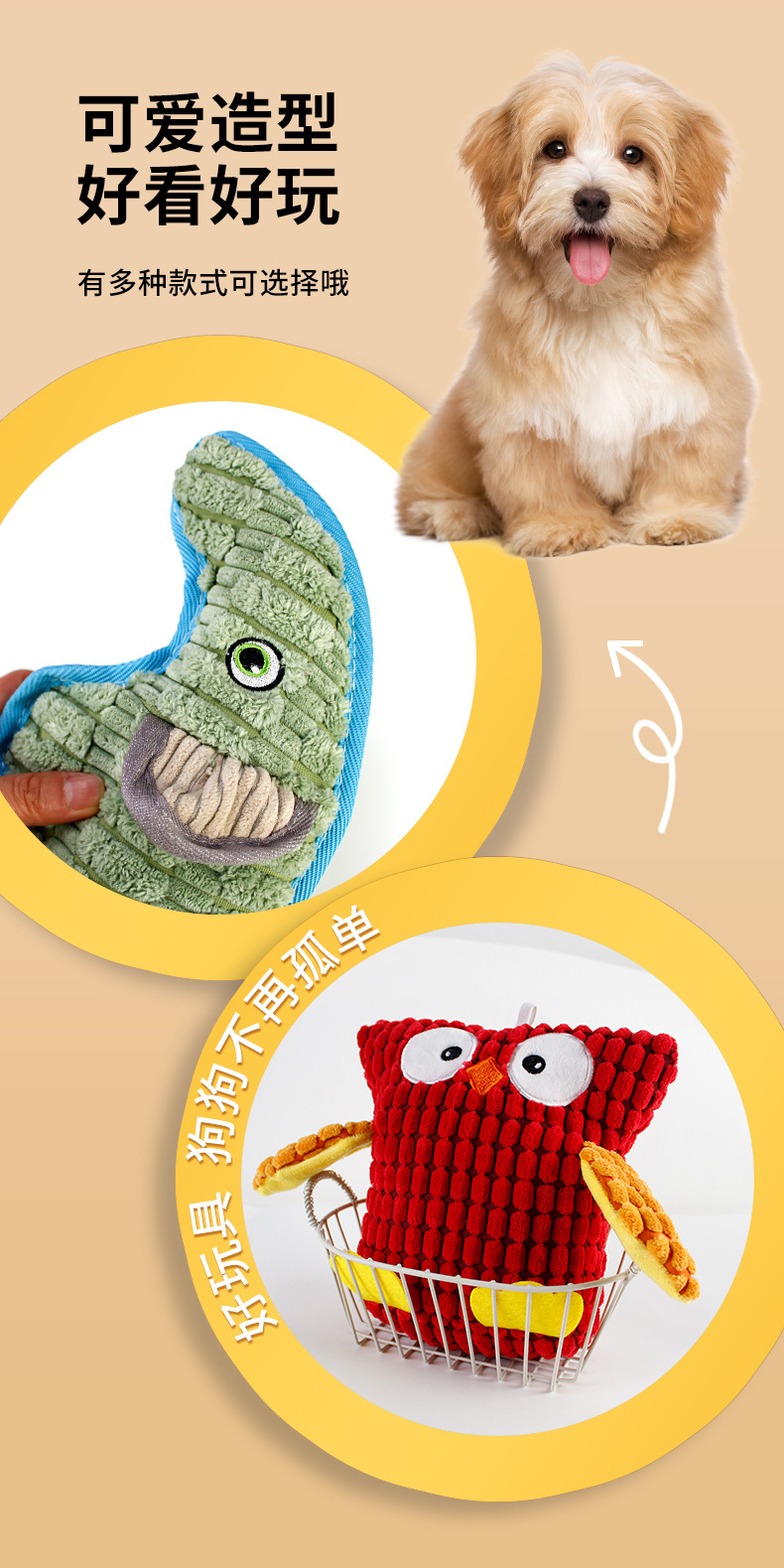 애완견 지루함 해소 도구, 만화 플러시 물림 방지 개 장난감, 대형 개 자기 자극 소리, 어금니 및 물림 방지 용품