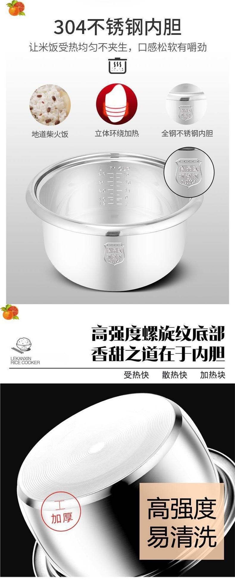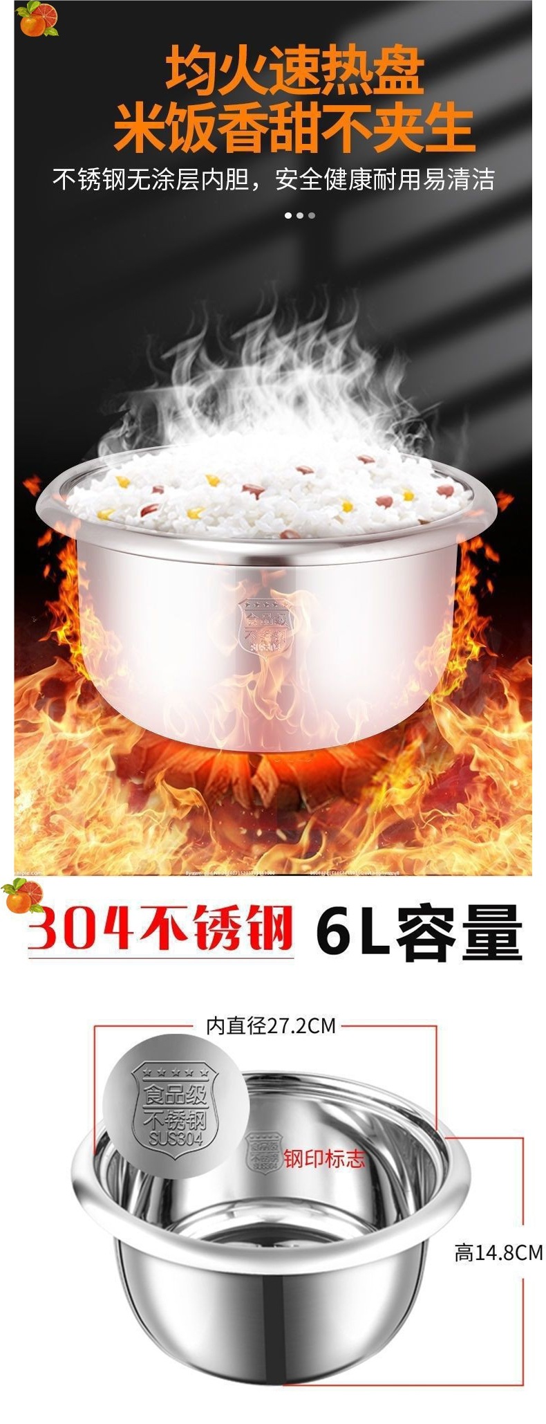 구식 밥솥 라이너 식품 등급 스테인레스 스틸 304 두꺼운 가정용 라이너 범용 2L-3L-4L-5L-6L8