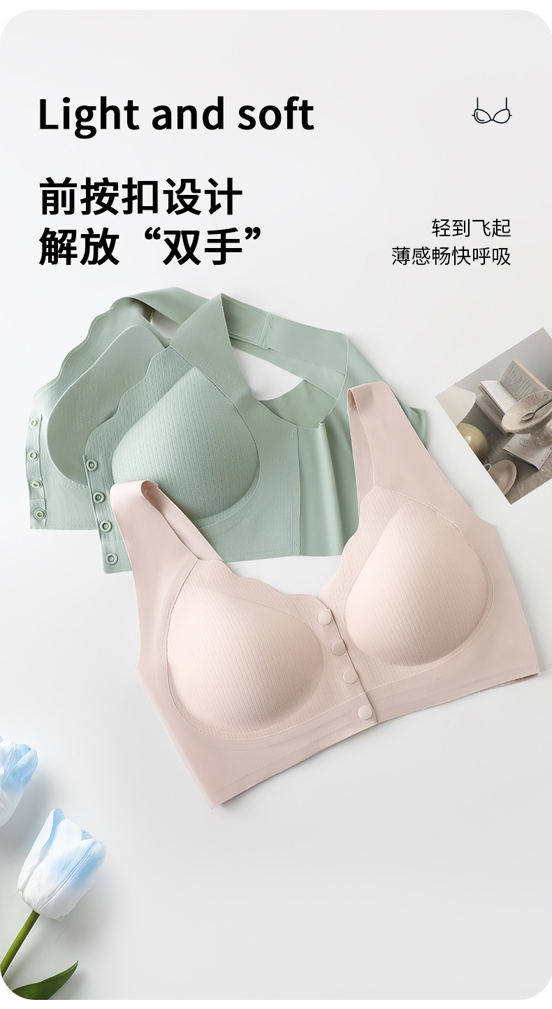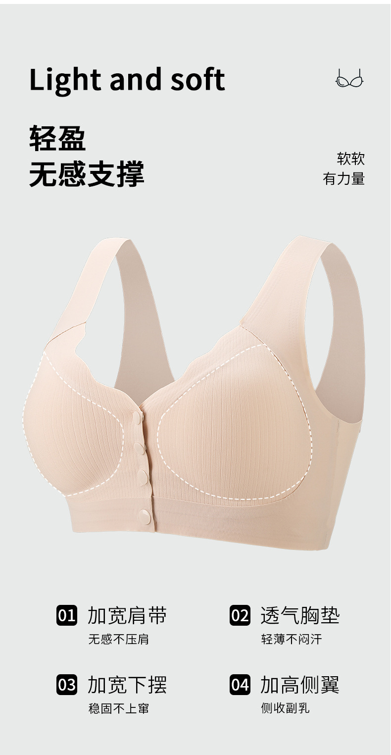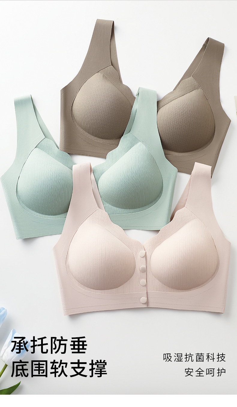 와이어가 없는 앞버튼 수유브라, 부드러운 지지대, 큰 사이즈의 조끼형 브라, 편안하고 처짐 방지, 여성용 심리스 가슴 감싸기