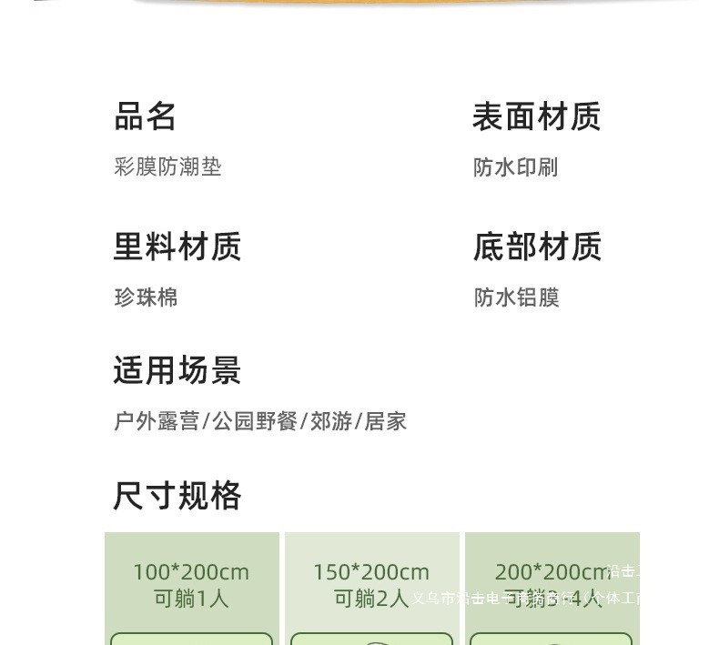 피크닉 매트 두꺼운 야외 캠핑 휴대용 텐트 바닥 매트 봄 나들이 쿠션 방수 잔디 매트 알루미늄 필름 방습 매트