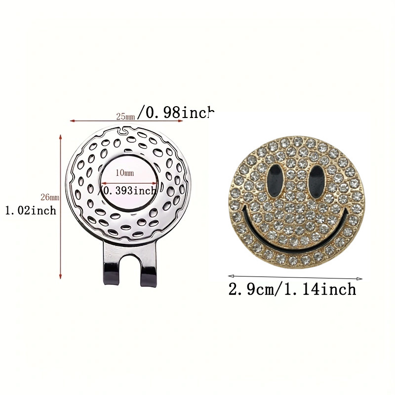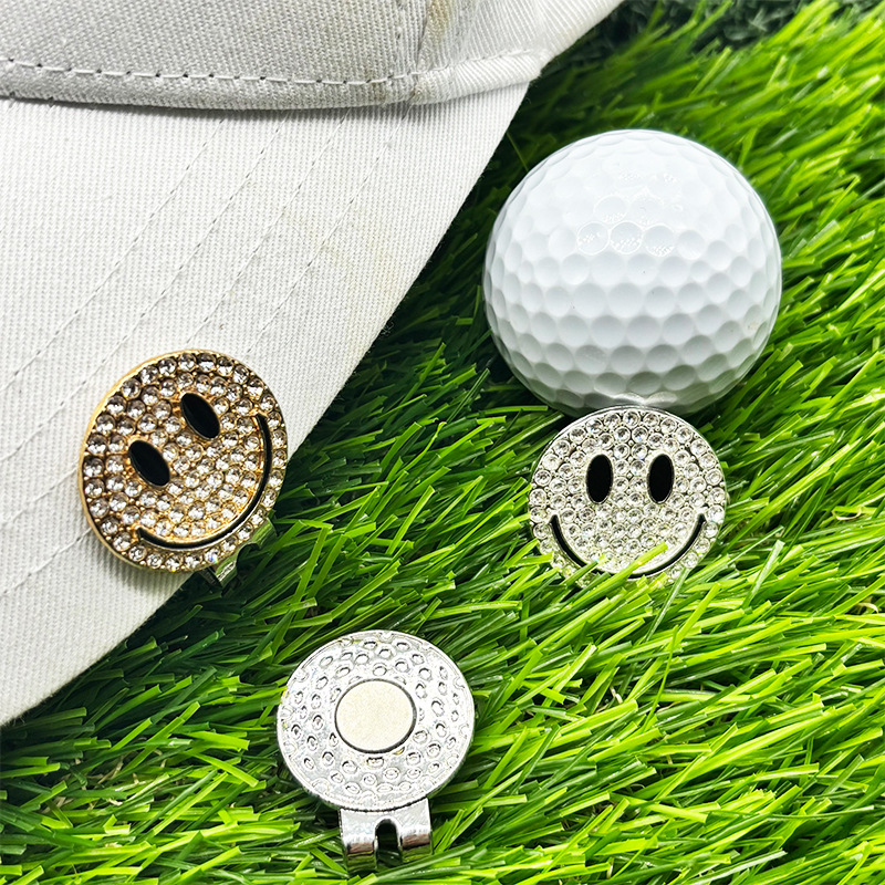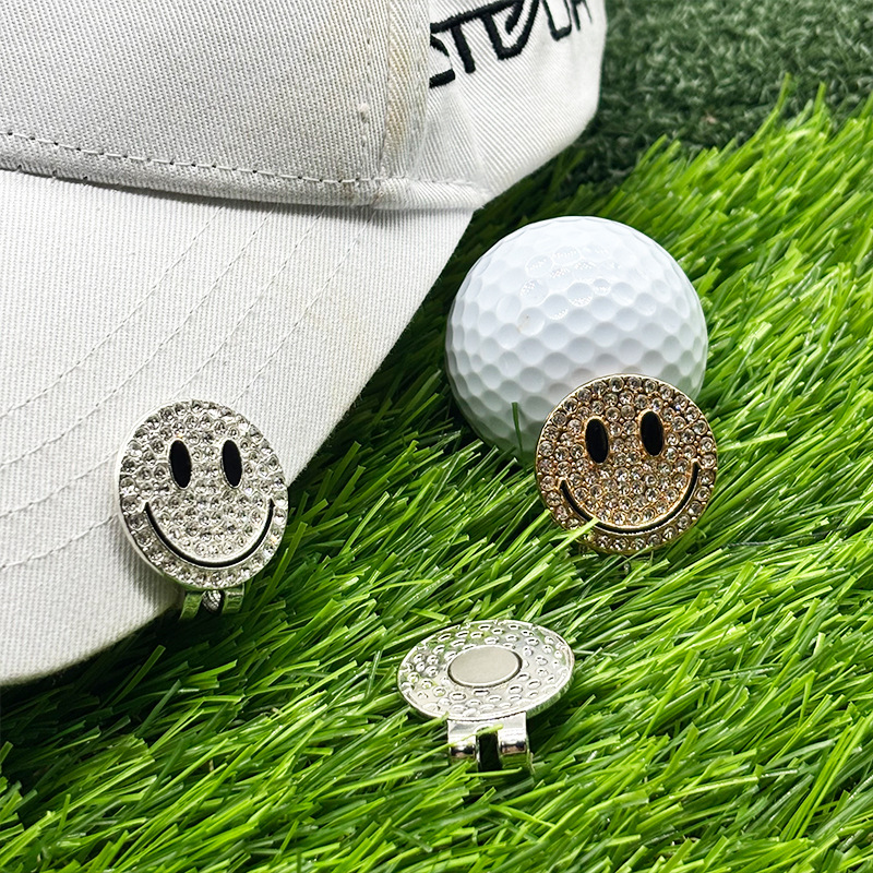 品名:高尔夫帽夹+球位标(创意带钻笑脸)