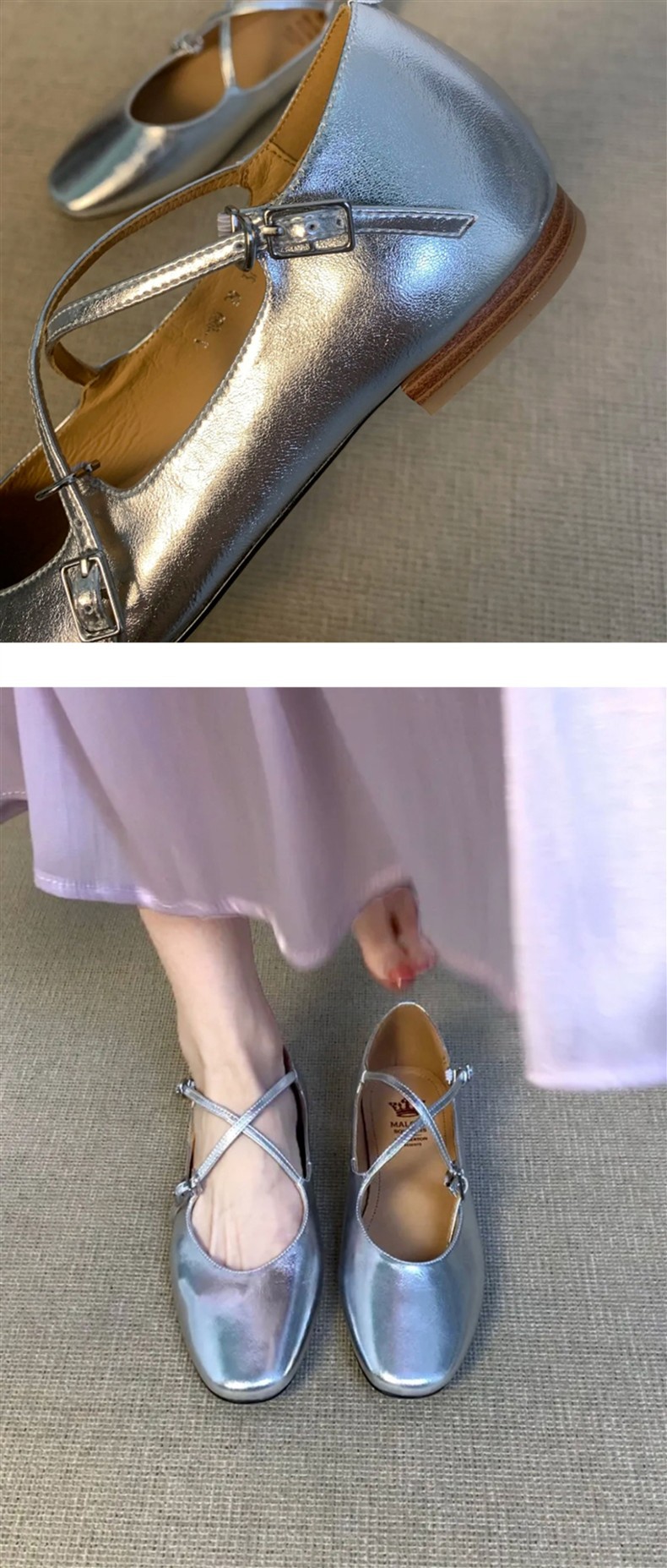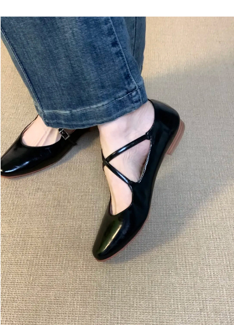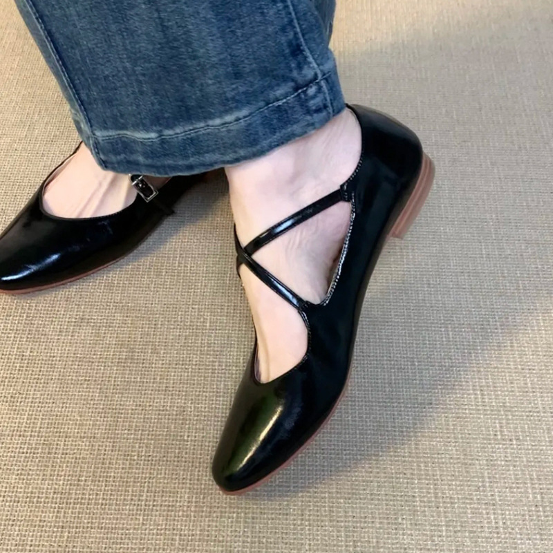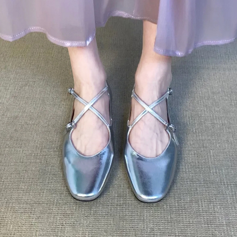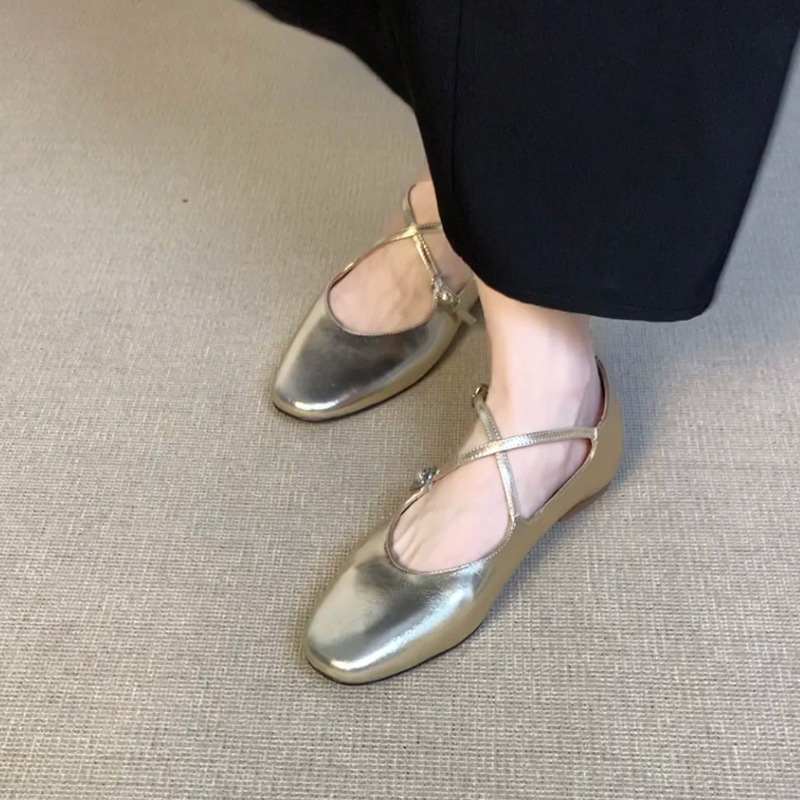 홍콩 정품 가죽 실버 크로스 버클 발레 신발 여성 봄, 가을 프랑스 복고풍 플랫 메리 제인 신발 작은 가죽 신발
