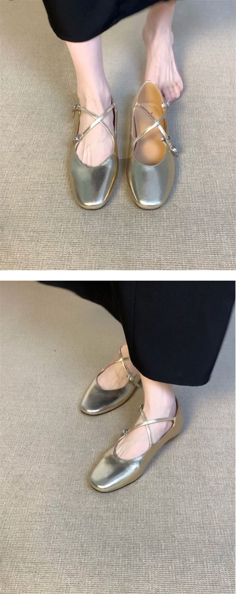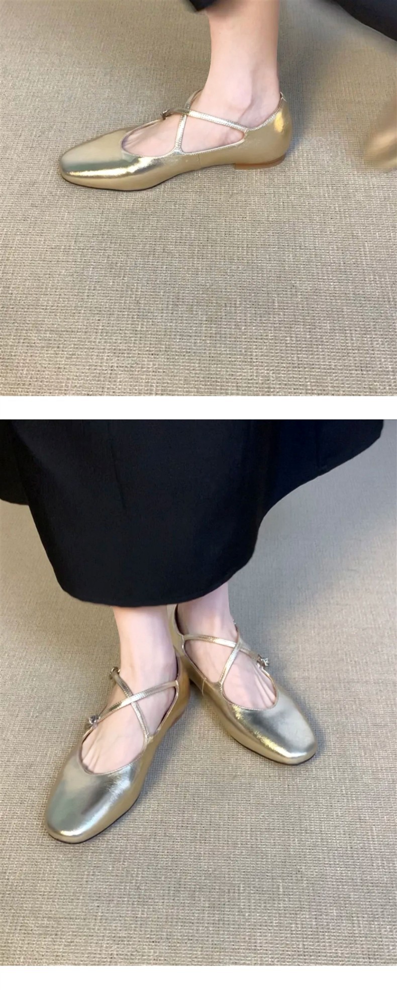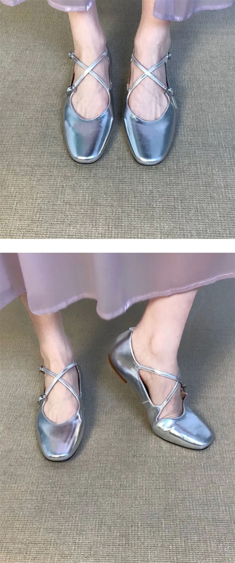 홍콩 정품 가죽 실버 크로스 버클 발레 신발 여성 봄, 가을 프랑스 복고풍 플랫 메리 제인 신발 작은 가죽 신발