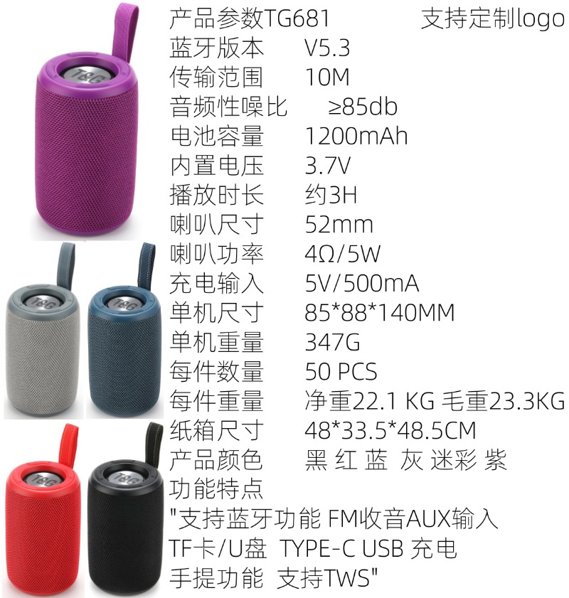새로운 TG678 블루투스 스피커 휴대용 무선 오디오 서브 우퍼 야외 패브릭 블루투스 스피커 소형 강철 총